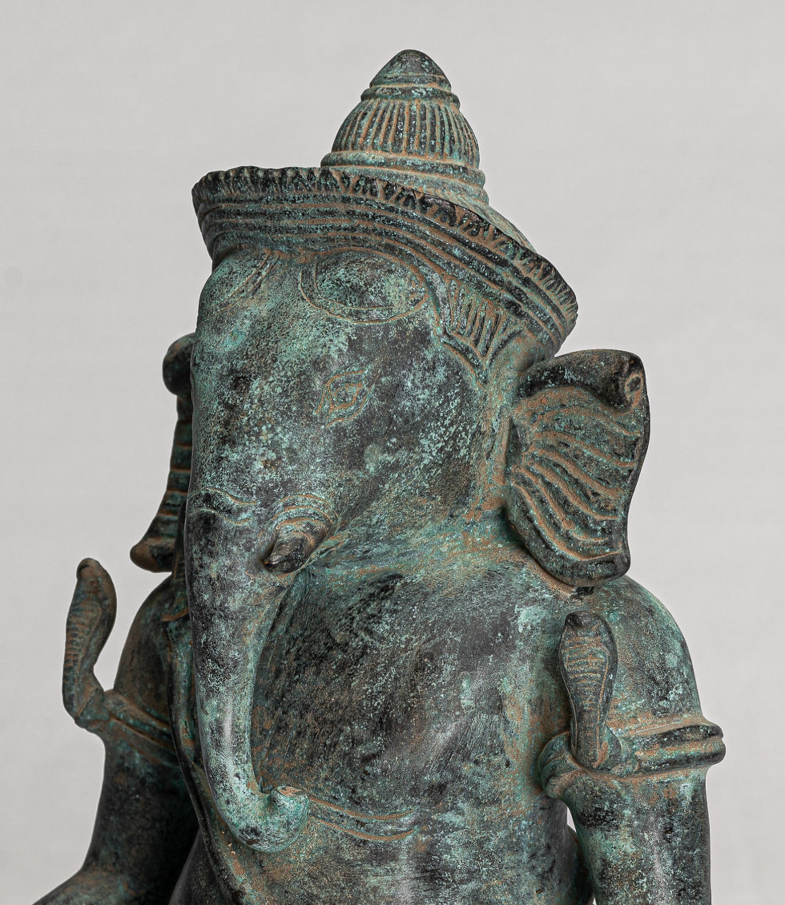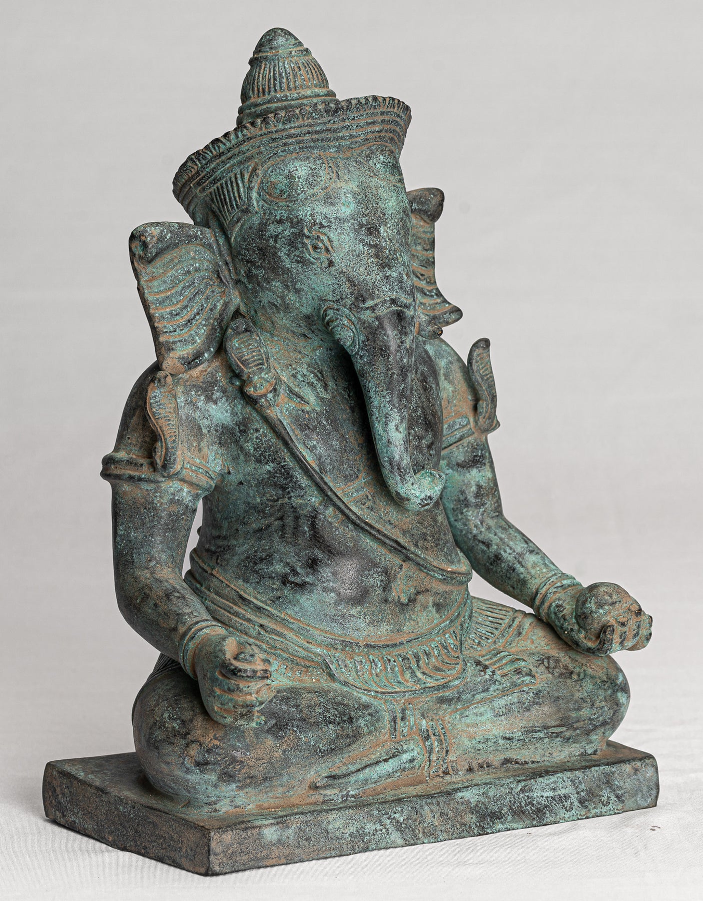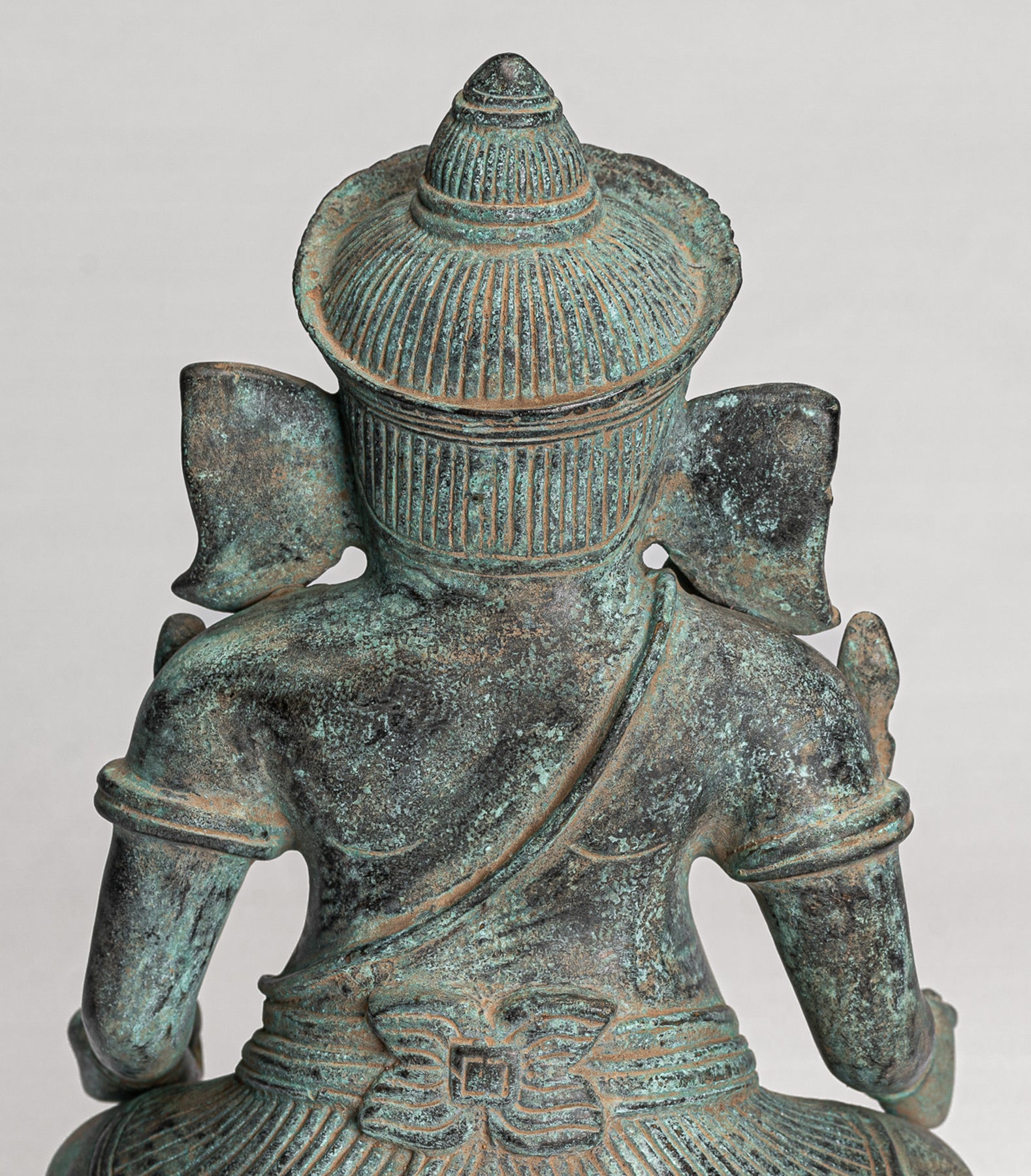To the rear the Sampot is fastened with a butterfly style bow in the post-Angkor Wat style. The distinctive patina of the piece is particularly delightful. Ganesha is the elephant headed son of Shiva.