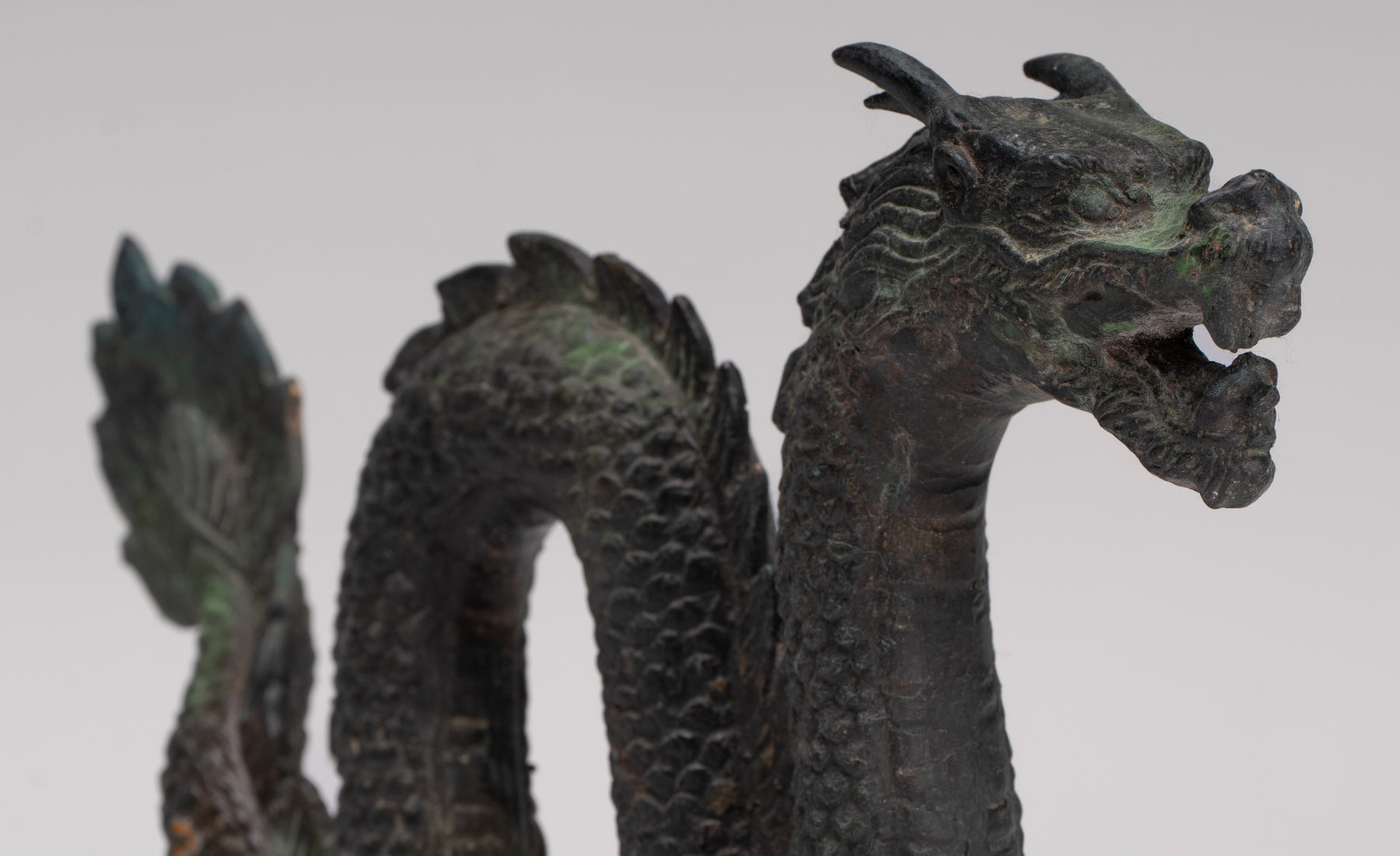 • Antique Chinese Style Bronze Dragon Statue - 16cm/6"