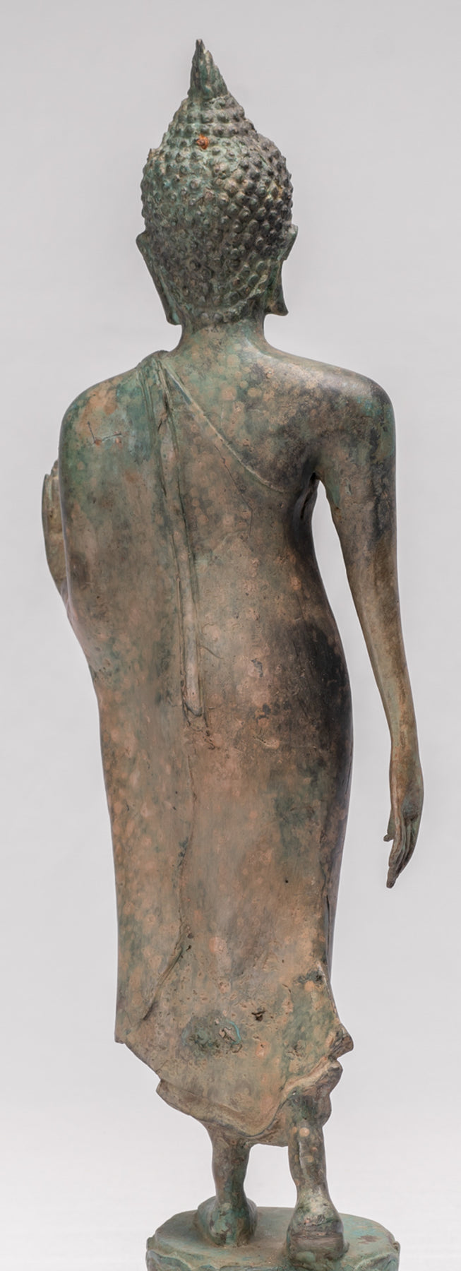 Antique Sukhothai Style Standing Bronze Protection Walking Buddha Statue - 42cm/17"