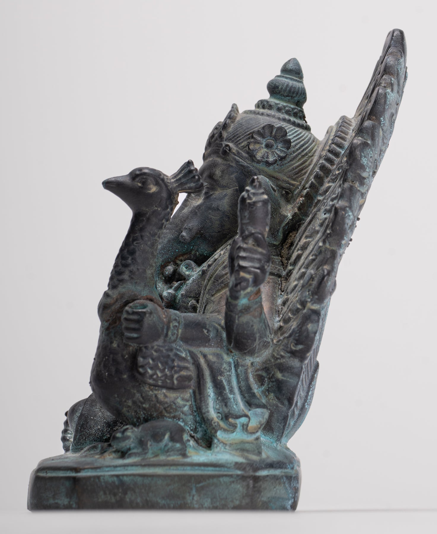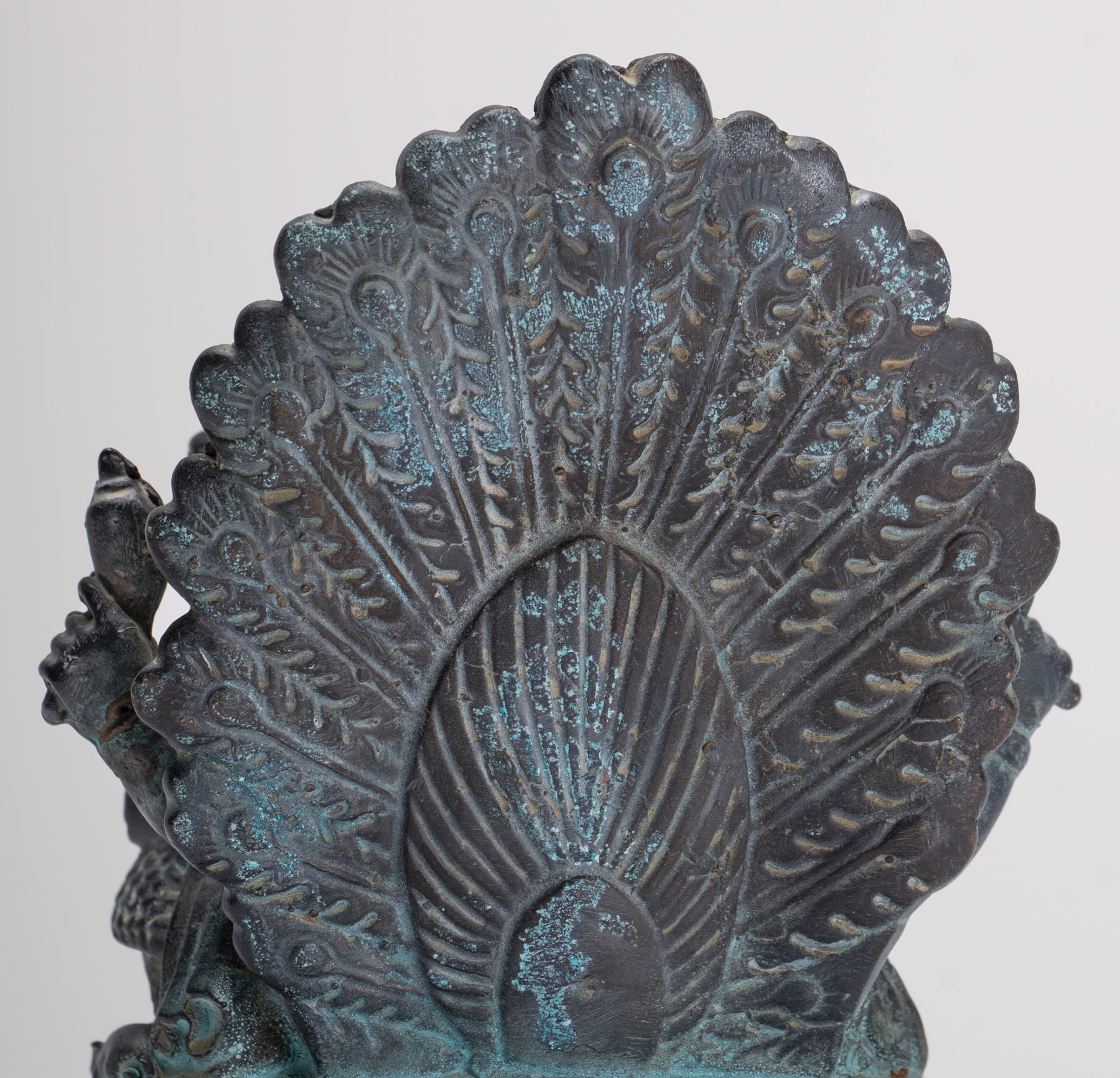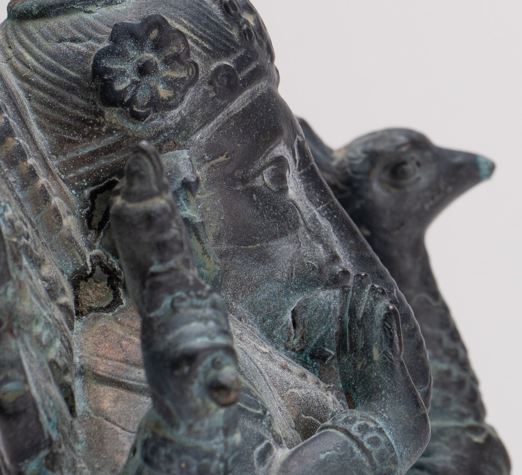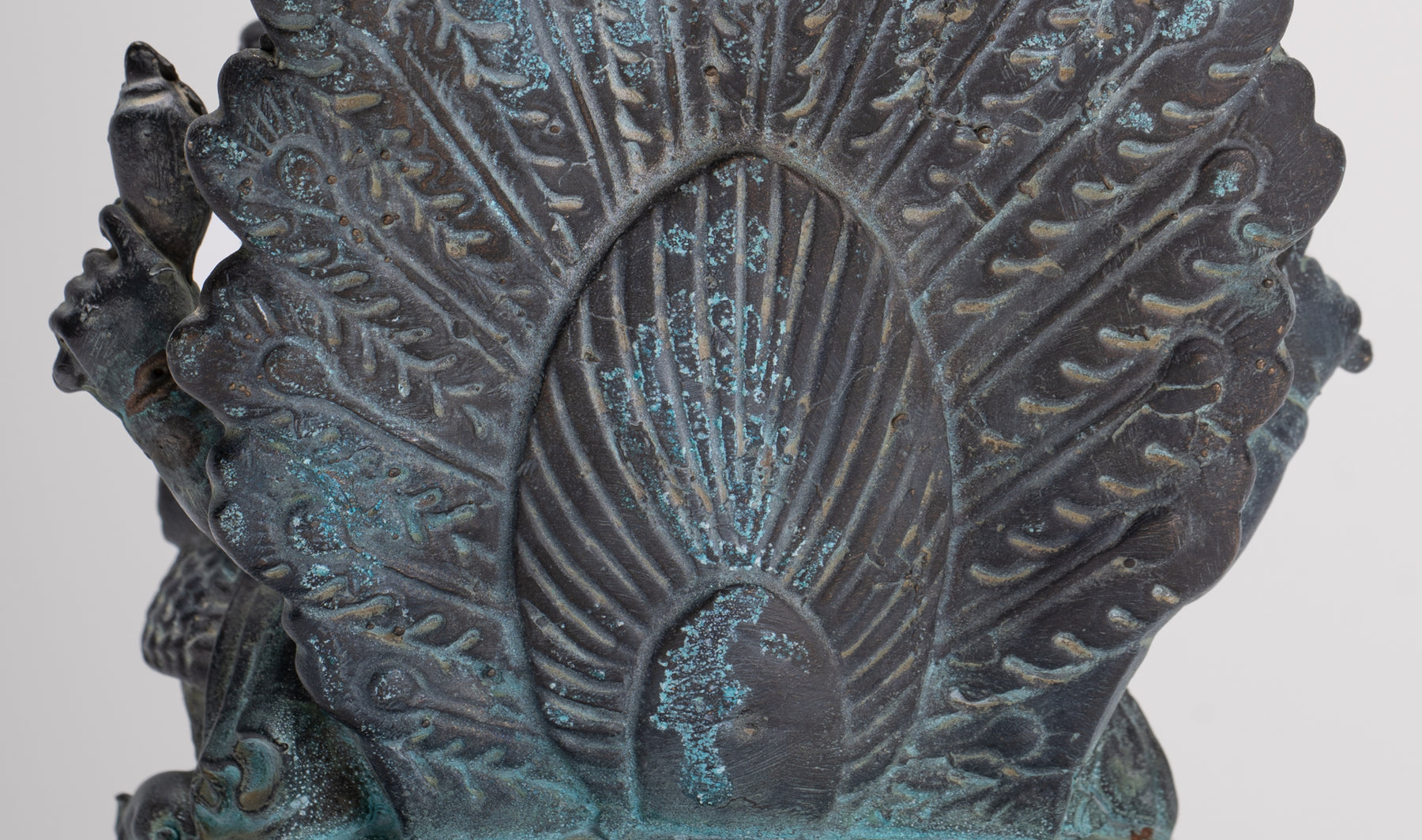 An antique Thai style bronze seated Mayuresha Ganapathy.
