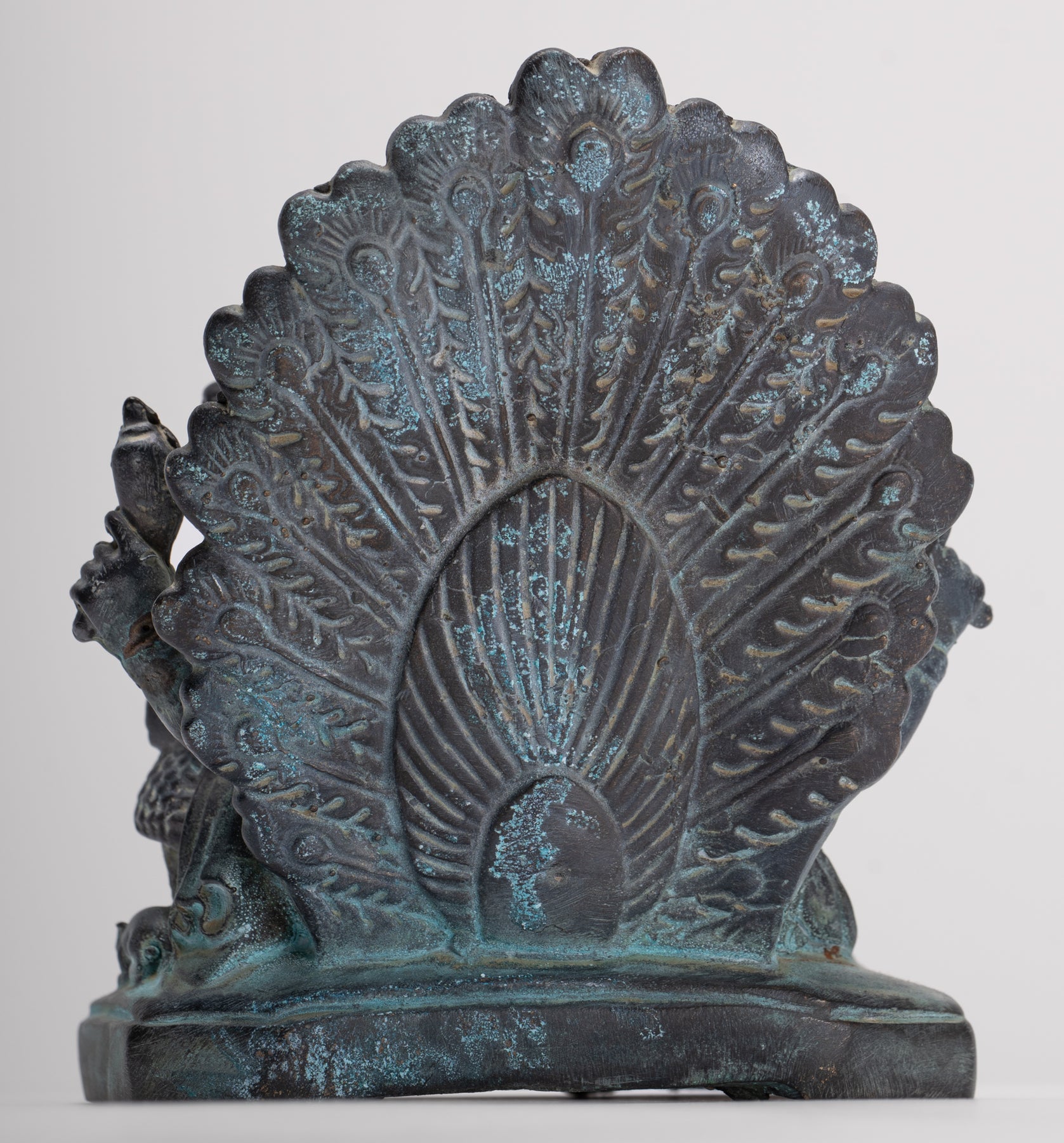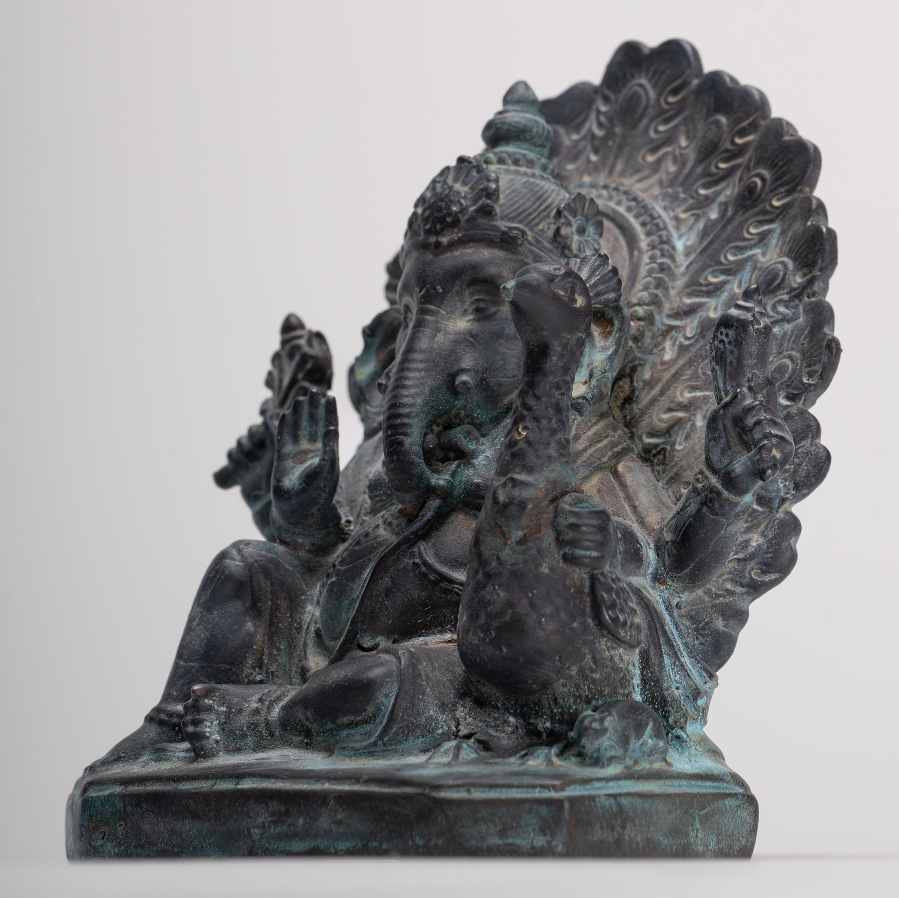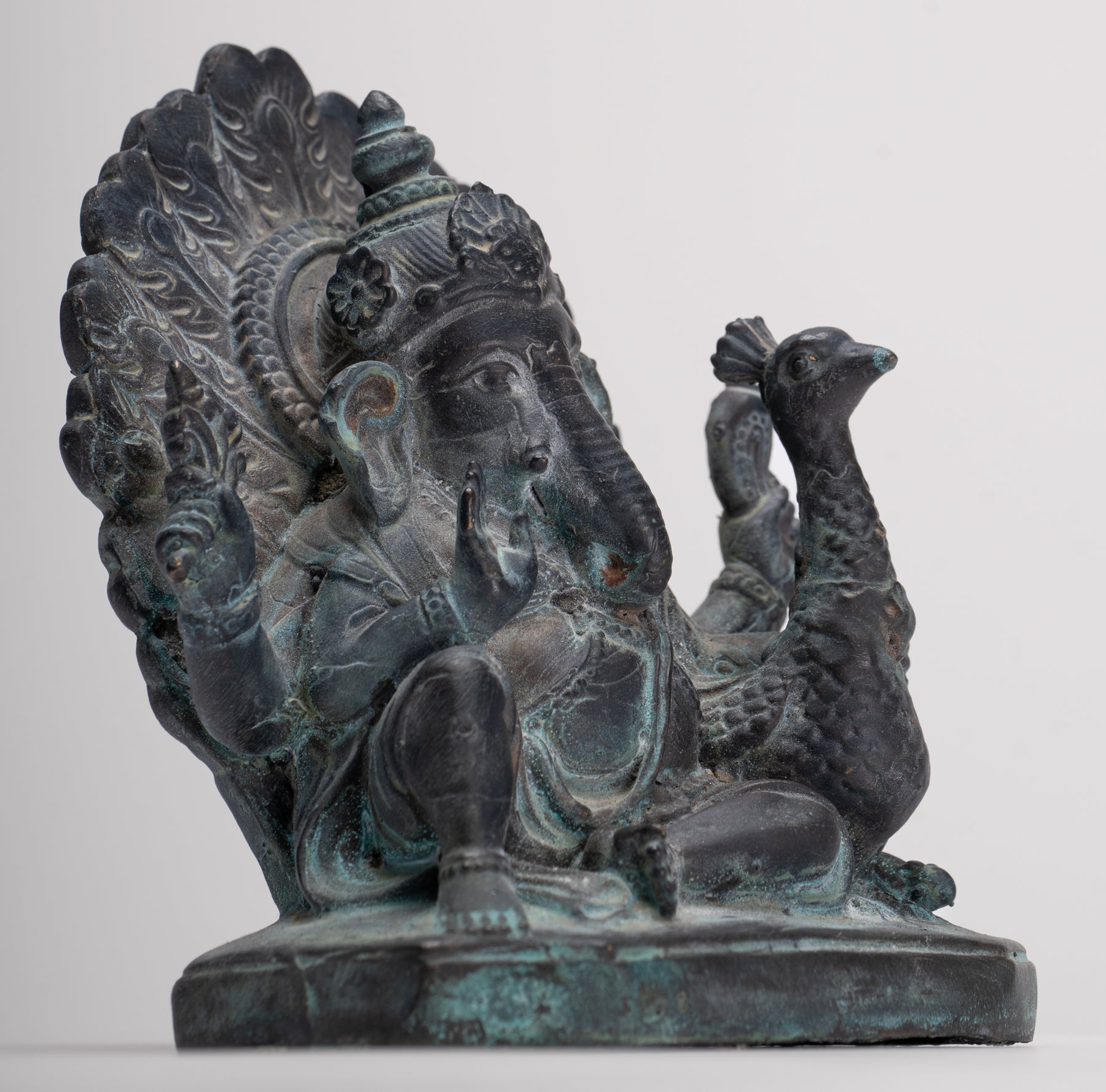 Ganesh - Antique Thai Style Bronze Seated Mayuresha Ganapathy Statue - 13cm/5"
