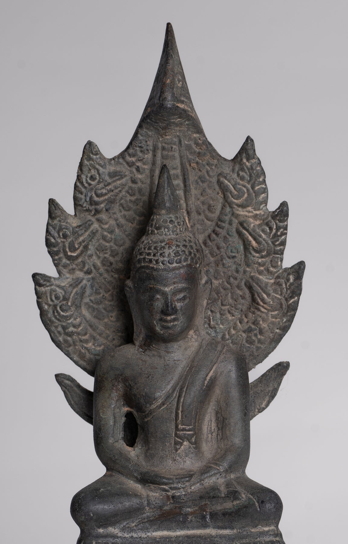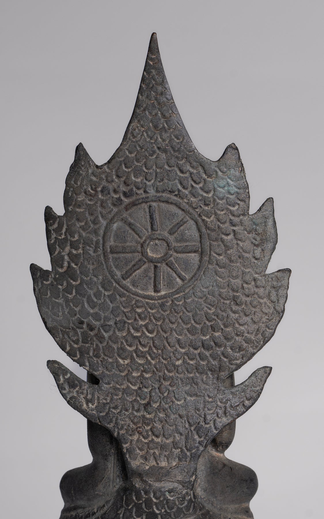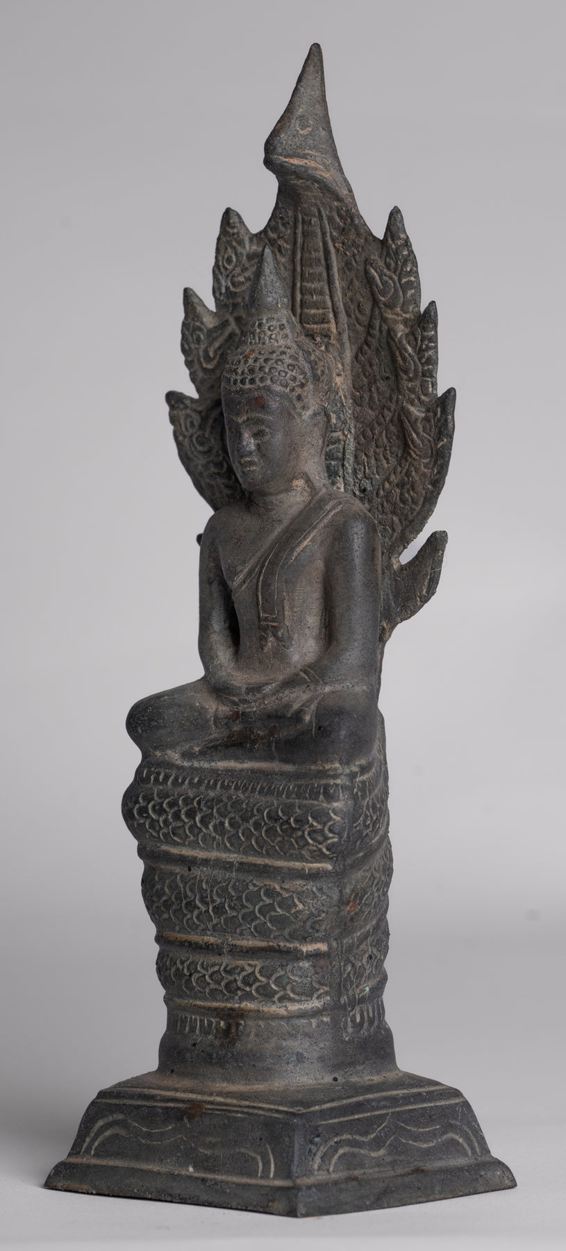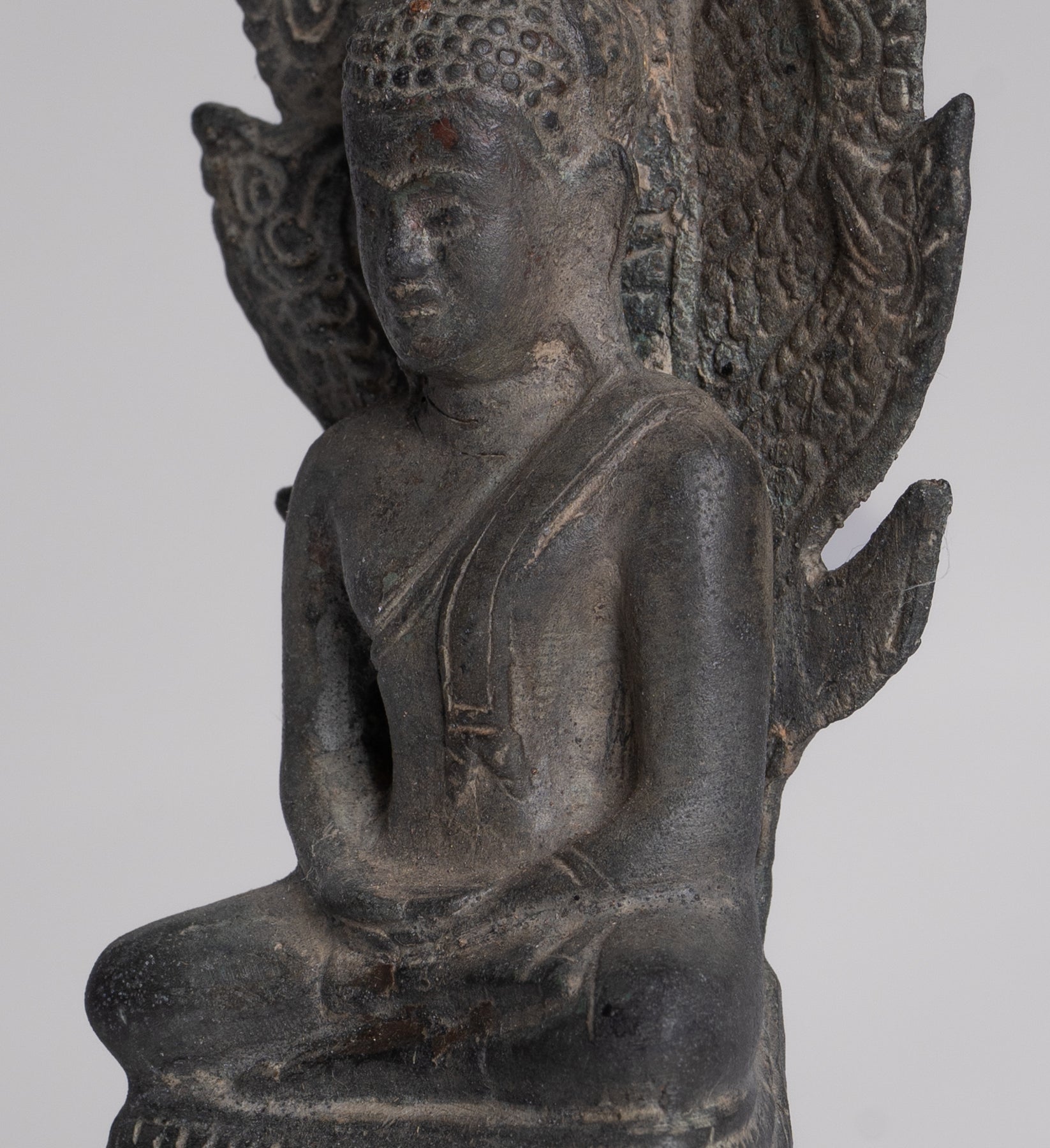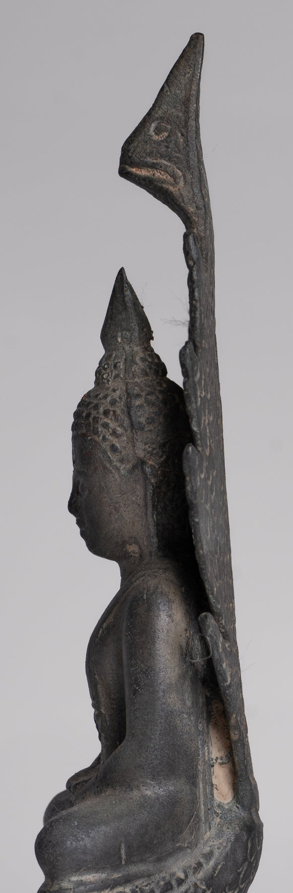 • Antique Sukhothai Style Bronze Meditating Naga Buddha Statue - 21cm/8"