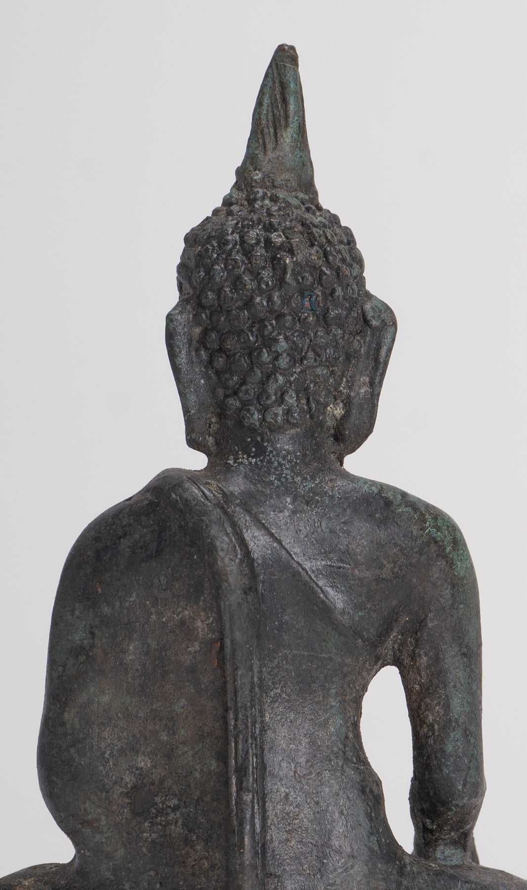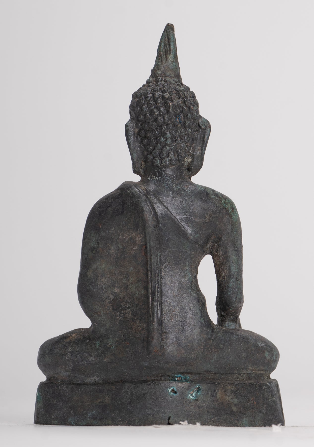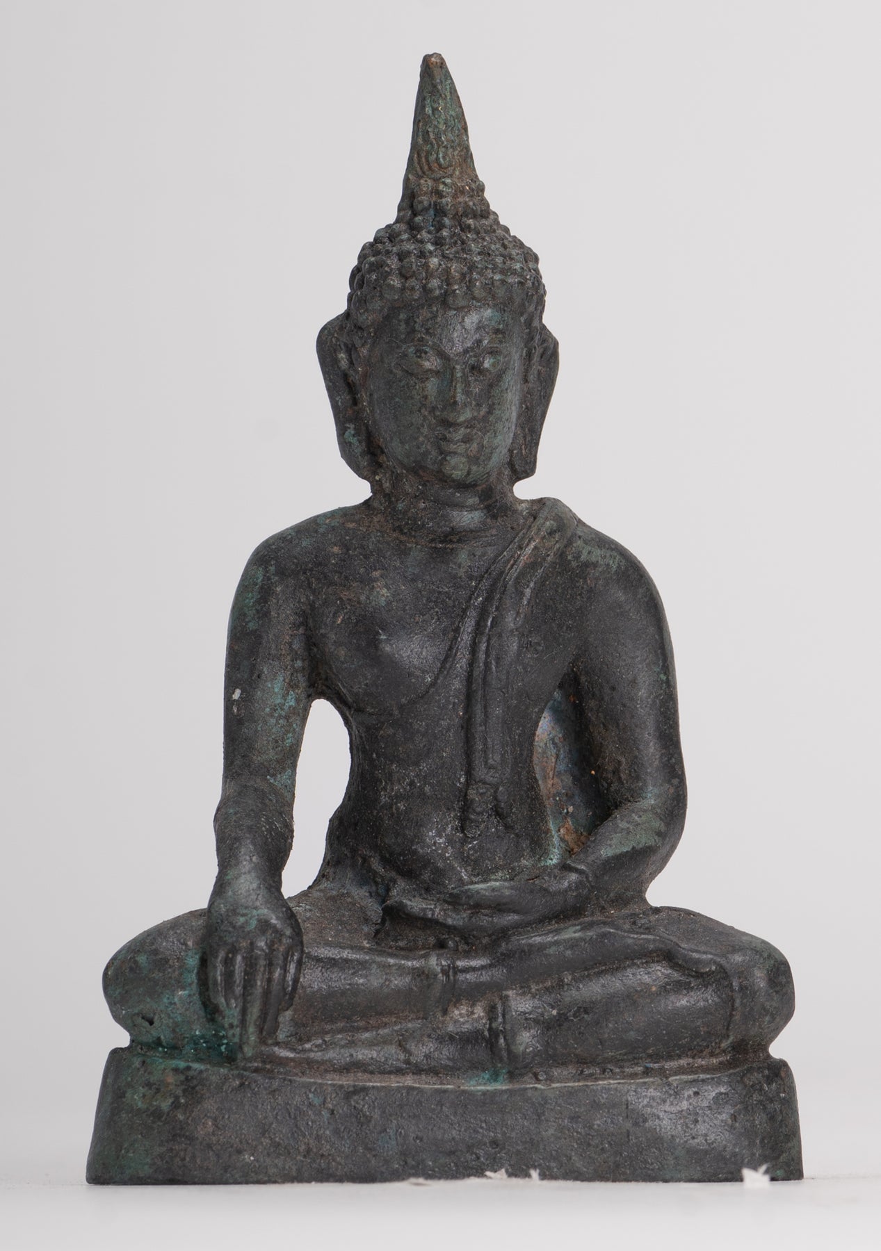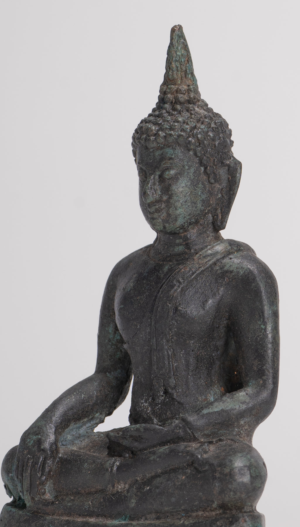 An antique 15th century Sukhothai style seated Buddha from Thailand.