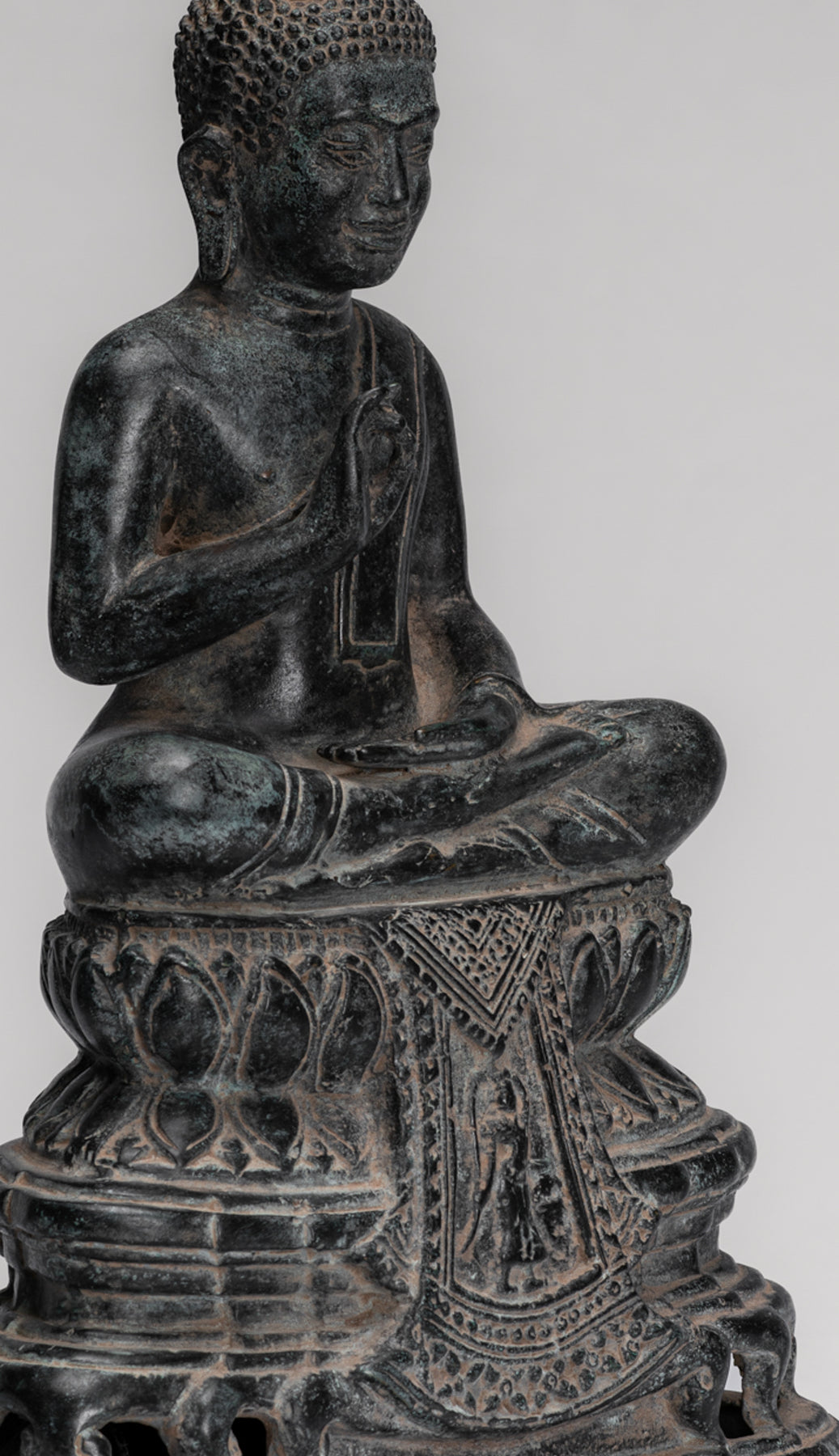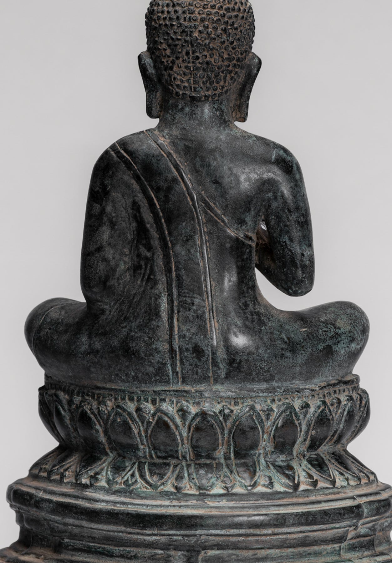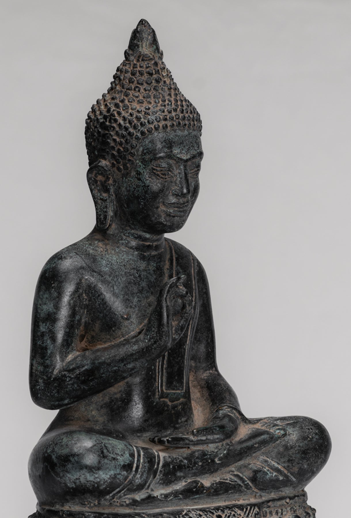 Antique Khmer Style Enthroned Bronze Buddha Statue Teaching Mudra 31cm/12"