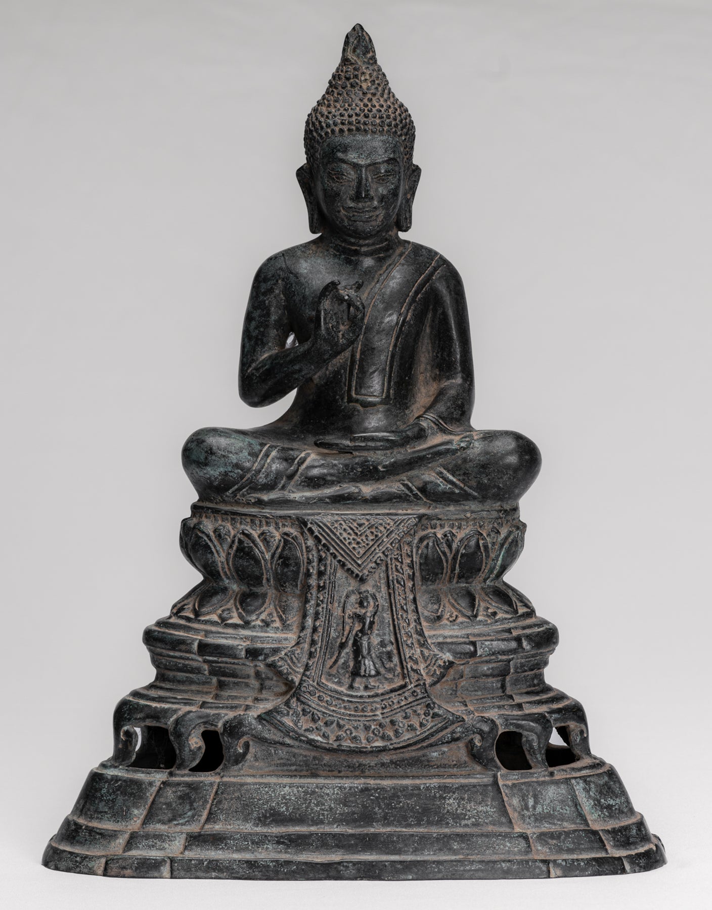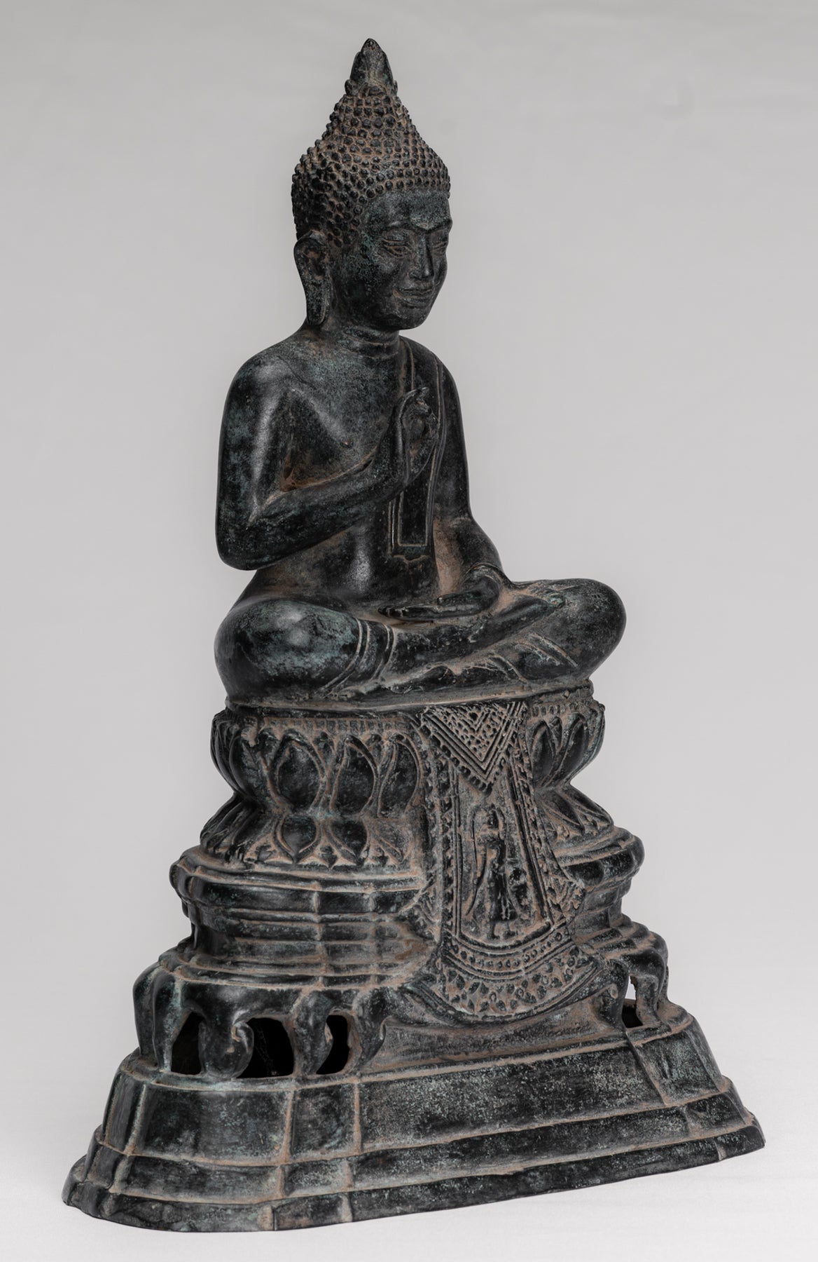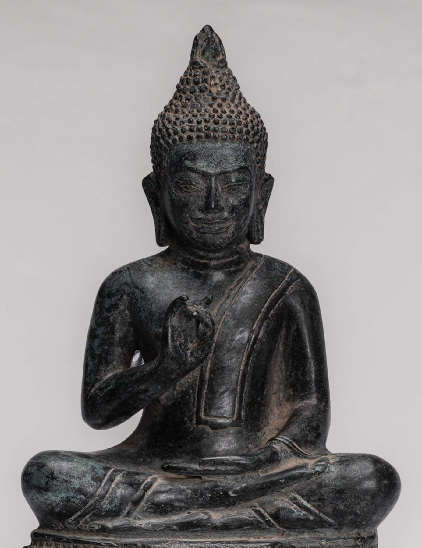 Antique Khmer Style Enthroned Bronze Buddha Statue Teaching Mudra 31cm/12"