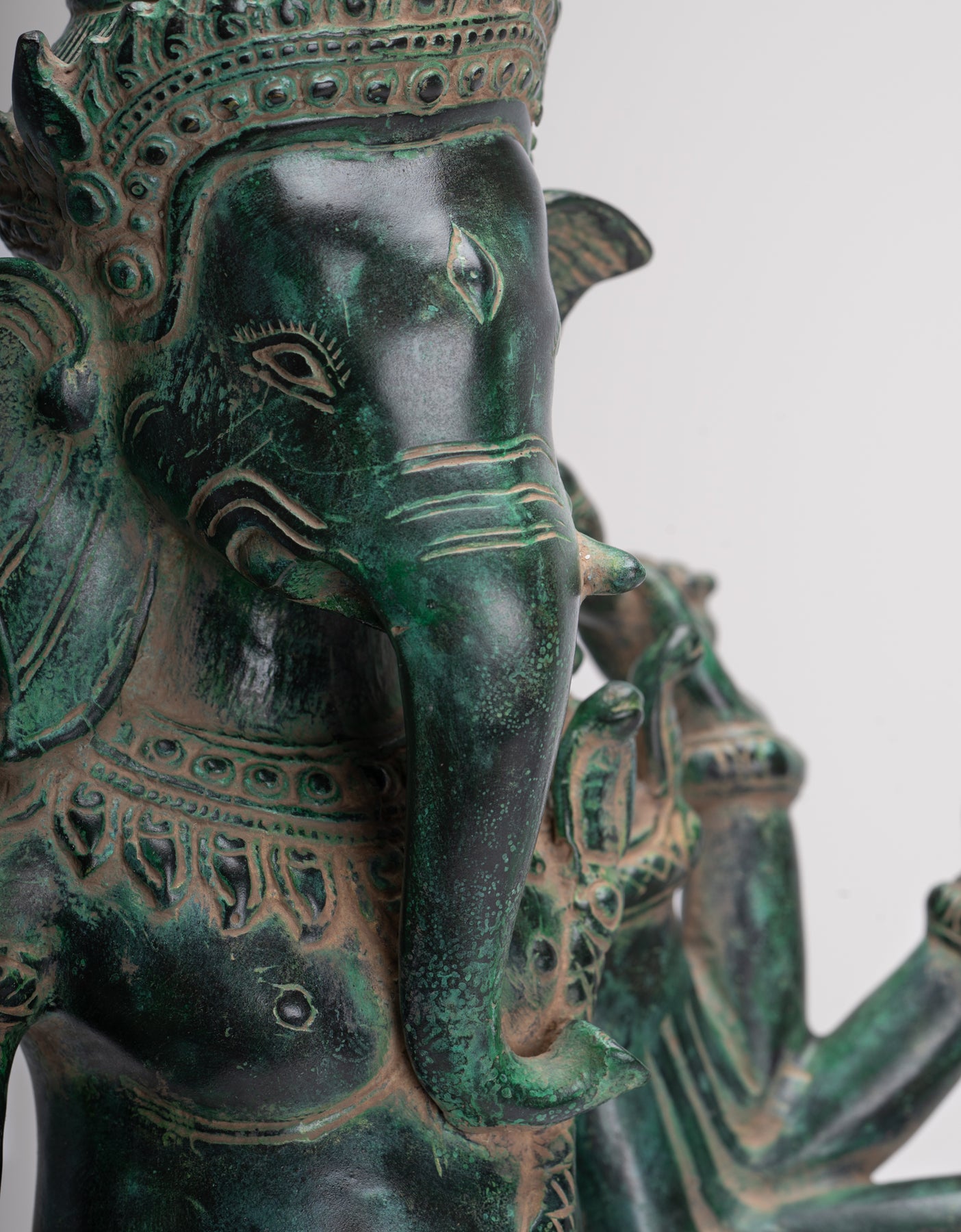 • Antique Khmer Style Standing Bronze Angkor Wat Ganesha Statue on Yoni - 55cm/22"