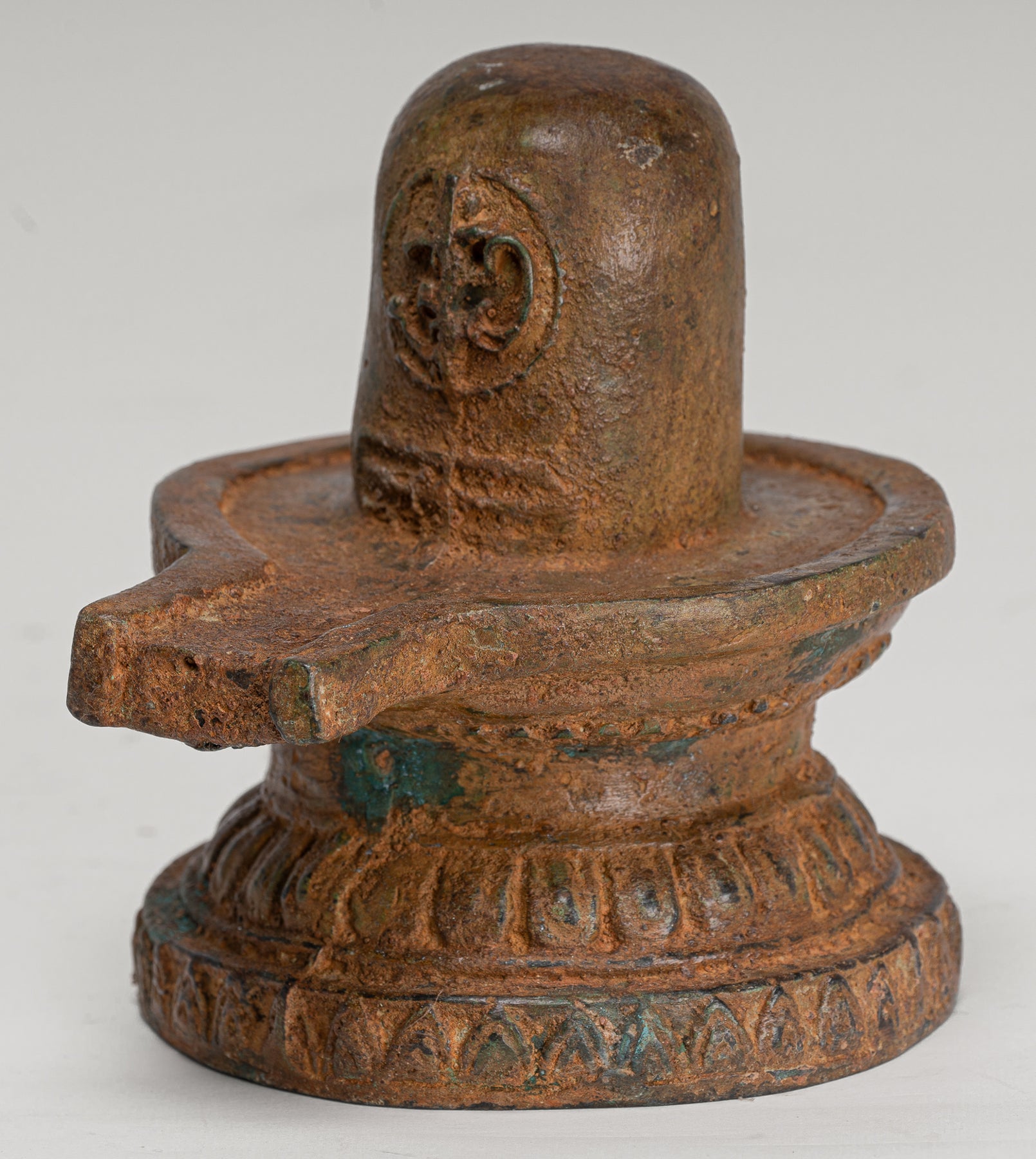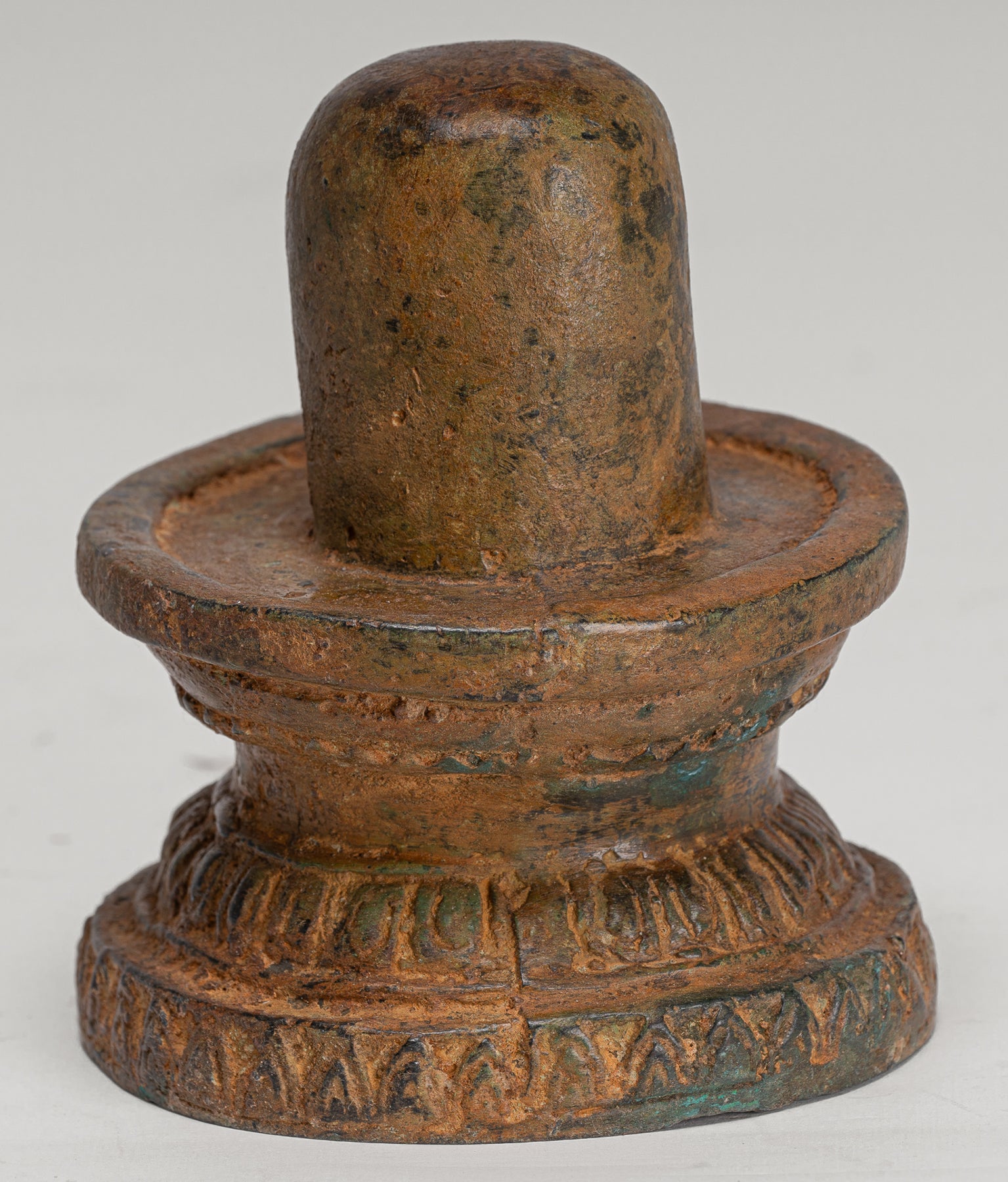A fine quality antique Indian-style bronze linga with yoni, this piece embodies one of the most profound and ancient symbols in Hindu spirituality. As a symbol of fertility and energy, the linga is an abstract, or aniconic, representation of the Hindu deity Shiva.