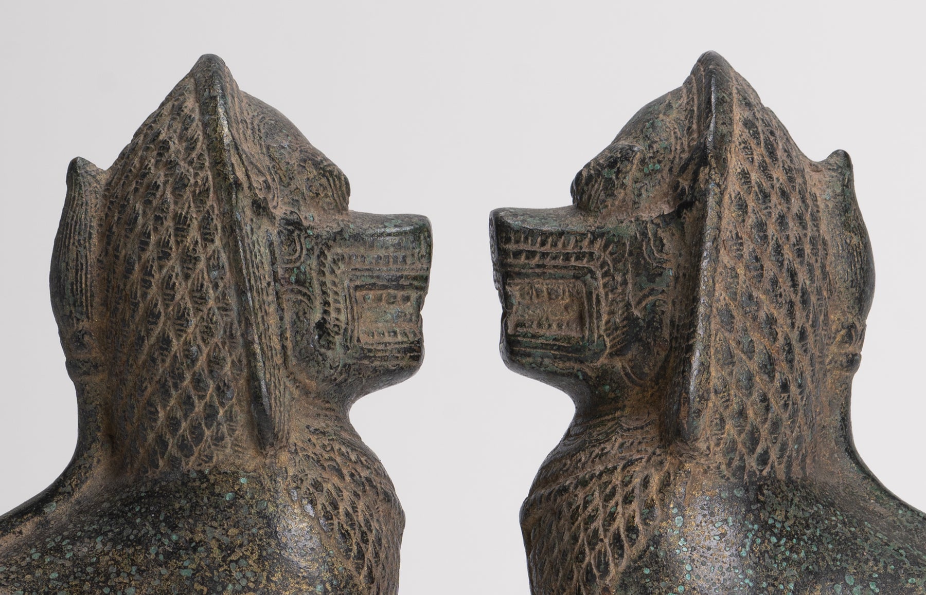 The casting of these pieces are beautiful as you can see in the fine details of the face. Each detail is rendered perfectly. The distinctive patina of the piece is also particularly delightful.