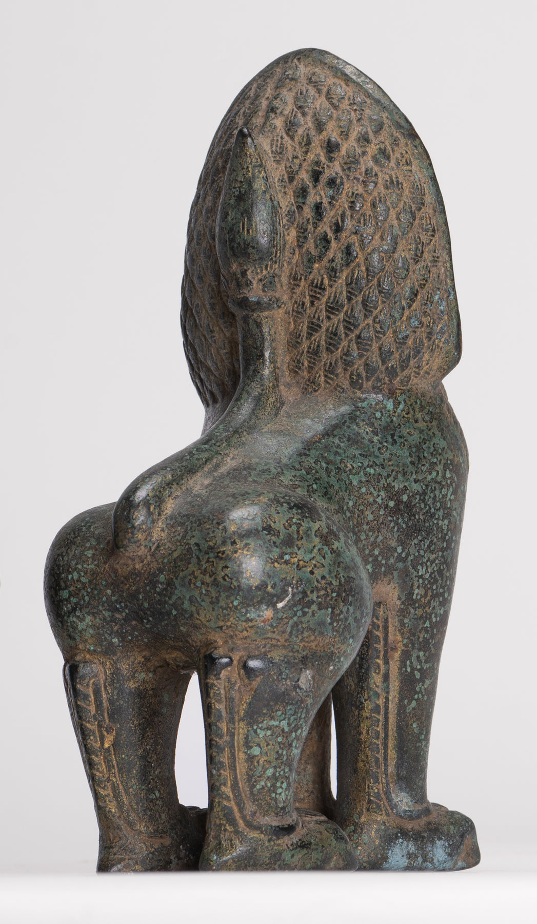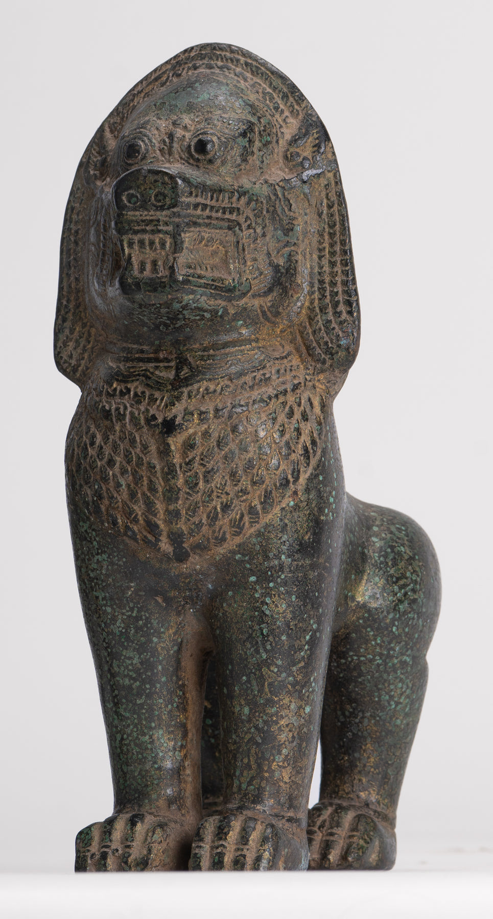 Temple Lions - Antique Khmer Style Bronze Standing Temple Guardian or Lions (Pair) - 20cm/8"