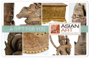 Asian sculptures showcasing detailed figures and animals, with a text overlay "Find the piece you desire."