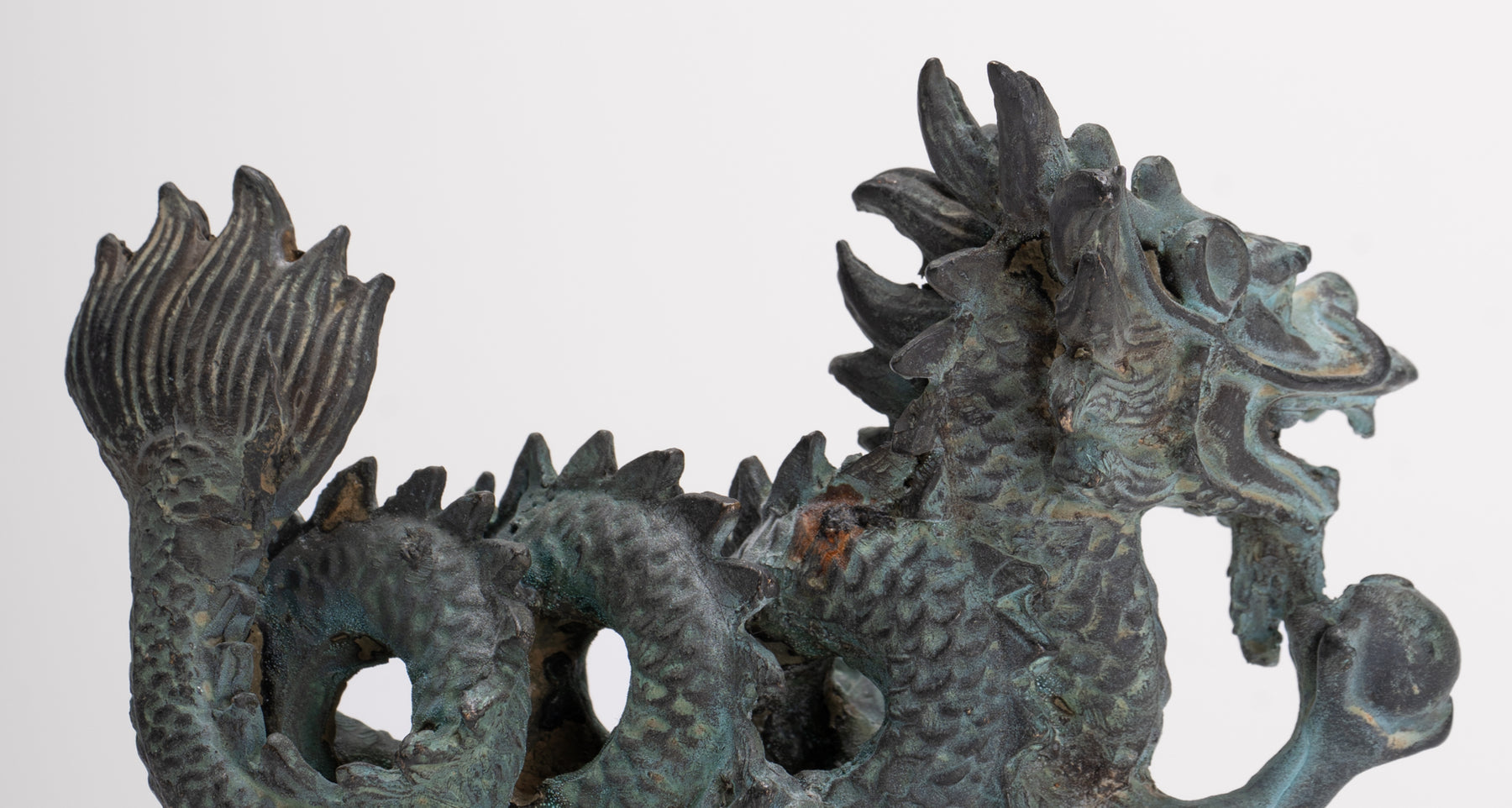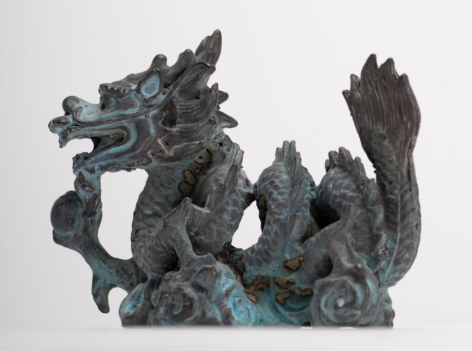 • Estatua de dragón de bronce de estilo chino antiguo - 12.5 cm