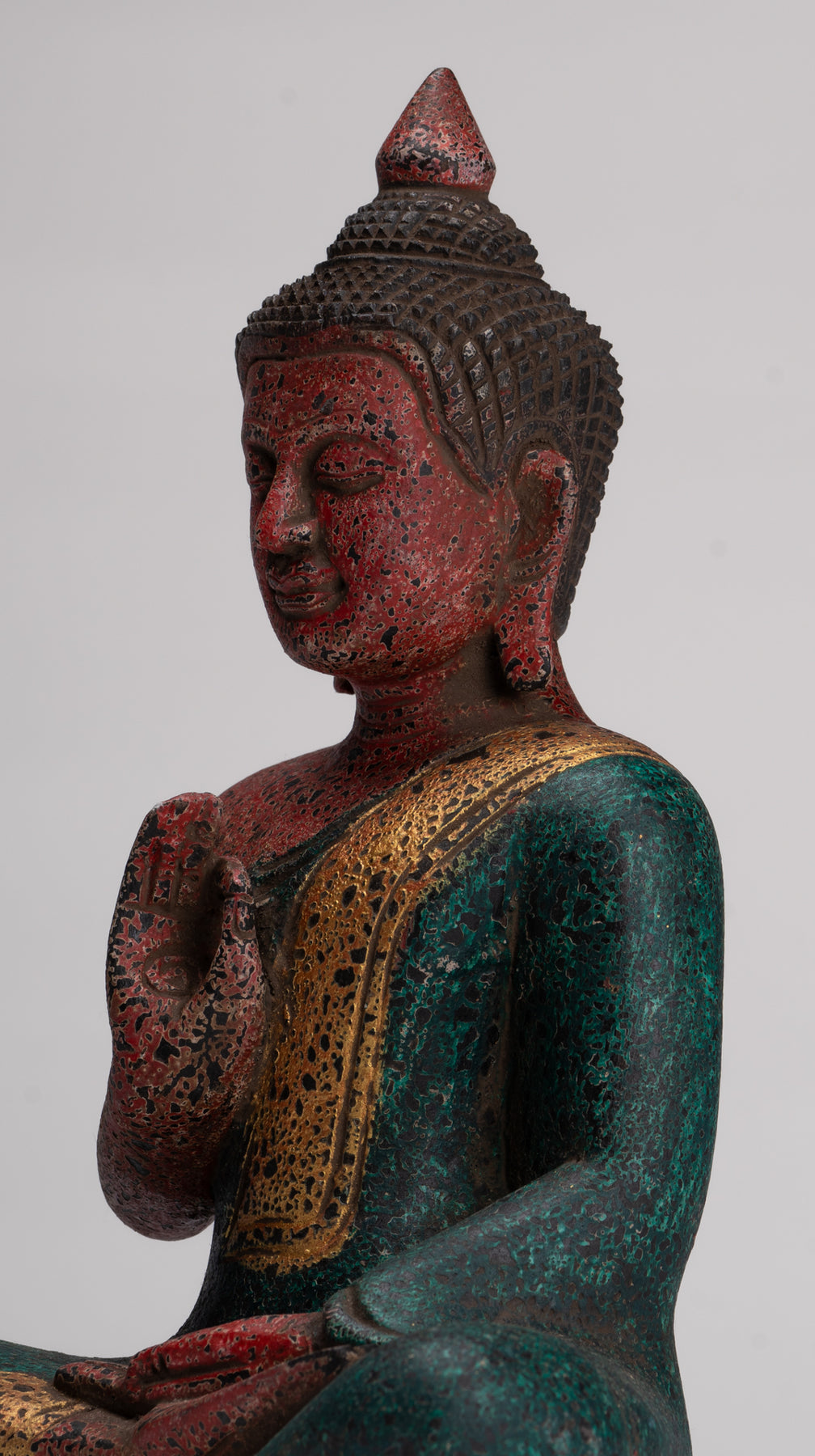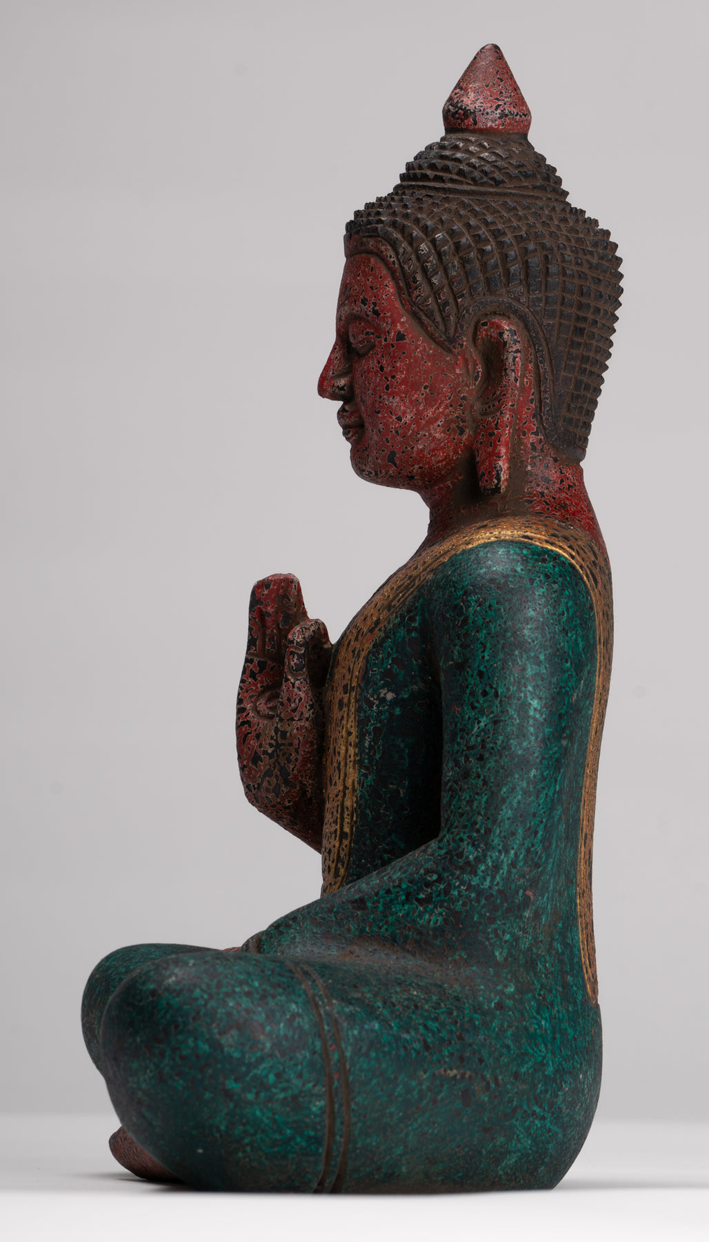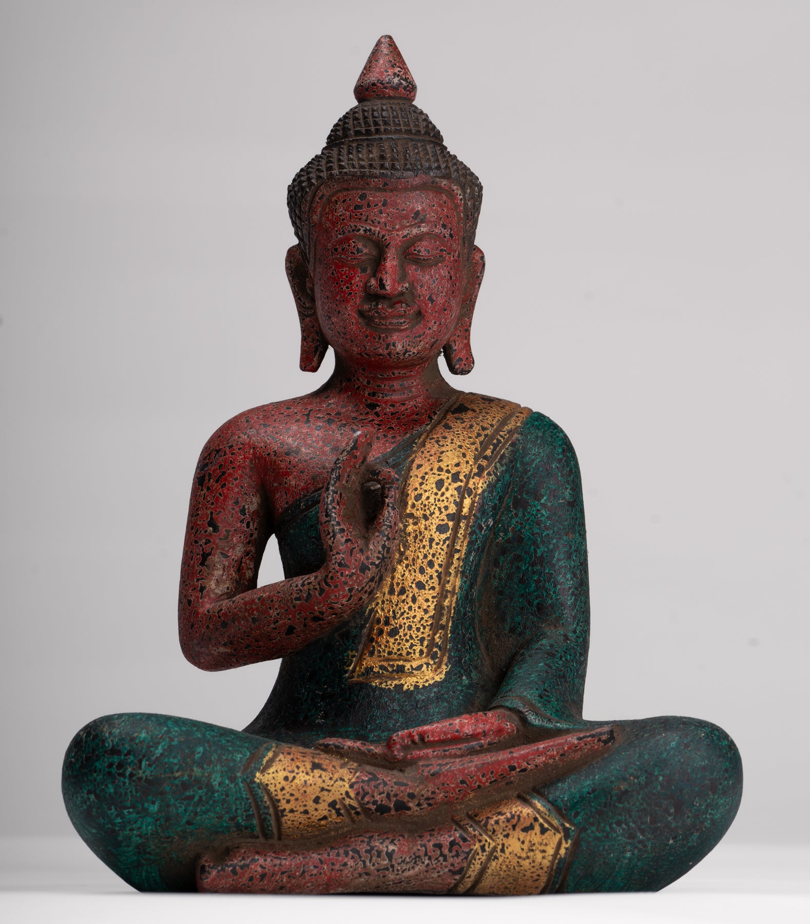 El Buda de enseñanza, con su gesto icónico de girar la rueda del Dharma, encapsula la esencia de la filosofía y la práctica budista. Representa la profunda realización del Buda de la naturaleza del sufrimiento y su misión compasiva de guiar a los demás hacia la liberación.