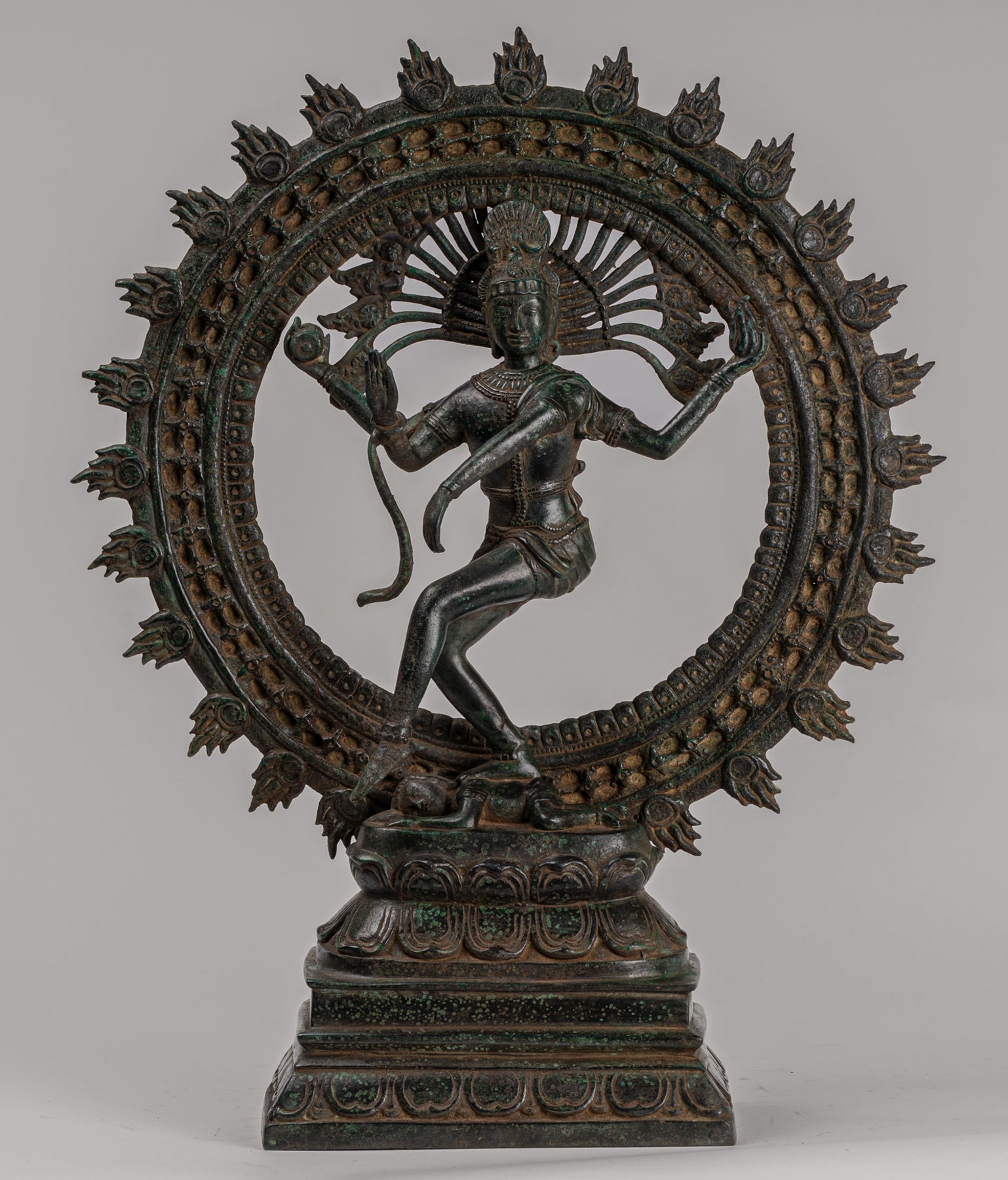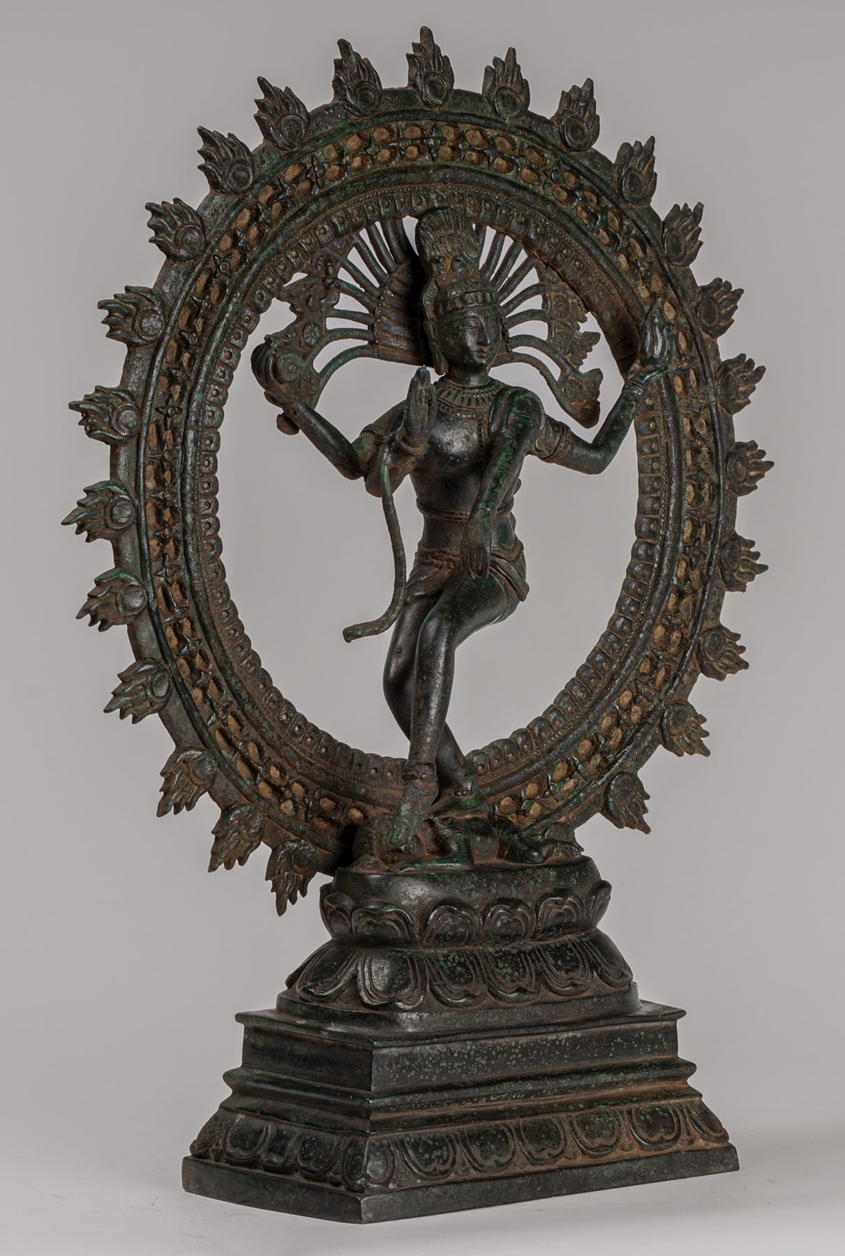 Aquí Shiva se representa como el bailarín divino y señor de las artes dramáticas. Con un equilibrio perfecto y proporciones, la escultura representa a Shiva como Lord Nataraja, en pose tradicional.