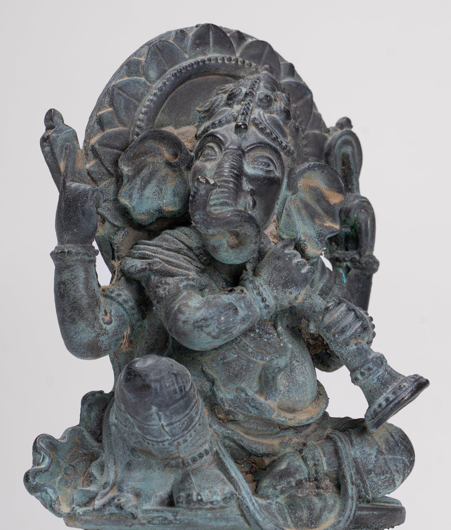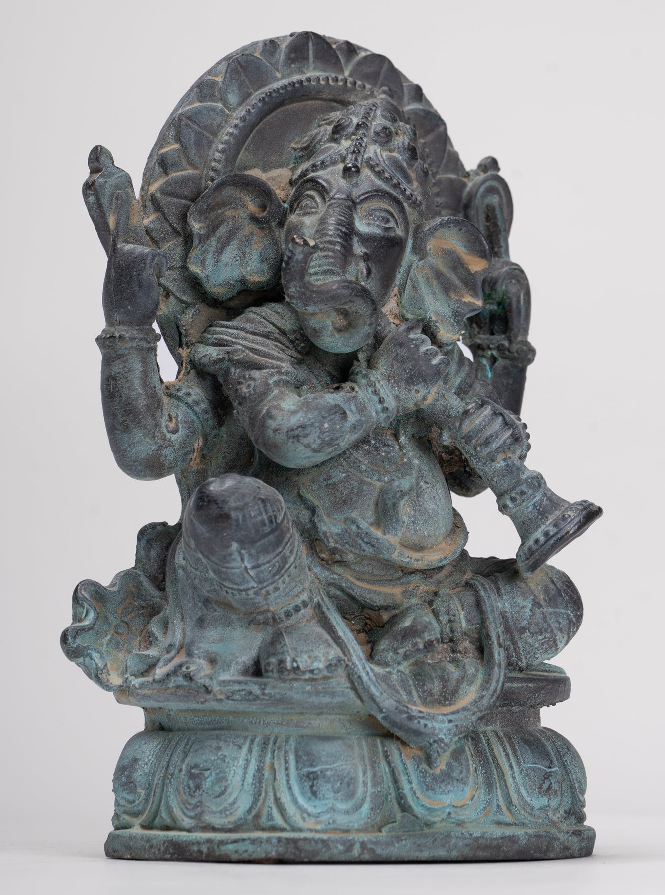 Un antiguo Ganesh sentado en bronce de estilo tailandés tocando su trompeta.
