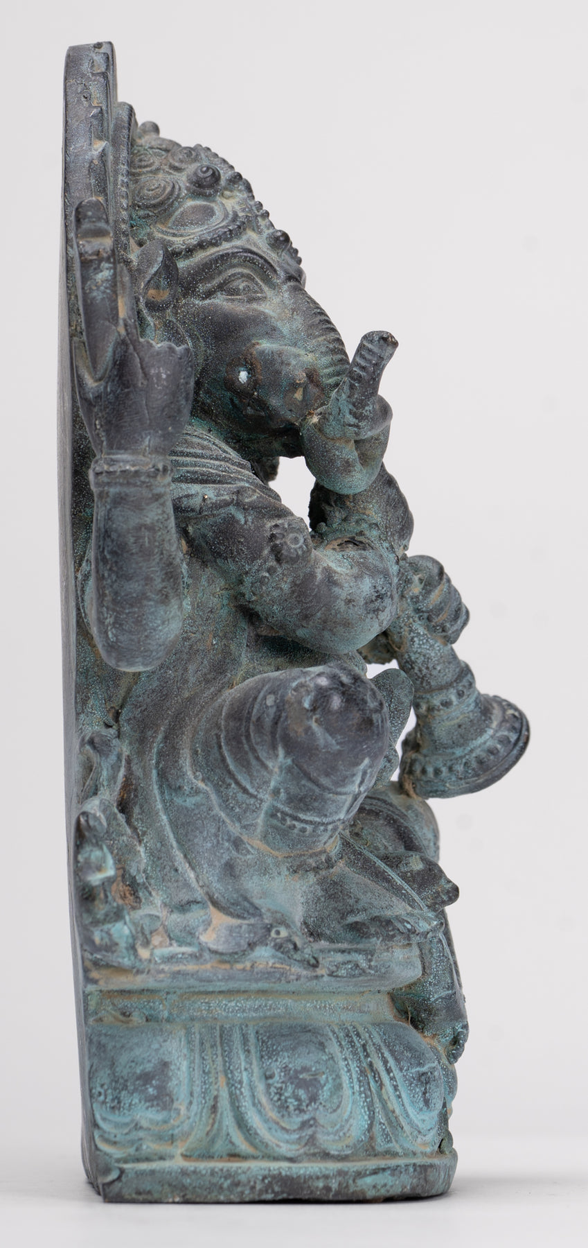 La dirección del tronco de Ganesha tiene un significado simbólico. Aquí el tronco gira hacia la derecha de Ganesha. Esto representa Moksha o iluminación. La dirección perfecta para quienes buscan o siguen un camino espiritual.