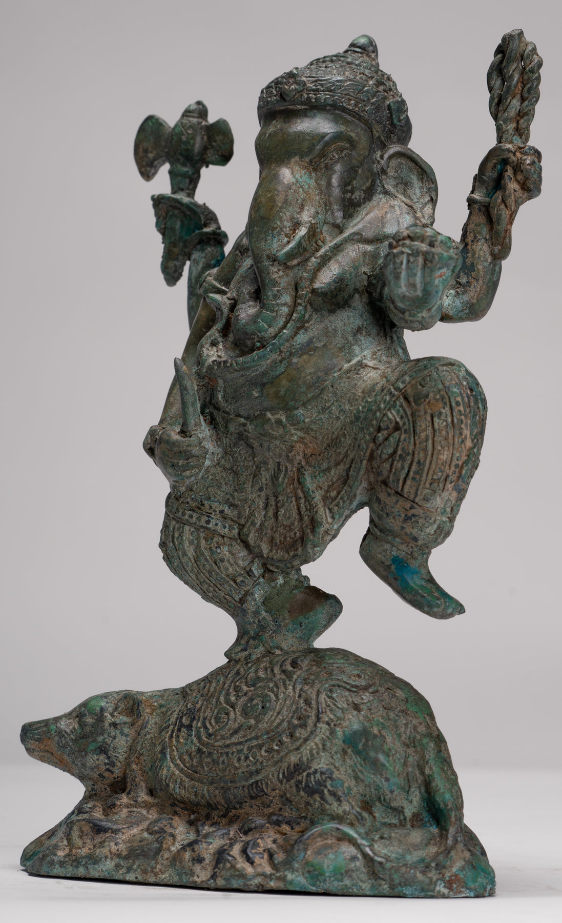 Estatua de Ganesha de baile de bronce de estilo tailandés con ratón - 28 cm/11 "