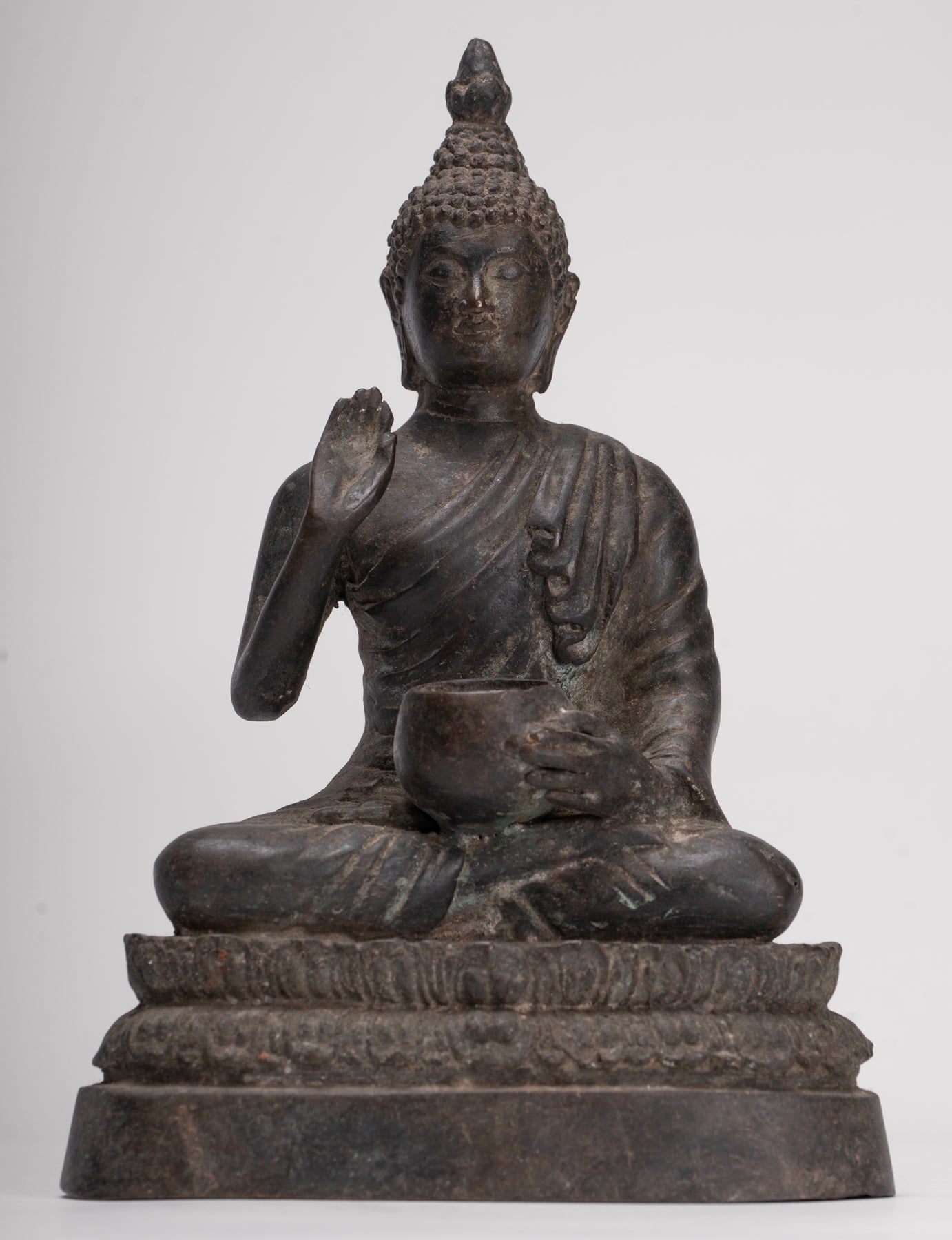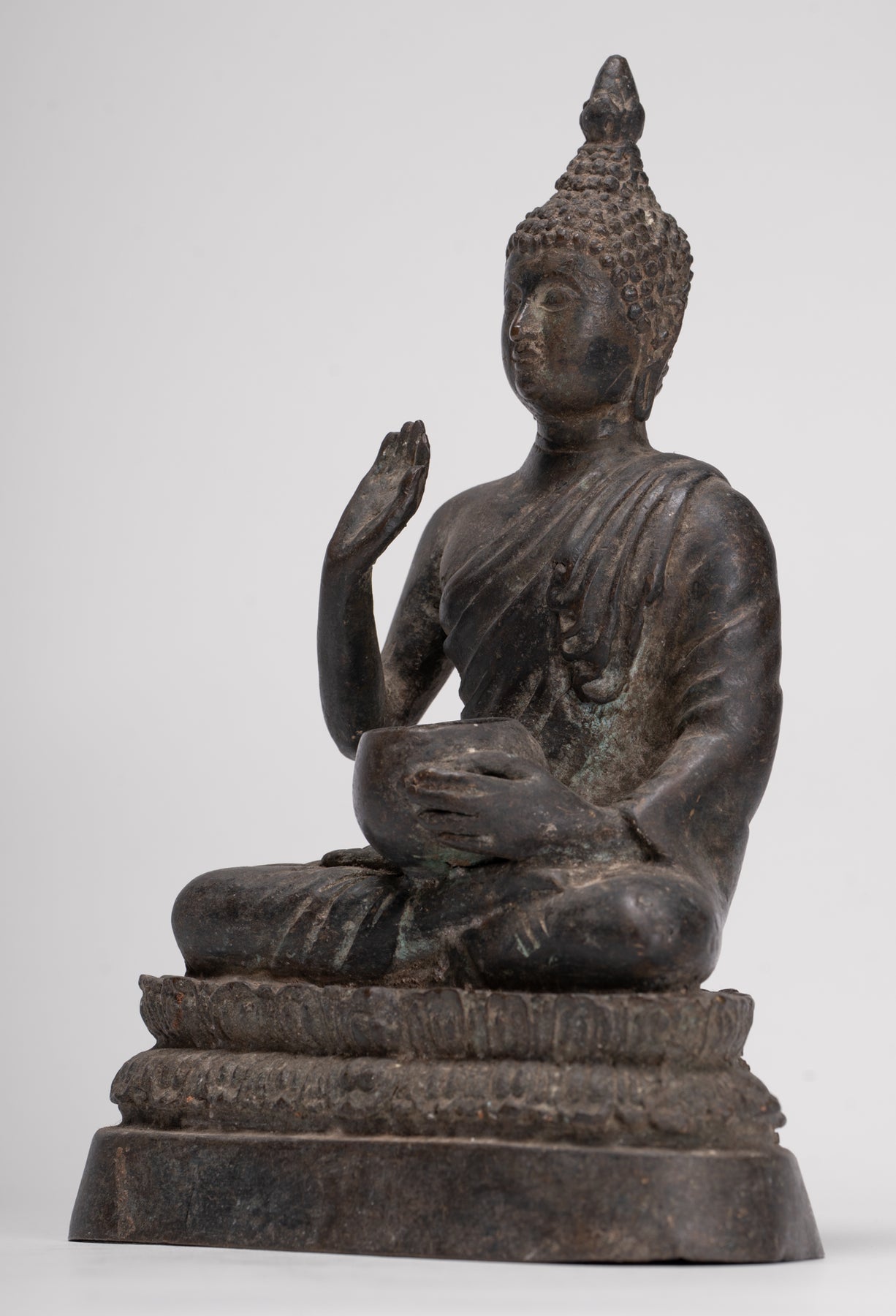 Un antiguo Buda de estilo tailandés de HD Asian Art que representa un Buda de estilo Chiang Saen después de su iluminación. El Señor Buda está sentado en el Abhaya o mudra de protección.