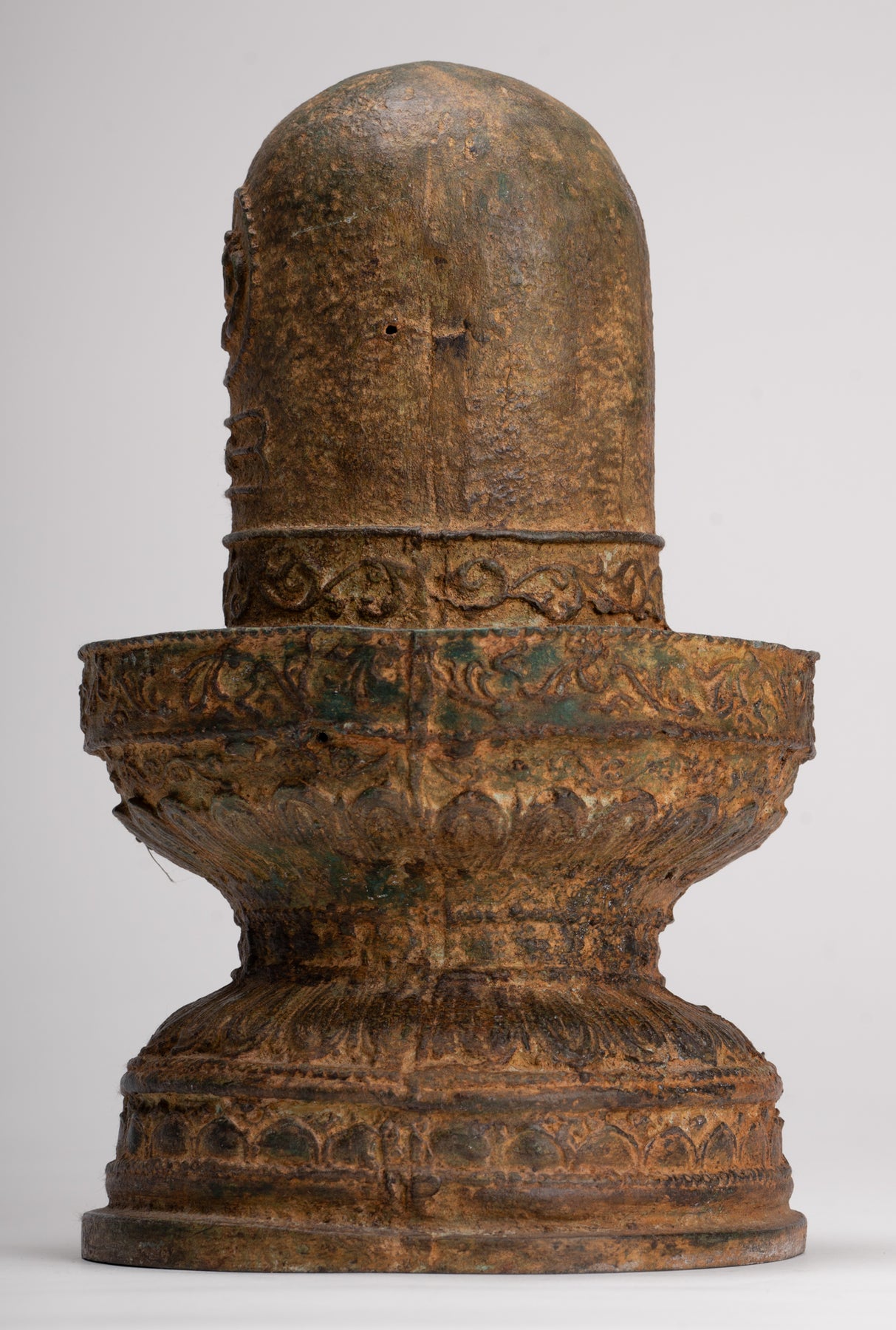 Una linga de bronce de estilo indio antiguo de buena calidad con yoni.