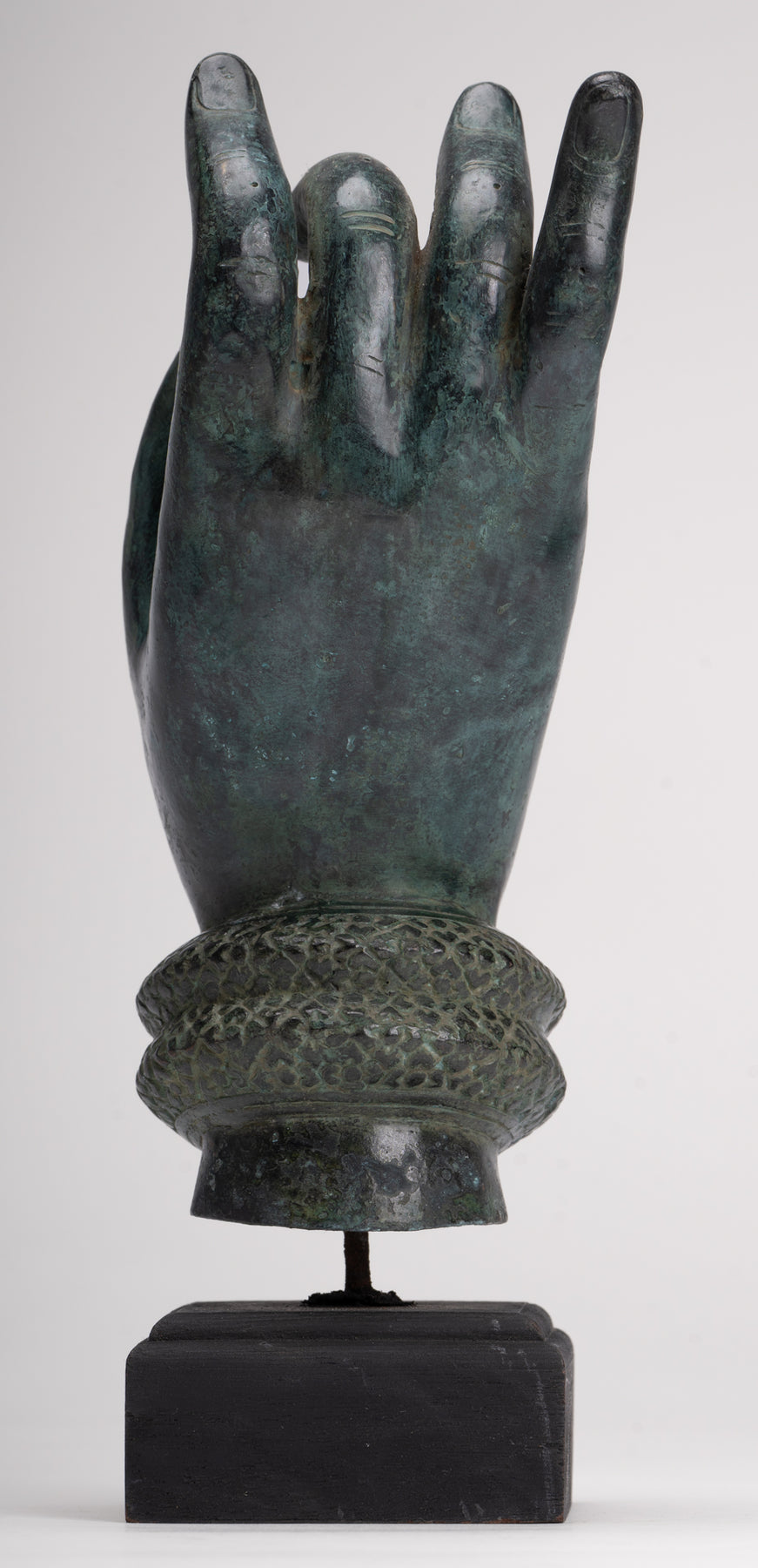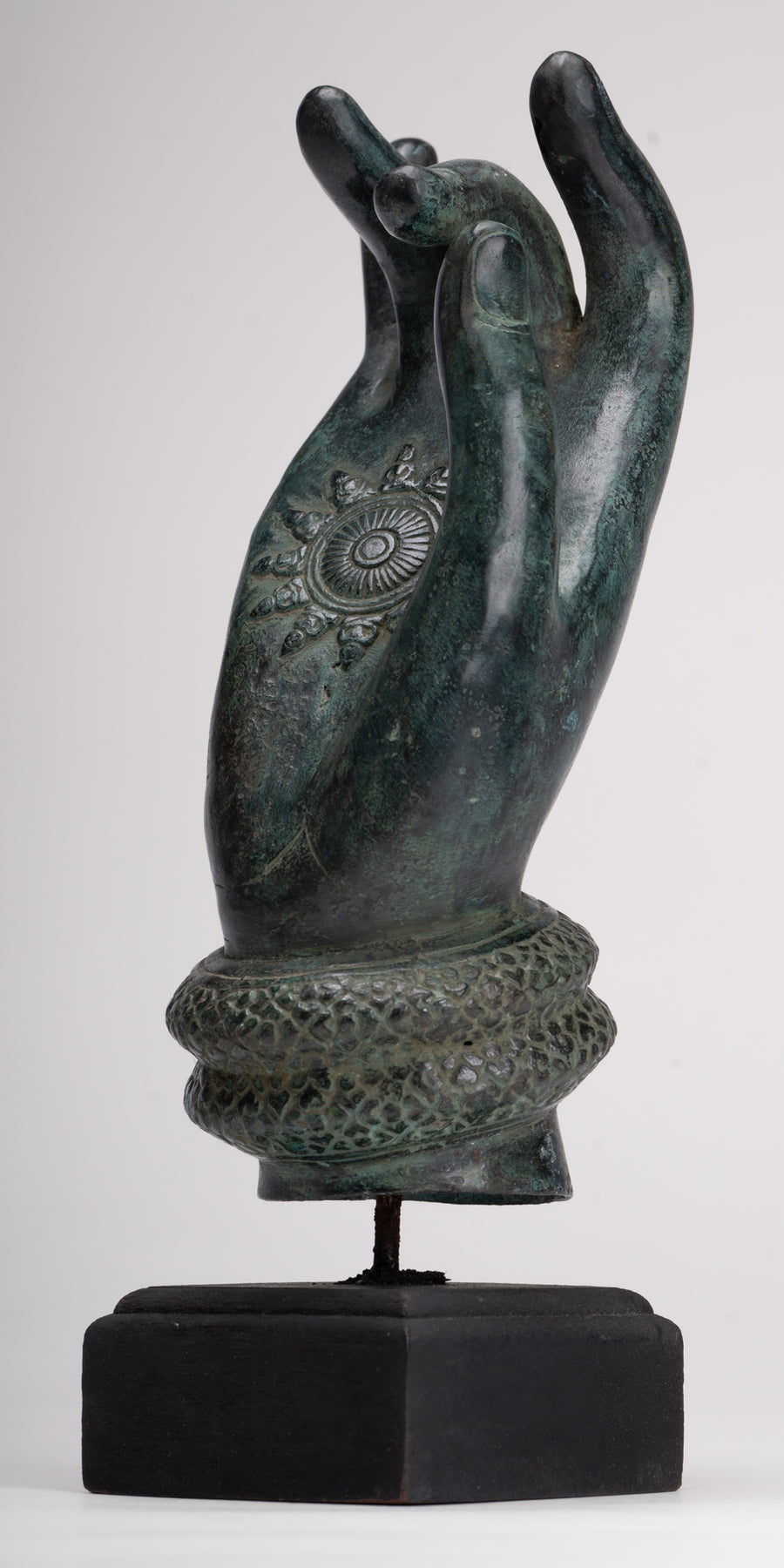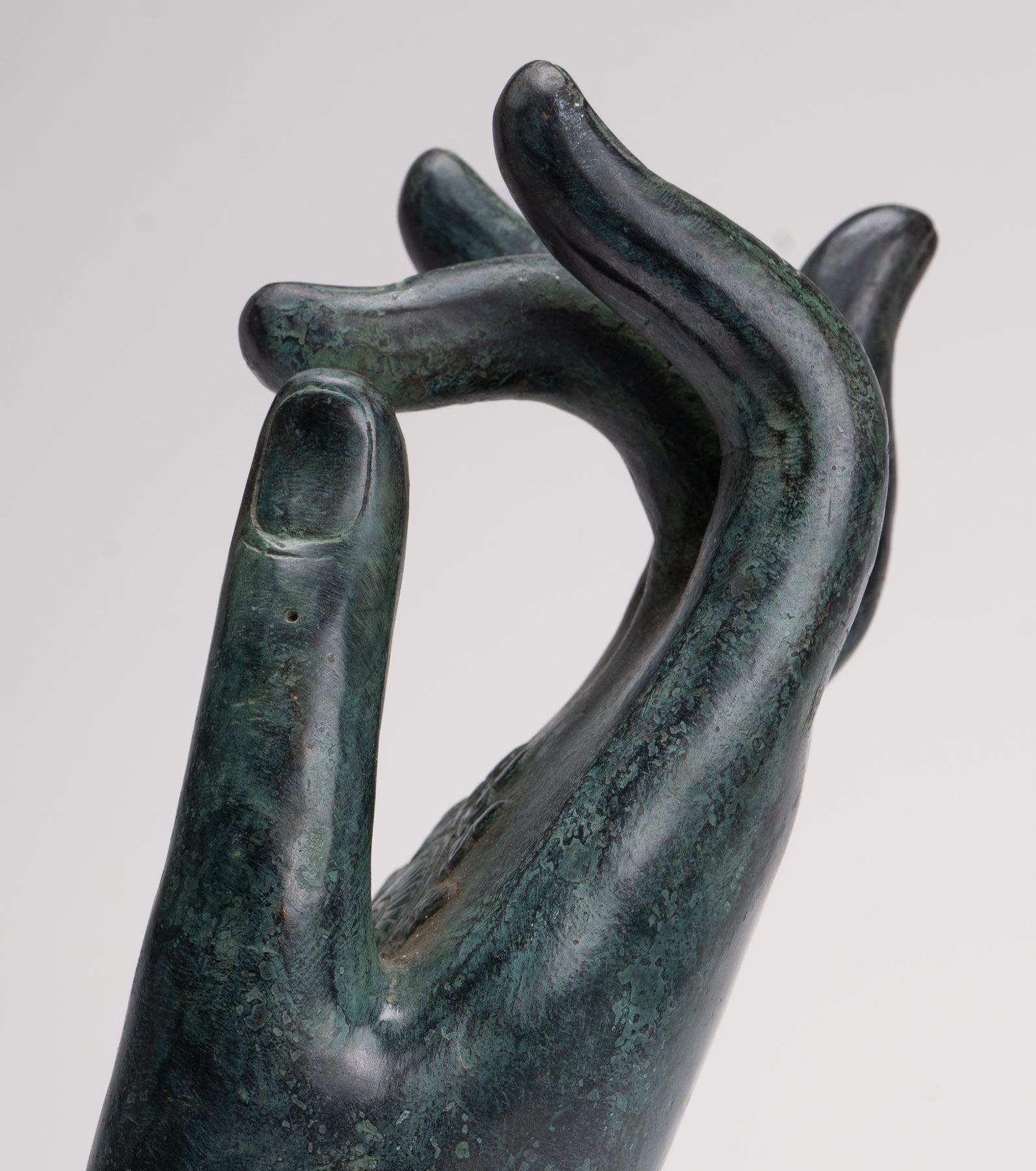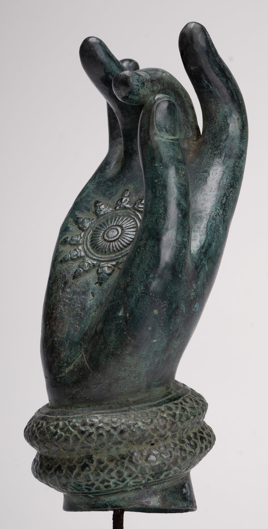 Una mano antigua de estilo jemer de Camboya. Los dedos se plantean en un gesto de sabiduría o enseñanza. El dedo y el pulgar se mantuvieron unidos.