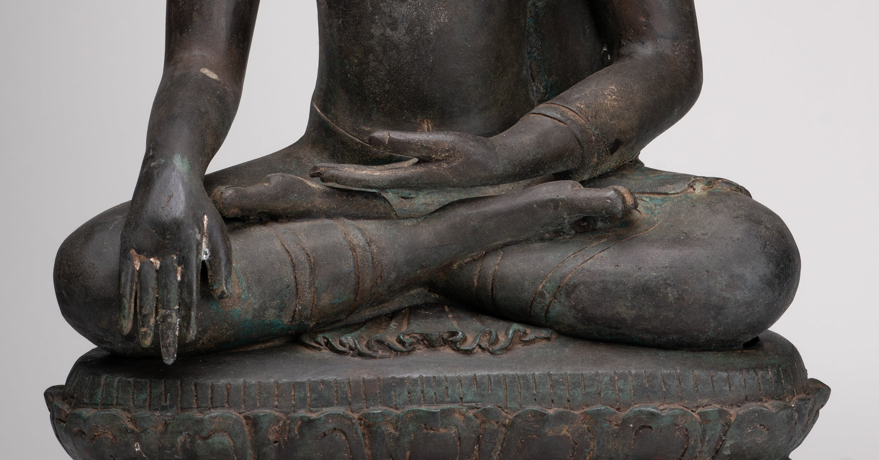 Come parte di una collezione accuratamente curata di sculture del sud-est asiatico, è sia un'opera d'arte che un simbolo spirituale: un ricordo, in bronzo massiccio, del momento del risveglio che si trova al centro del percorso buddista.