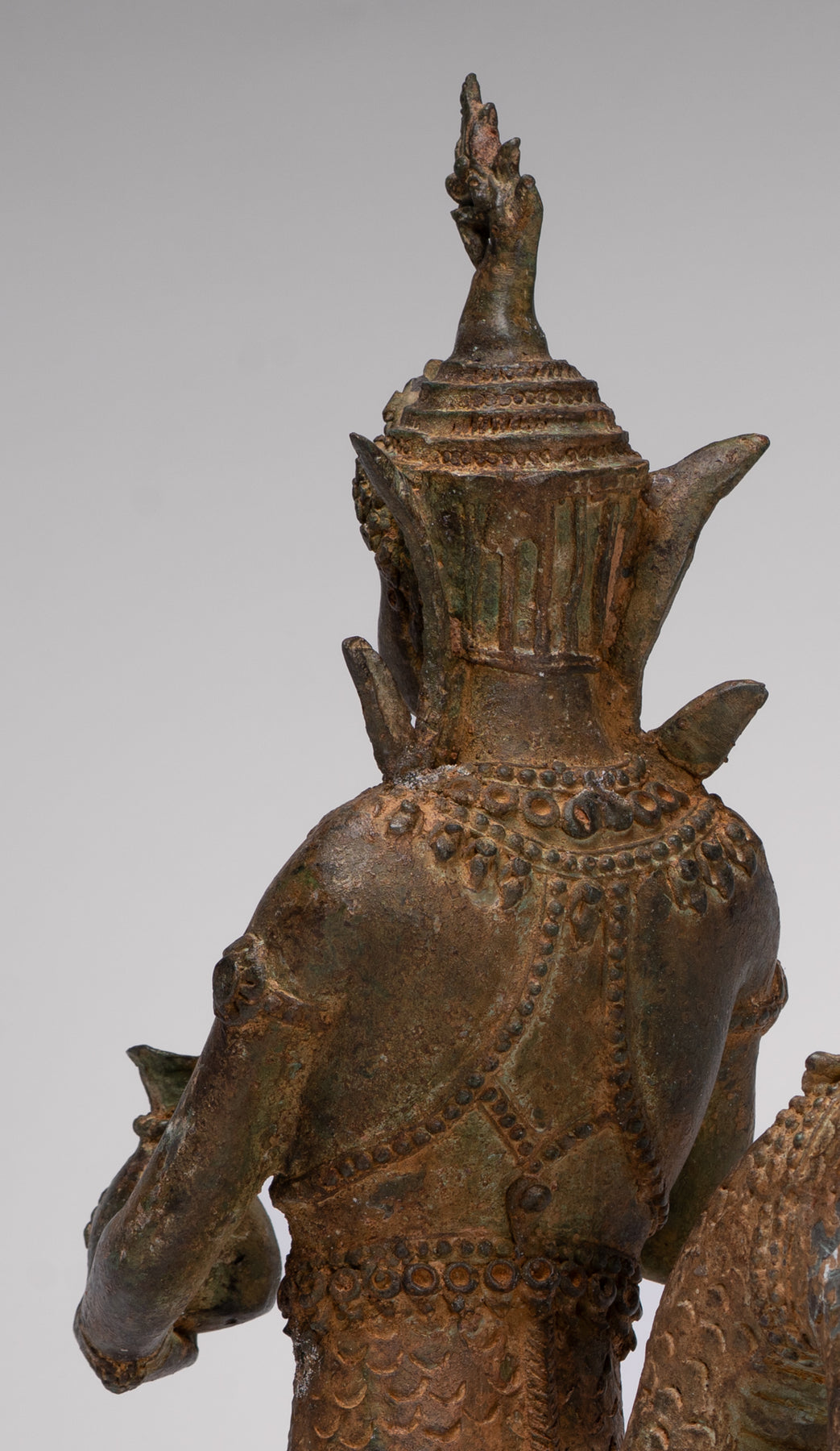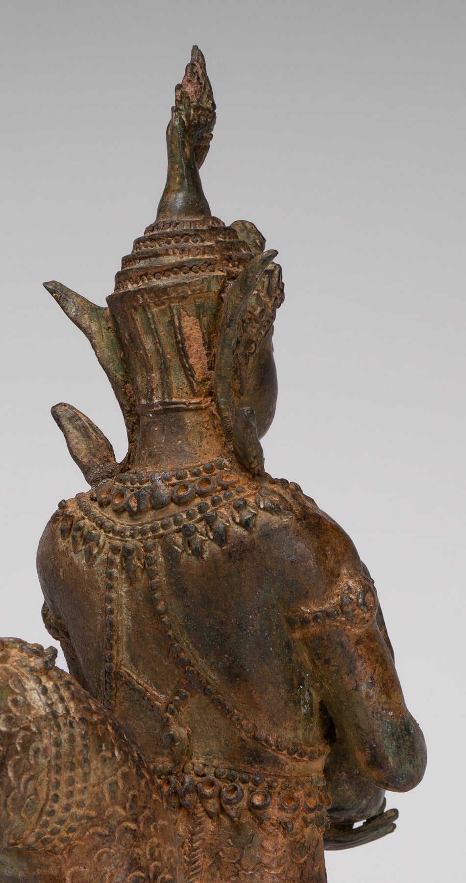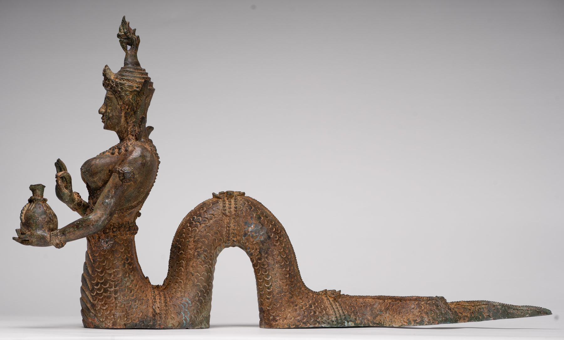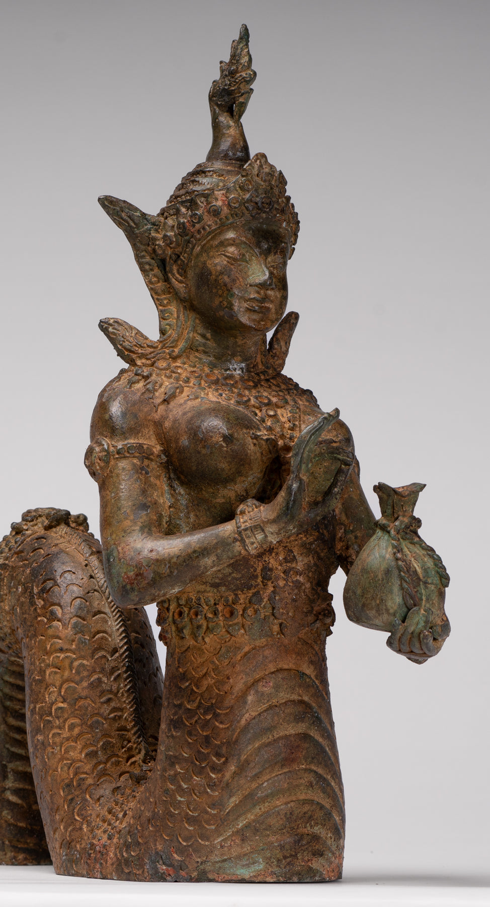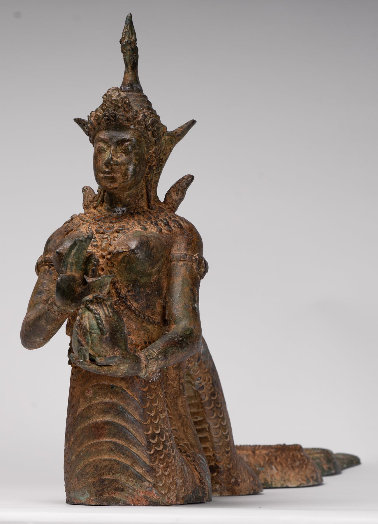 Divinità femminile in bronzo antico in stile tailandese con statua di coda Naga - 41 cm/16 "