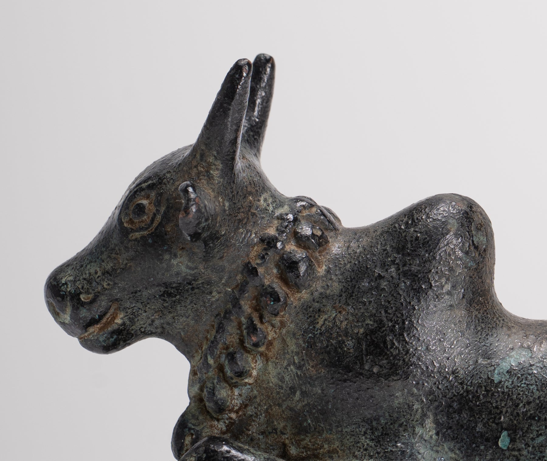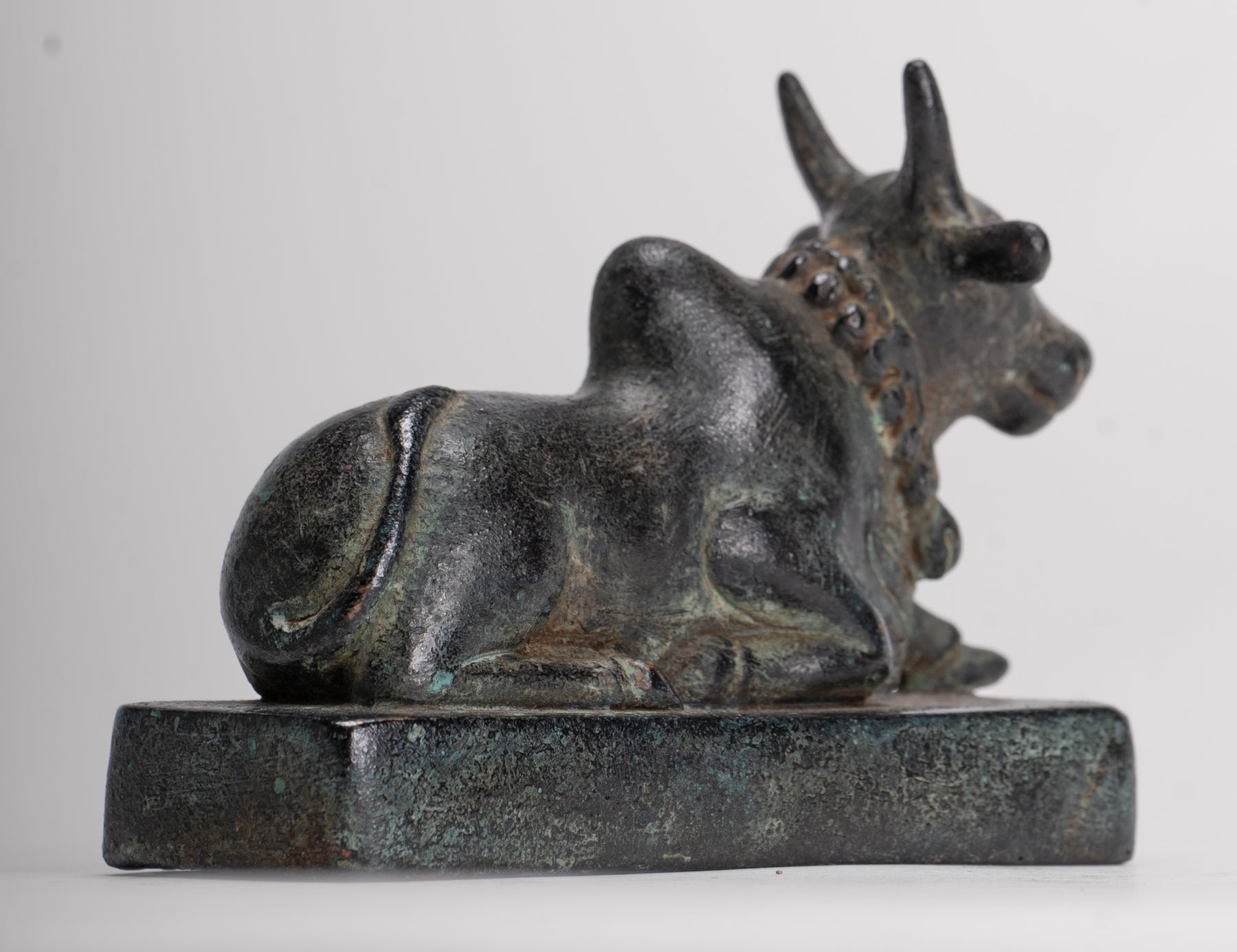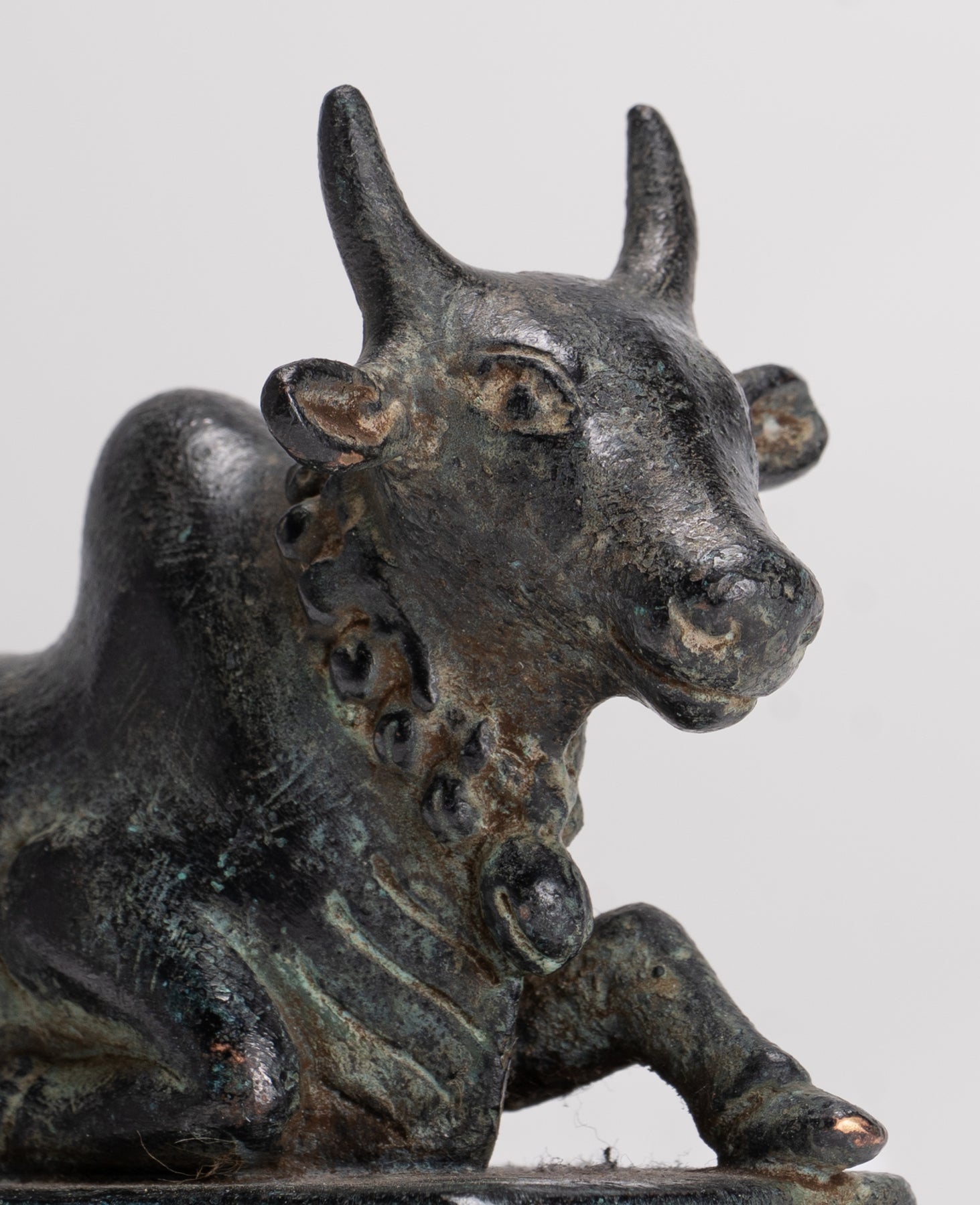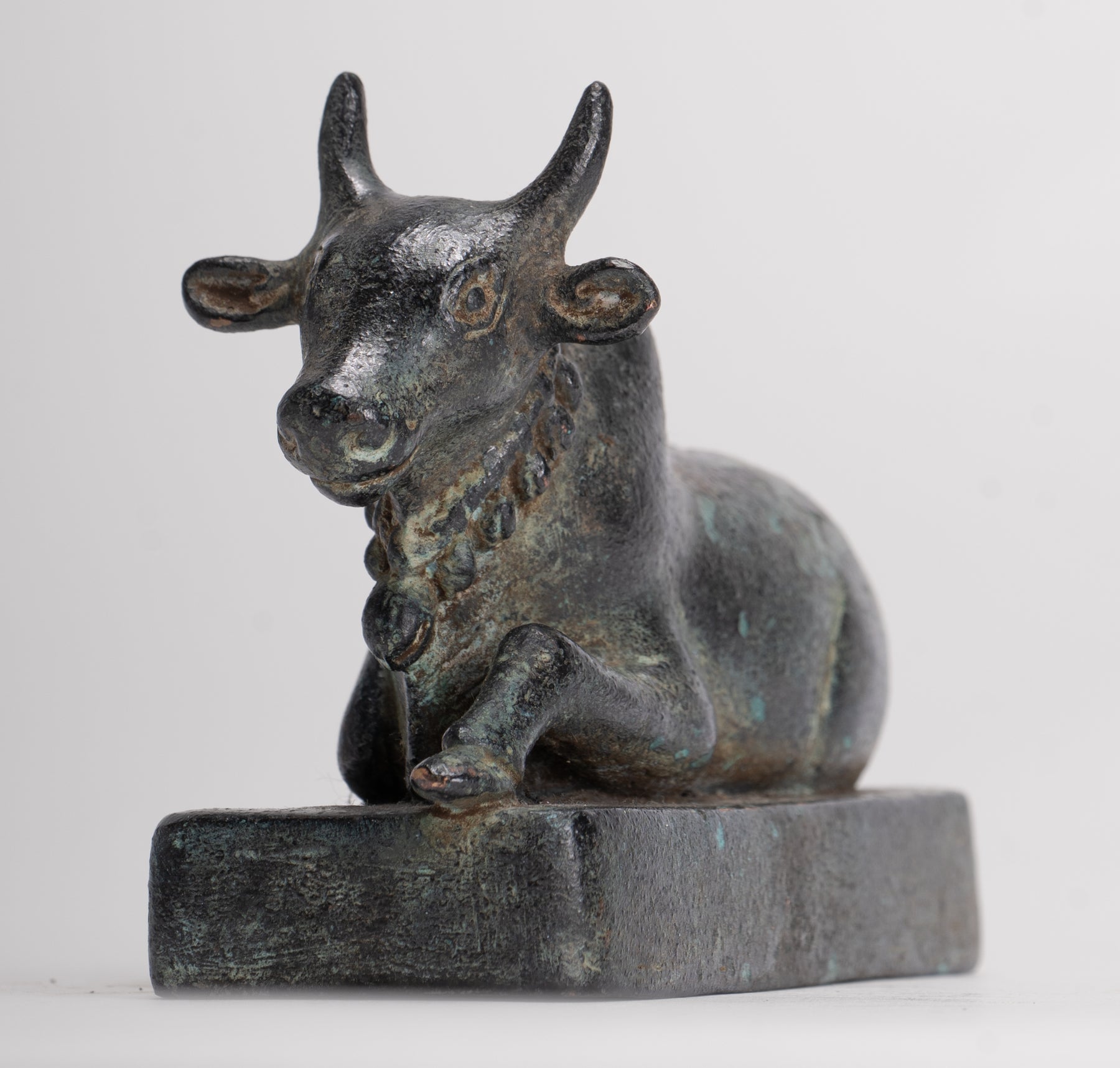 Antique Khmer Style Bronze Nandi Statue - Mount of Shiva - 10cm/4" Long