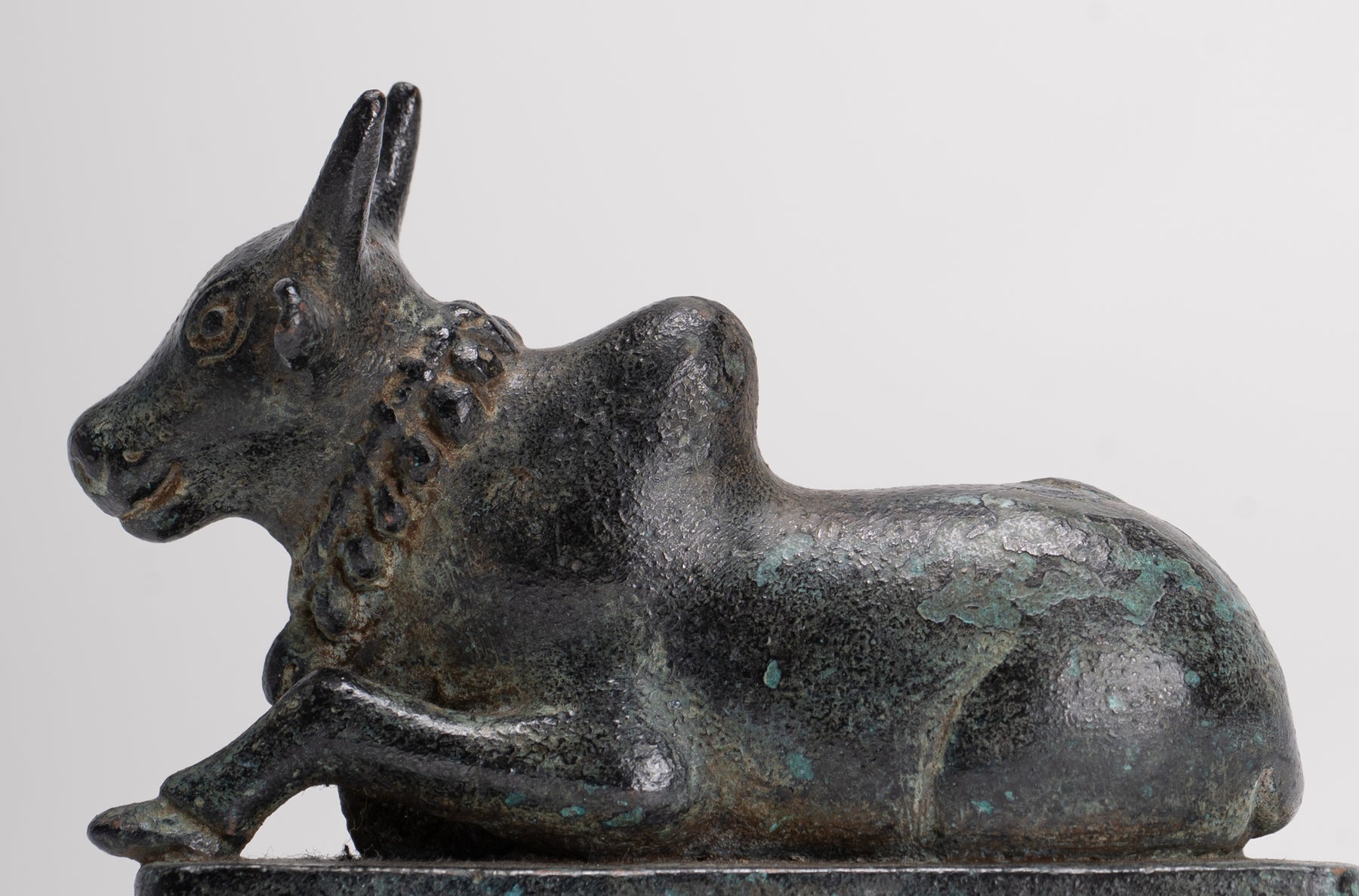 Statua Nandi in bronzo antico in stile Khmer - Monte di Shiva - 10 cm di lunghezza