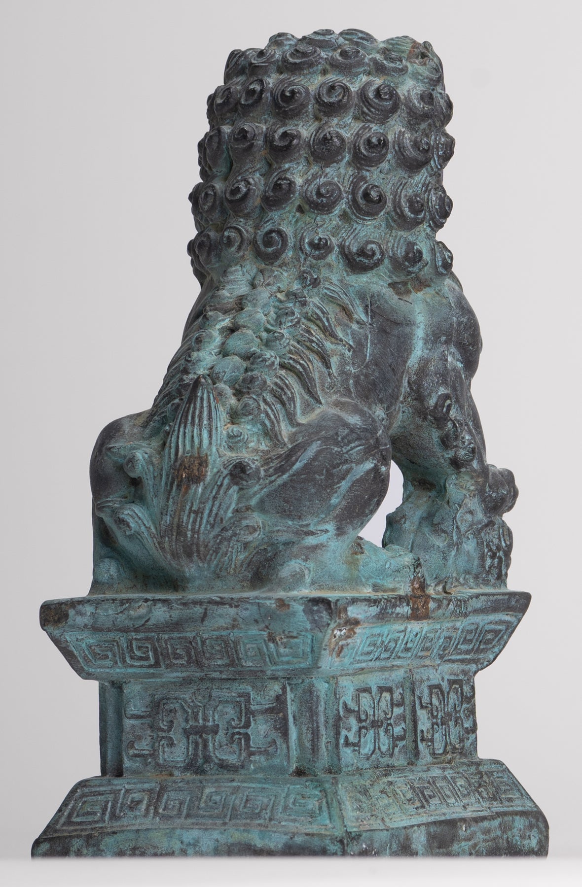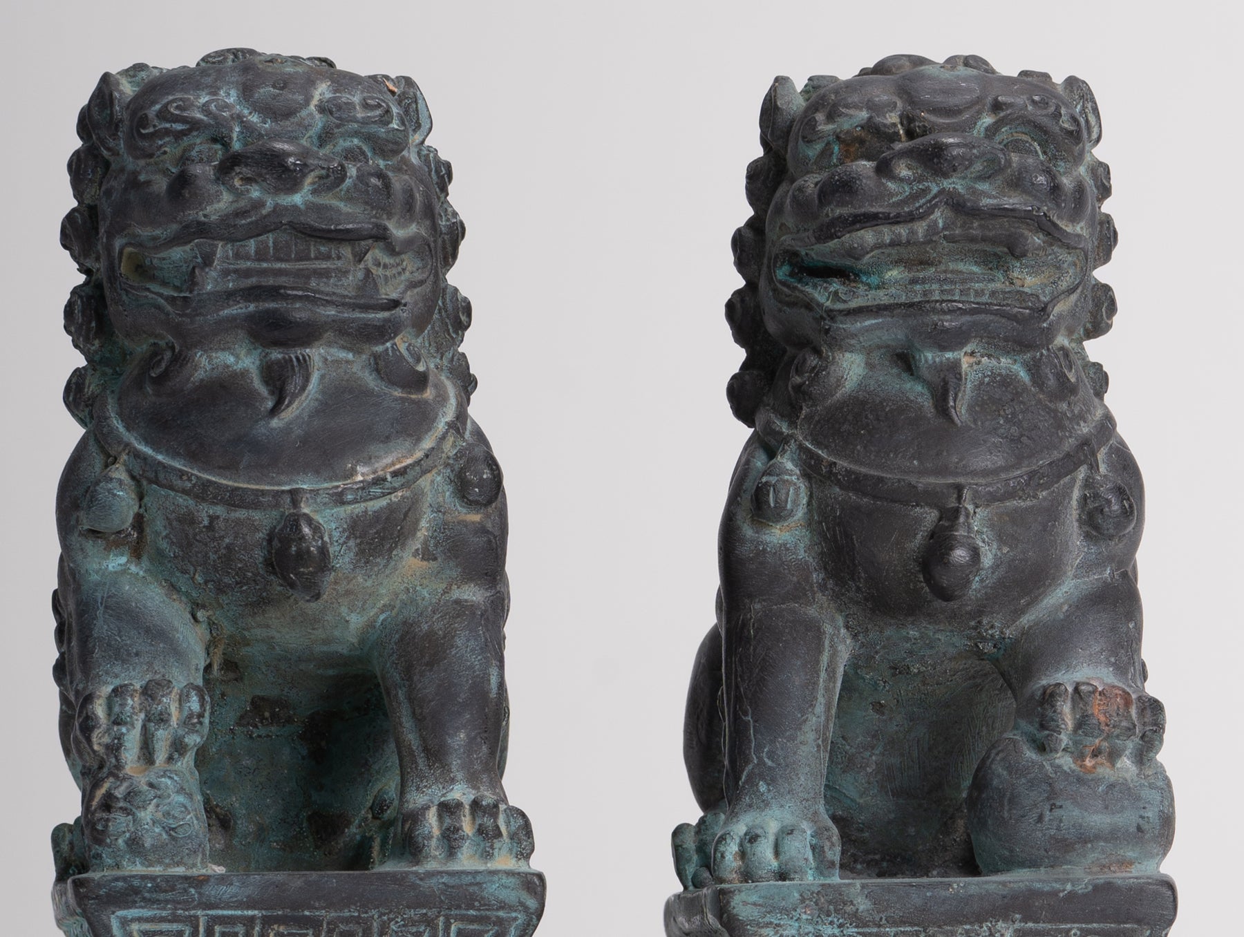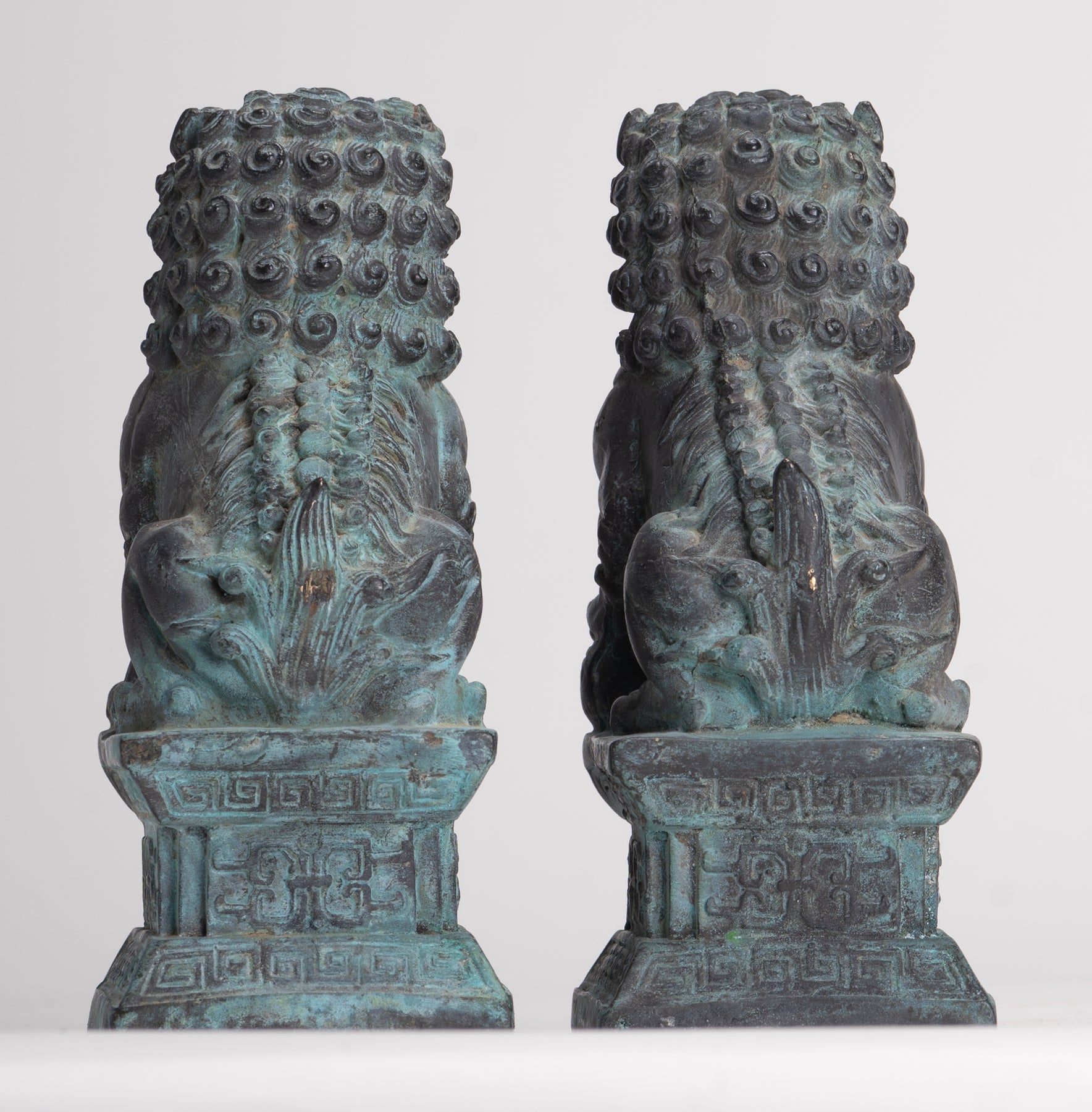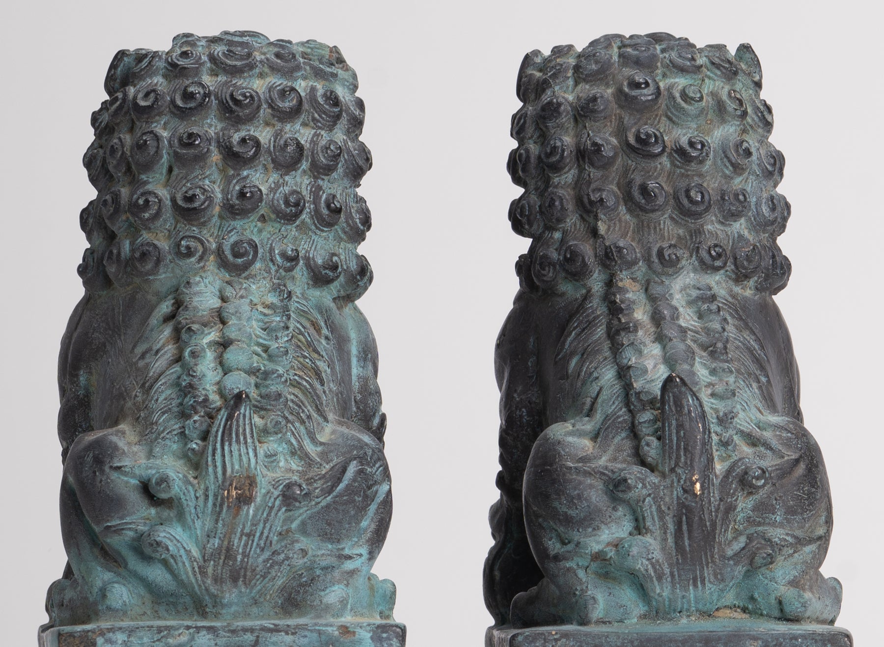 Antico stile cinese Bronzo Leoni guardiani del tempio Foo Dogs Leoni imperiali (coppia) - 17 cm/7"