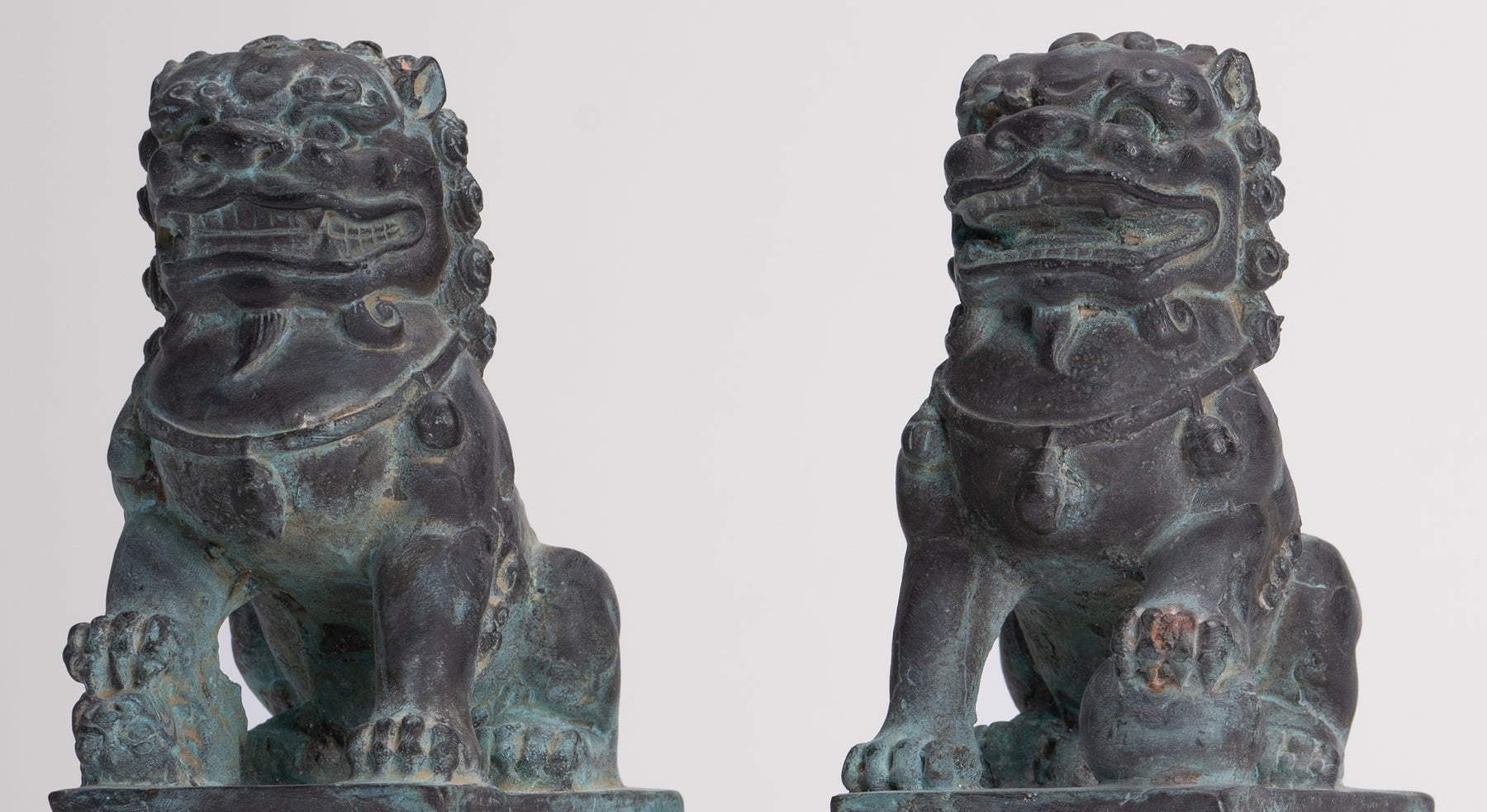 Dall'introduzione del simbolismo del leone dalla cultura indiana, in particolare attraverso il simbolismo buddista, le statue dei leoni guardiani sono state tradizionalmente collocate di fronte ai palazzi imperiali cinesi, alle tombe imperiali, agli uffici governativi, ai templi e alle case di funzionari governativi e di ricchi, e si ritiene che abbiano potenti benefici protettivi.