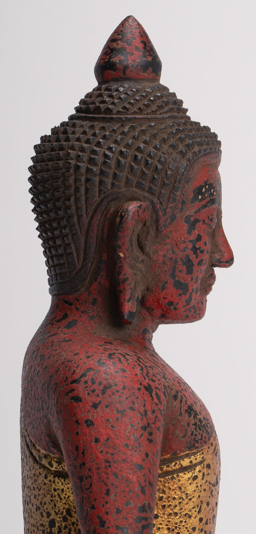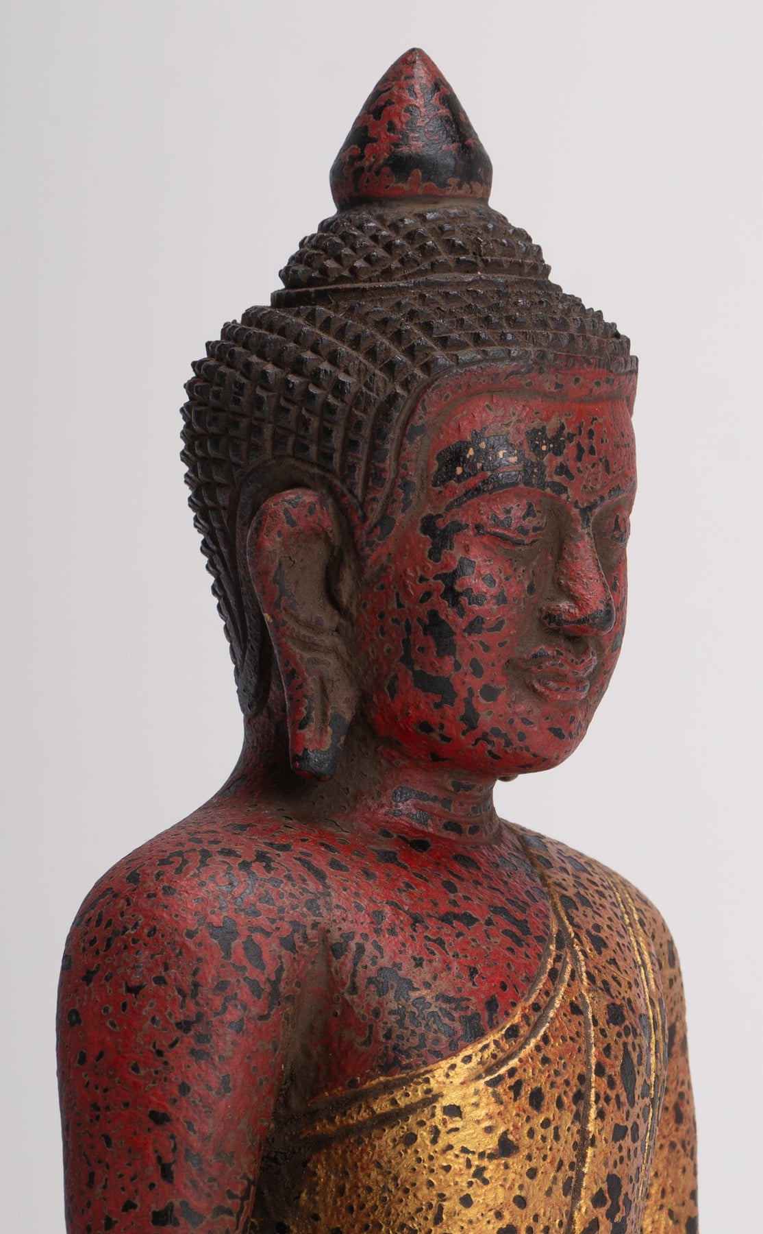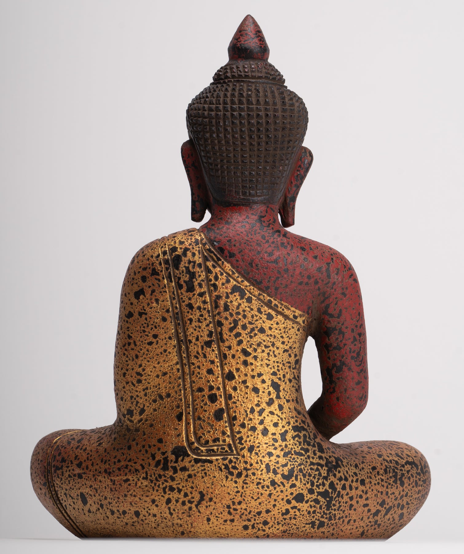 Statua di Buddha in legno stile antico Khmer Dhyana Meditazione Mudra 26 cm/11"