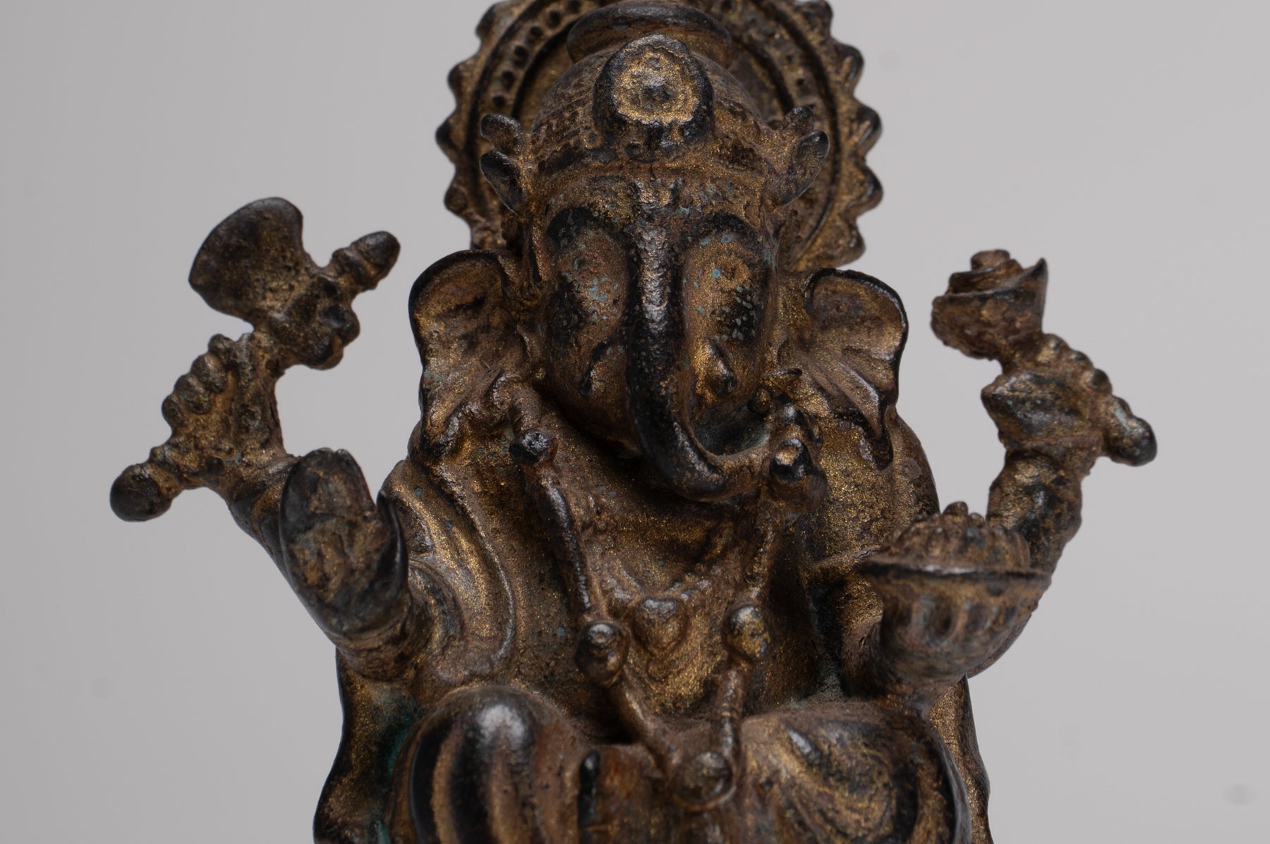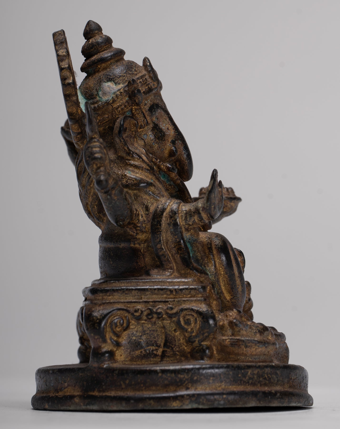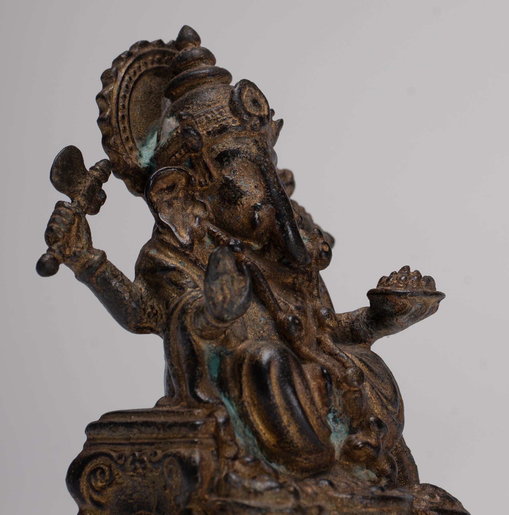 Ganesha Statue - Antique Thai Style Seated Bronze Ganesh Statue - 10cm/4"