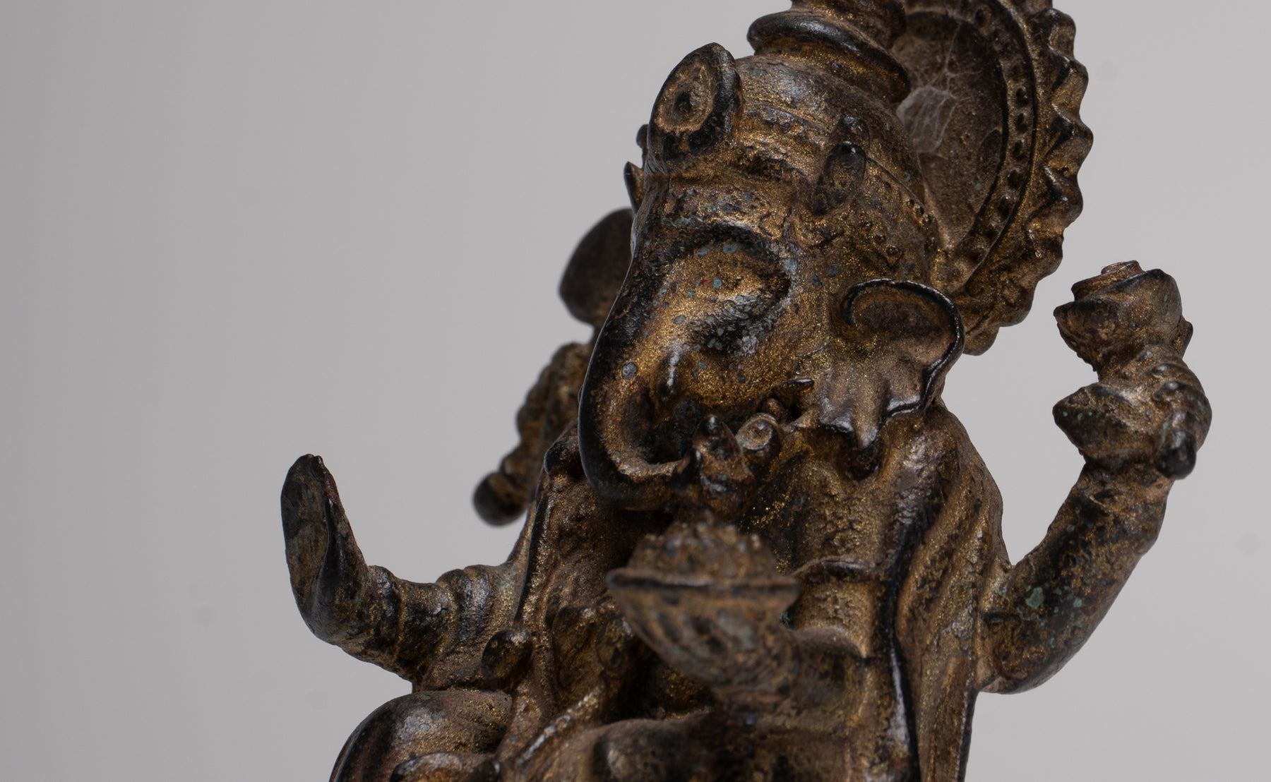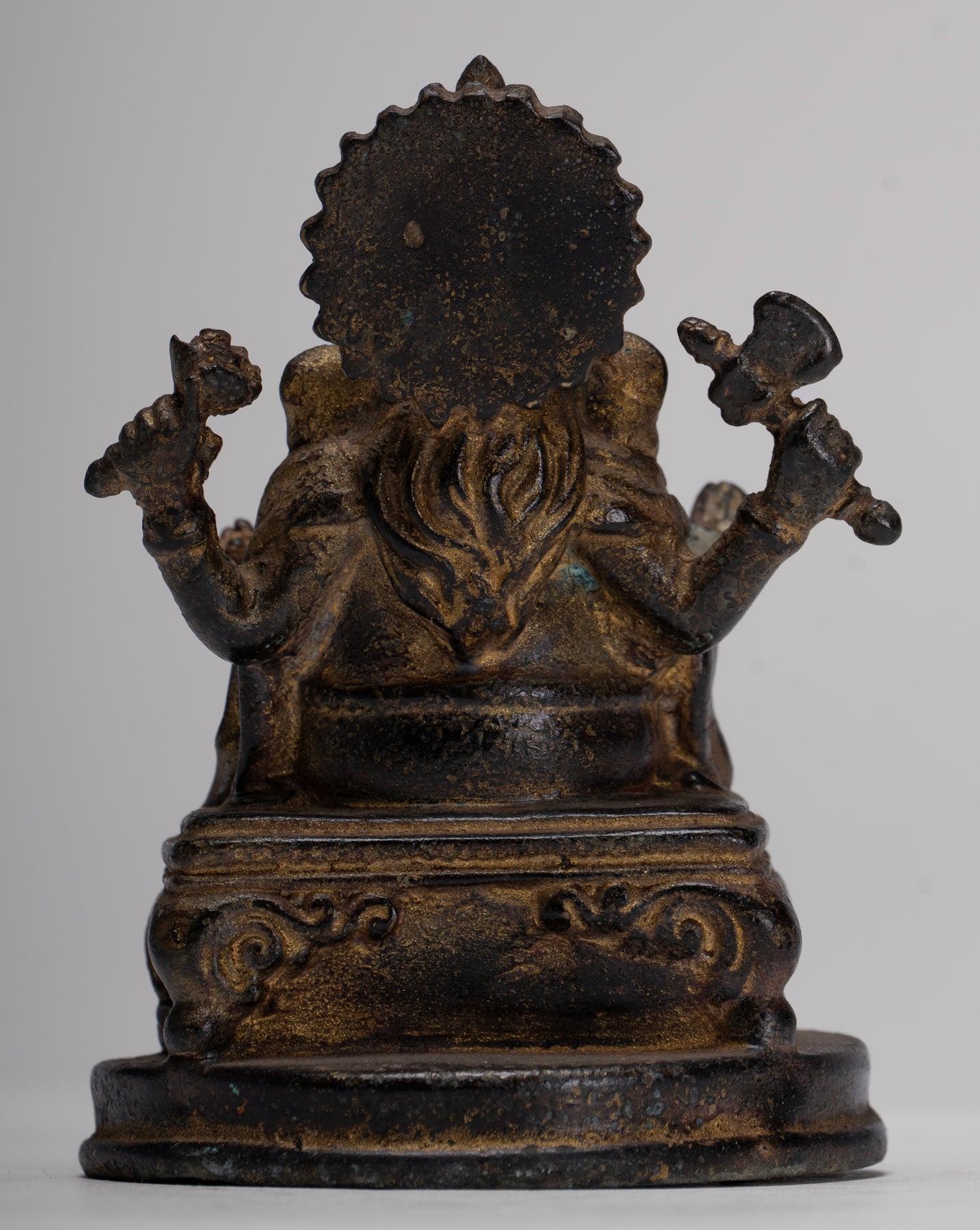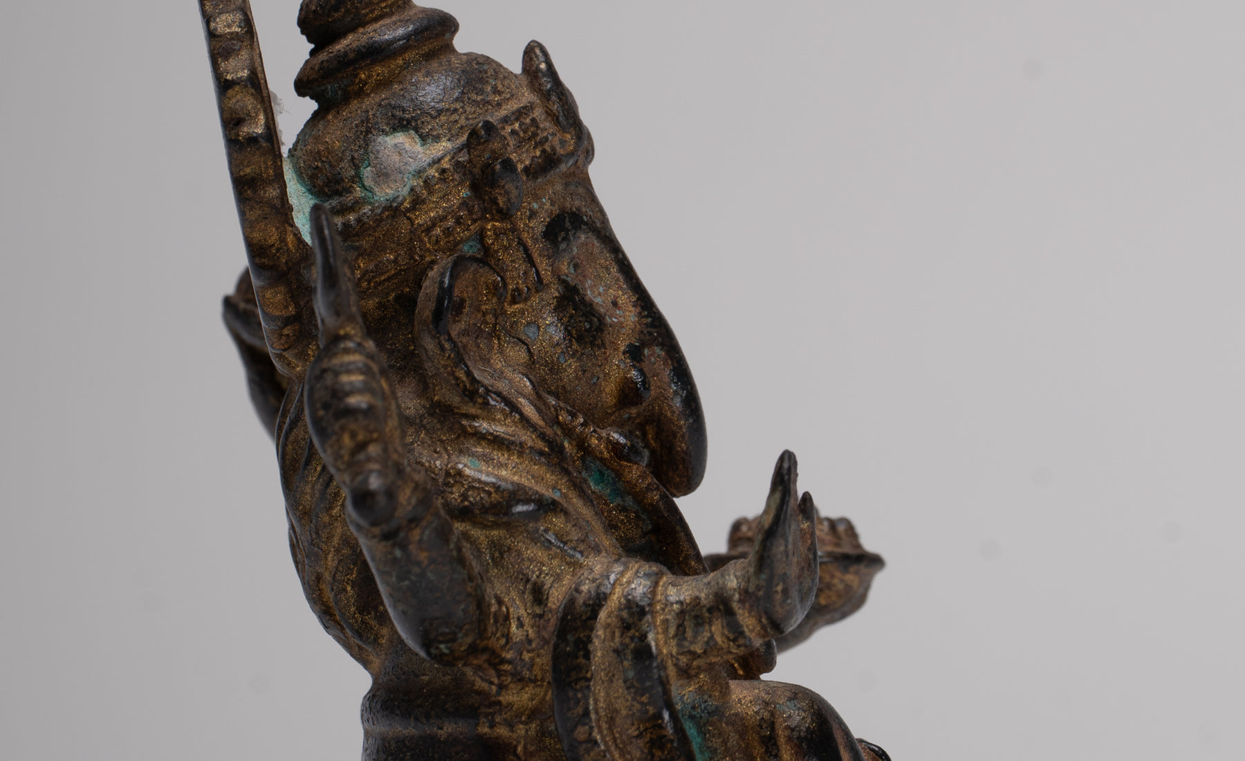 Ganesha Statue - Antique Thai Style Seated Bronze Ganesh Statue - 10cm/4"