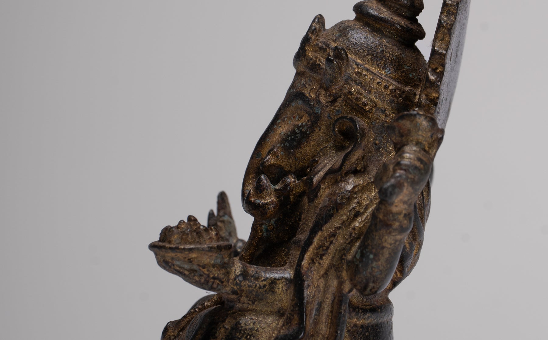 Questo scultura thailandese seduta è una rappresentazione senza tempo di forza divina, saggezza e abbondanza. Sia usato per Adorazione, connessione spirituale o come simbolo decorativo di buona fortuna, questo pezzo irradia un'aura di energia di buon auspicio e bellezza sacra.