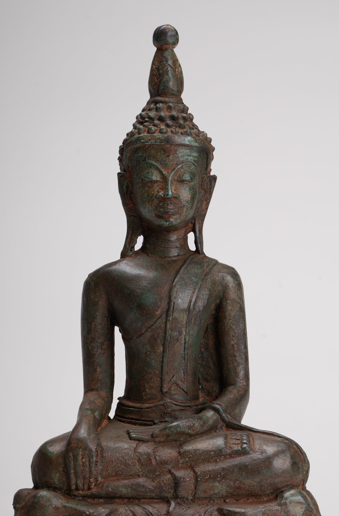 Buddha Statue - Antique Laos Style Bronze Enlightenment Buddha Statue - 29cm/12"