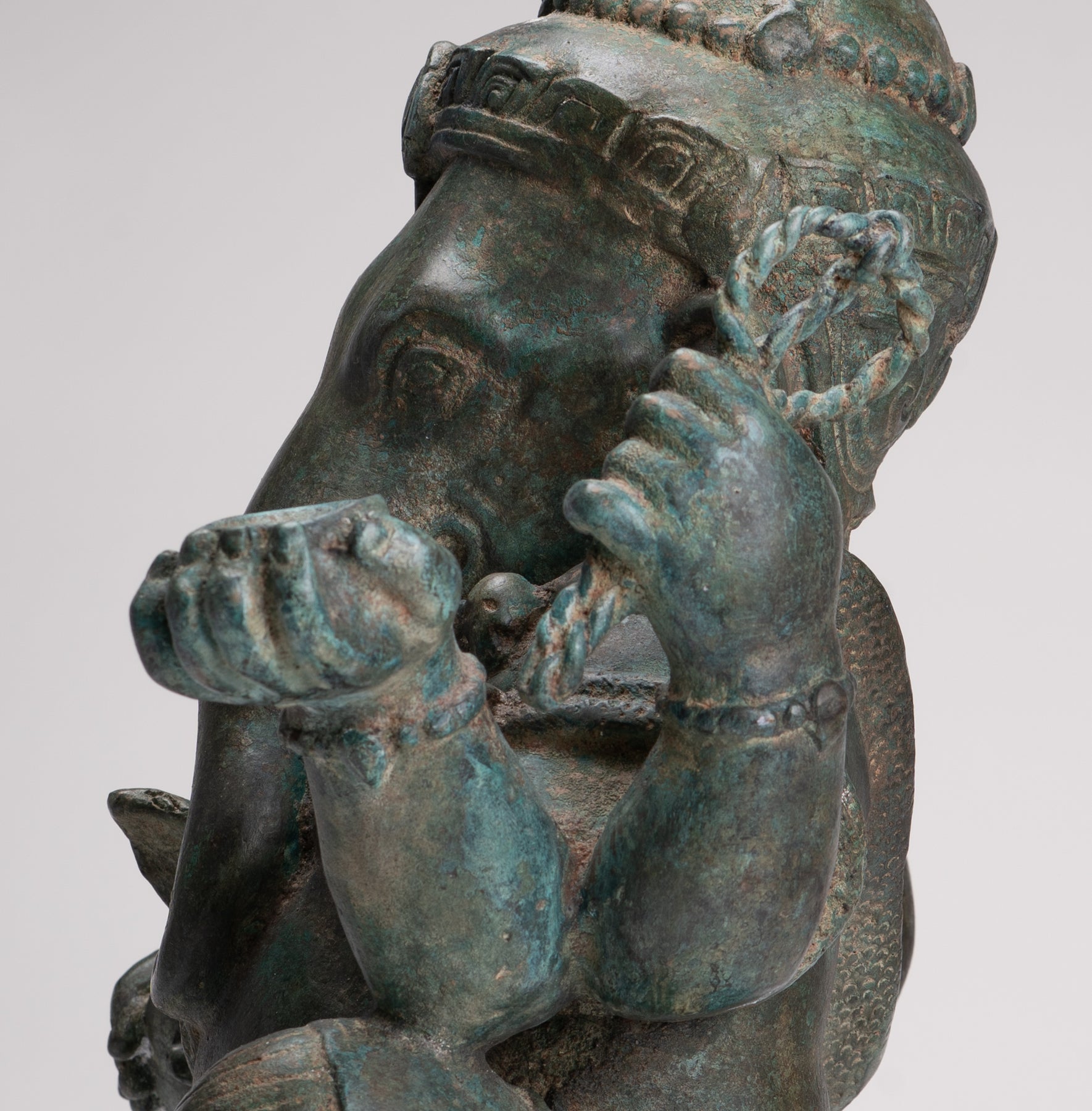 Statua di Ganesha - Bronzo in stile tailandese antico seduto a 4 bracci ganesha statua - 45 cm/18 "