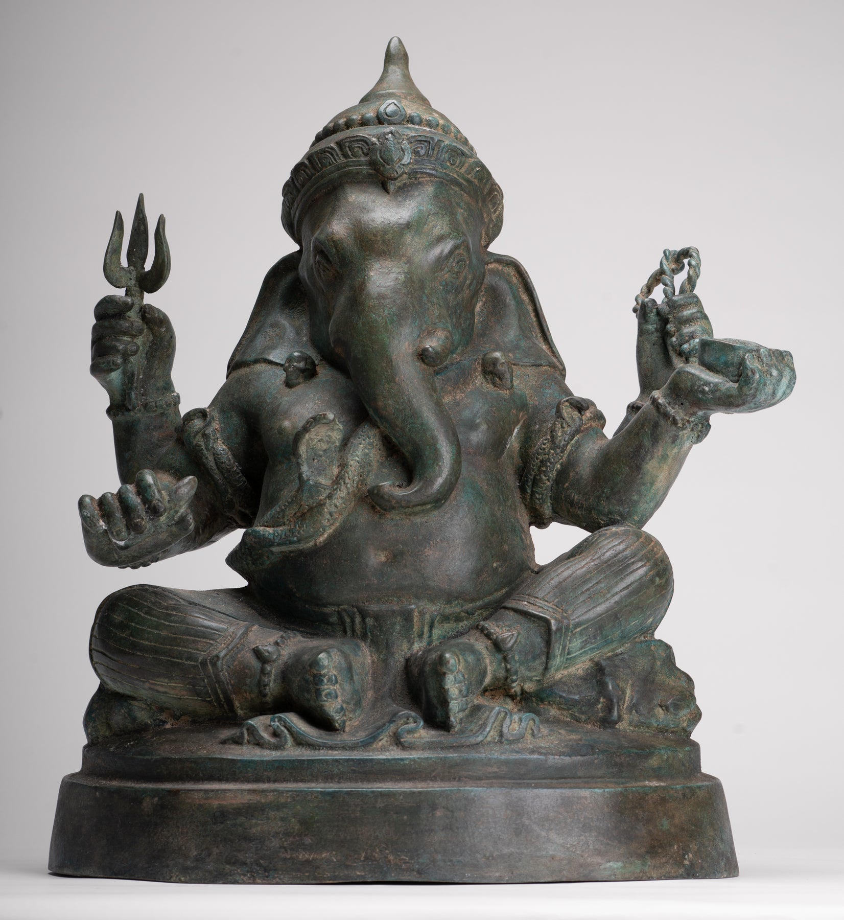 Ganesha Statue - Antique Thai Style Bronze Seated 4-Arm Ganesha Statue - 45cm/18"