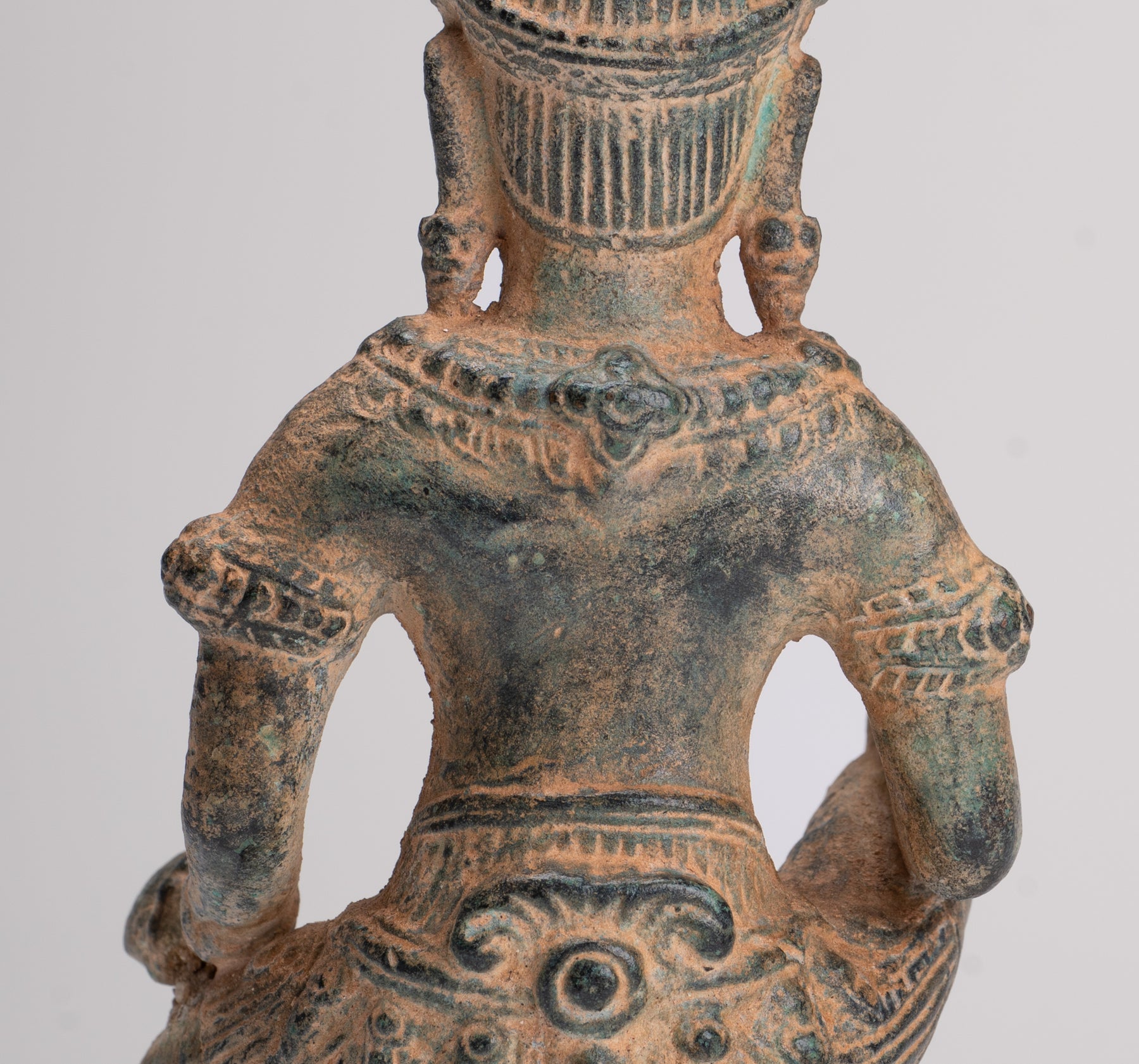 Statua di Vishnu - Statua di Vishnu Khmer seduto in bronzo in stile Baphuon antico - 18 cm / 7"