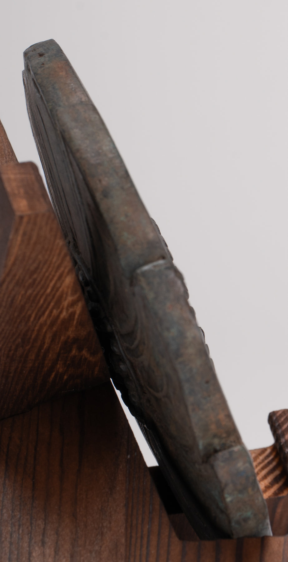 Il chakra è montato su una base di legno (in seguito) e può essere facilmente rimosso dal supporto.