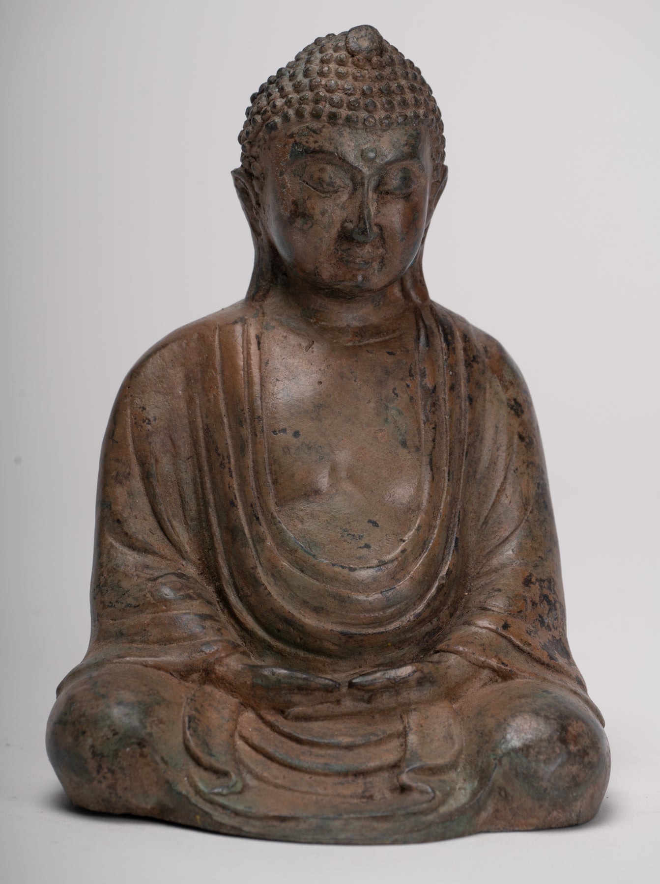 Buddha giapponese - Statua del Buddha Amitabha da meditazione seduto in bronzo antico in stile giapponese - 18 cm/7"