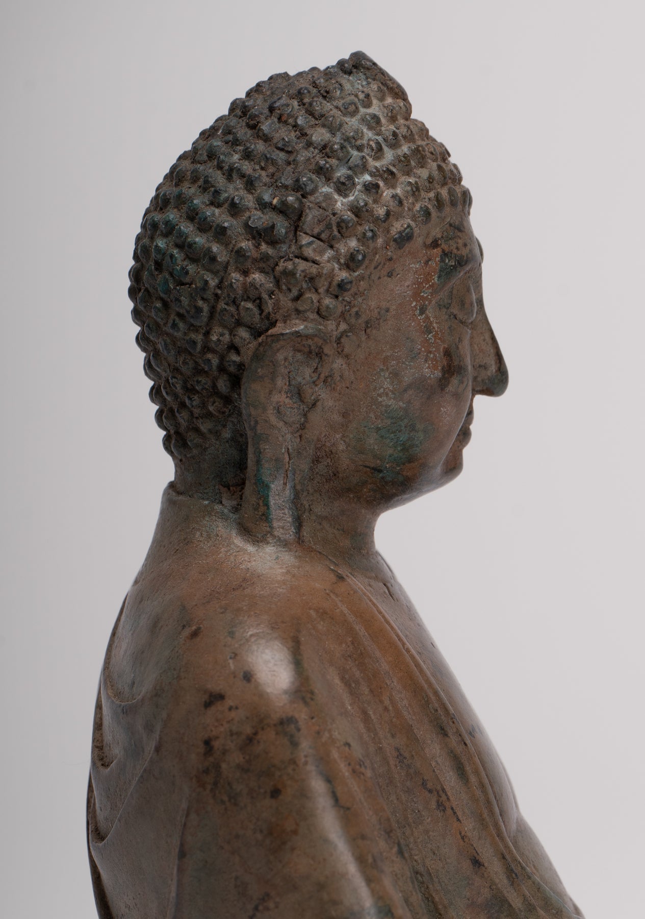 La patina e i dettagli di questo pezzo sono particolarmente attraenti. La scultura fornisce il Buddha perfetto per portare serenità e stile senza tempo nella tua casa, ufficio o spazio sacro.