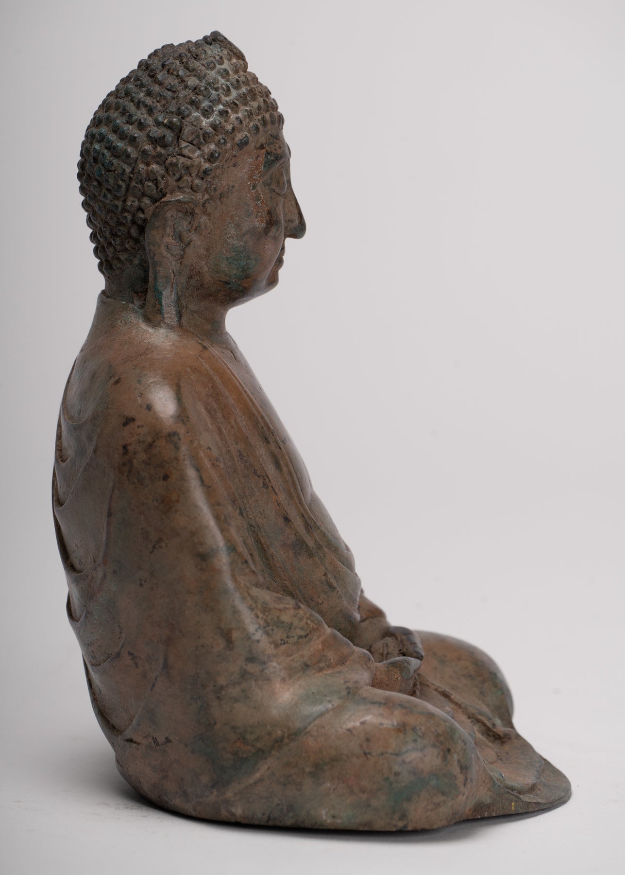 Buddha Sculpture - Antique Thai Style Bronze Seated Sukhothai Meditation Buddha Statue - 15cm/6"