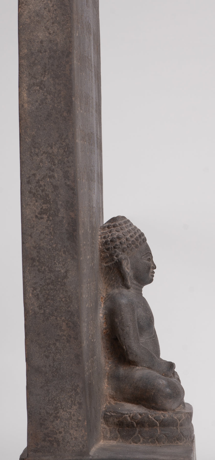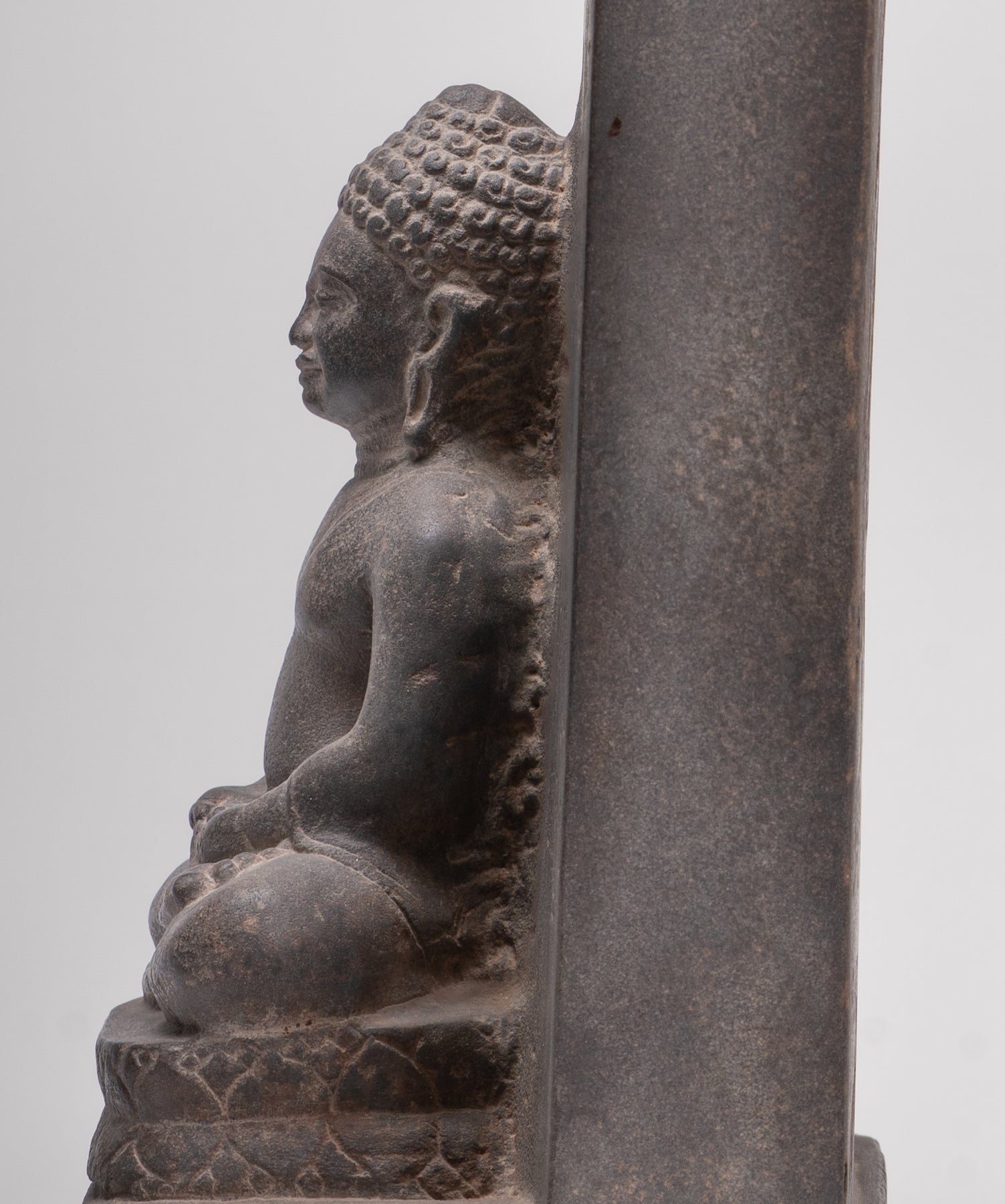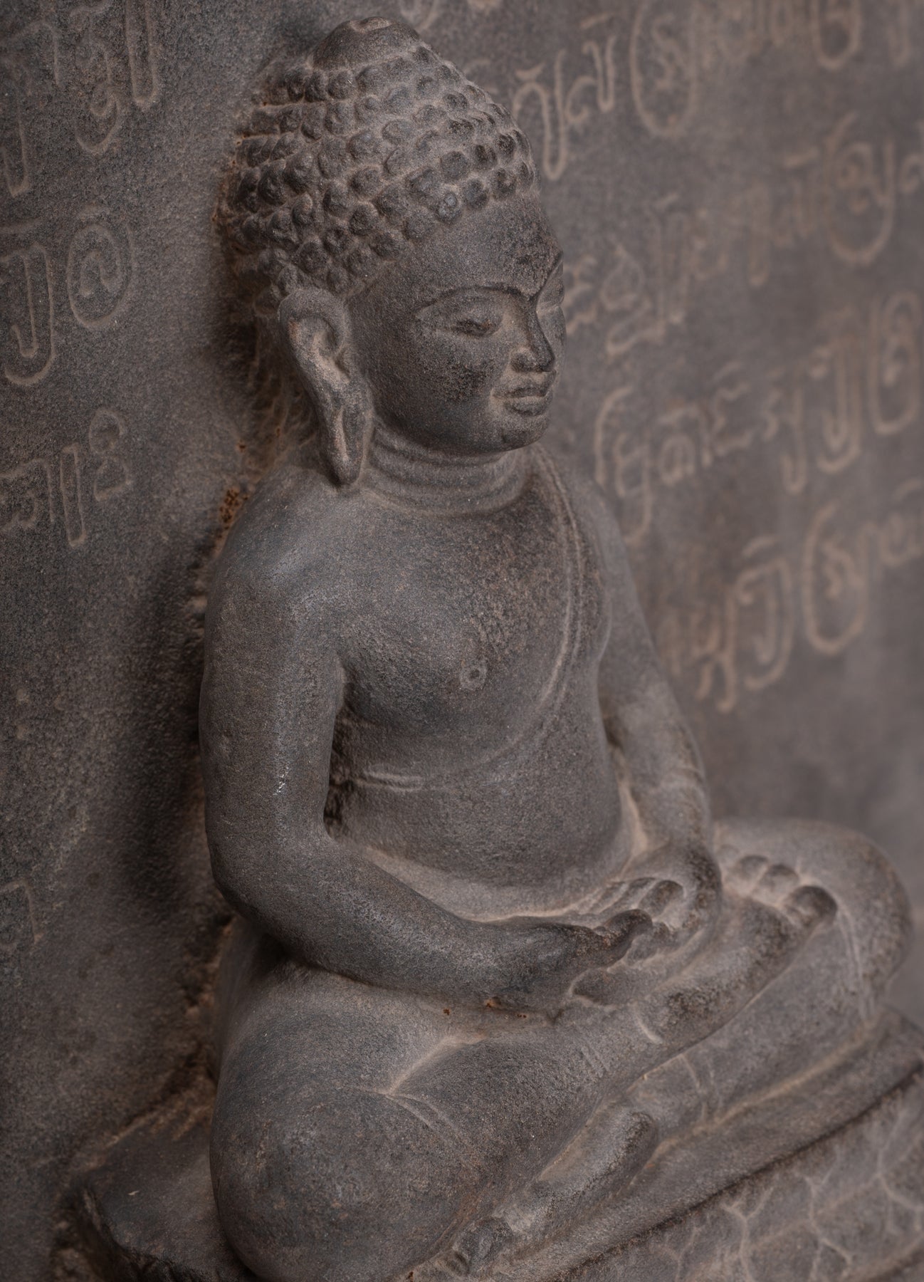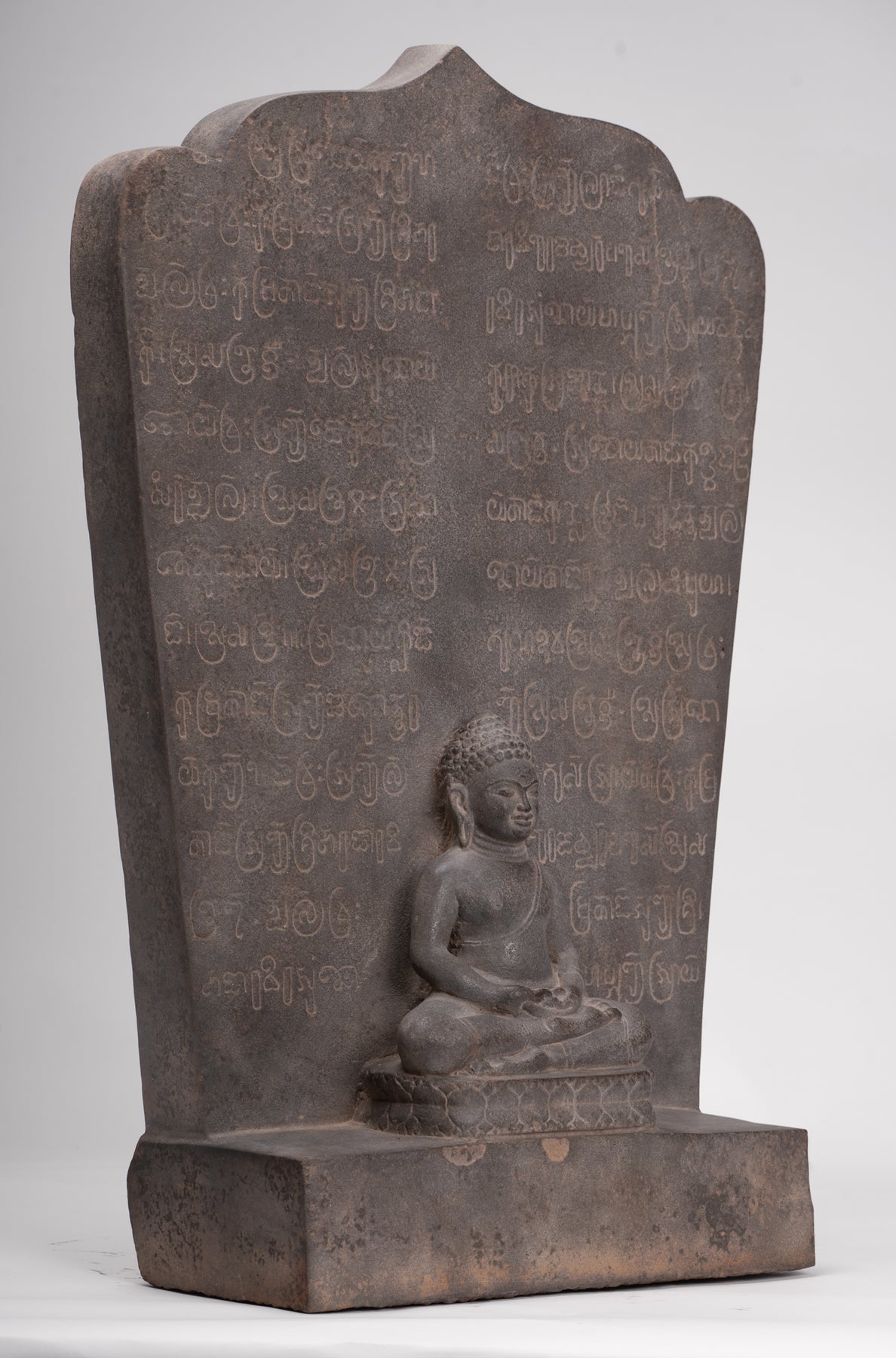 Queste stele non furono mai semplicemente oggetti decorativi. Integrati nel culto quotidiano e nella vita rituale, fornivano punti focali per le offerte, la recitazione e la meditazione, favorendo un'atmosfera condivisa di riverenza e devozione comunitaria. L'iscrizione in sanscrito che circonda il Buddha seduto su questa stele sottolinea la sua duplice funzione sia di immagine sacra che di testimonianza testuale, mentre un ulteriore testo sanscrito sul retro ne arricchisce il significato storico e religioso.
