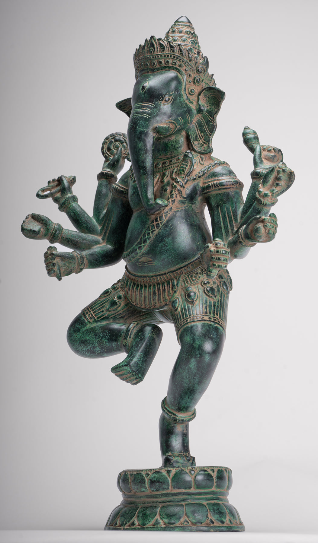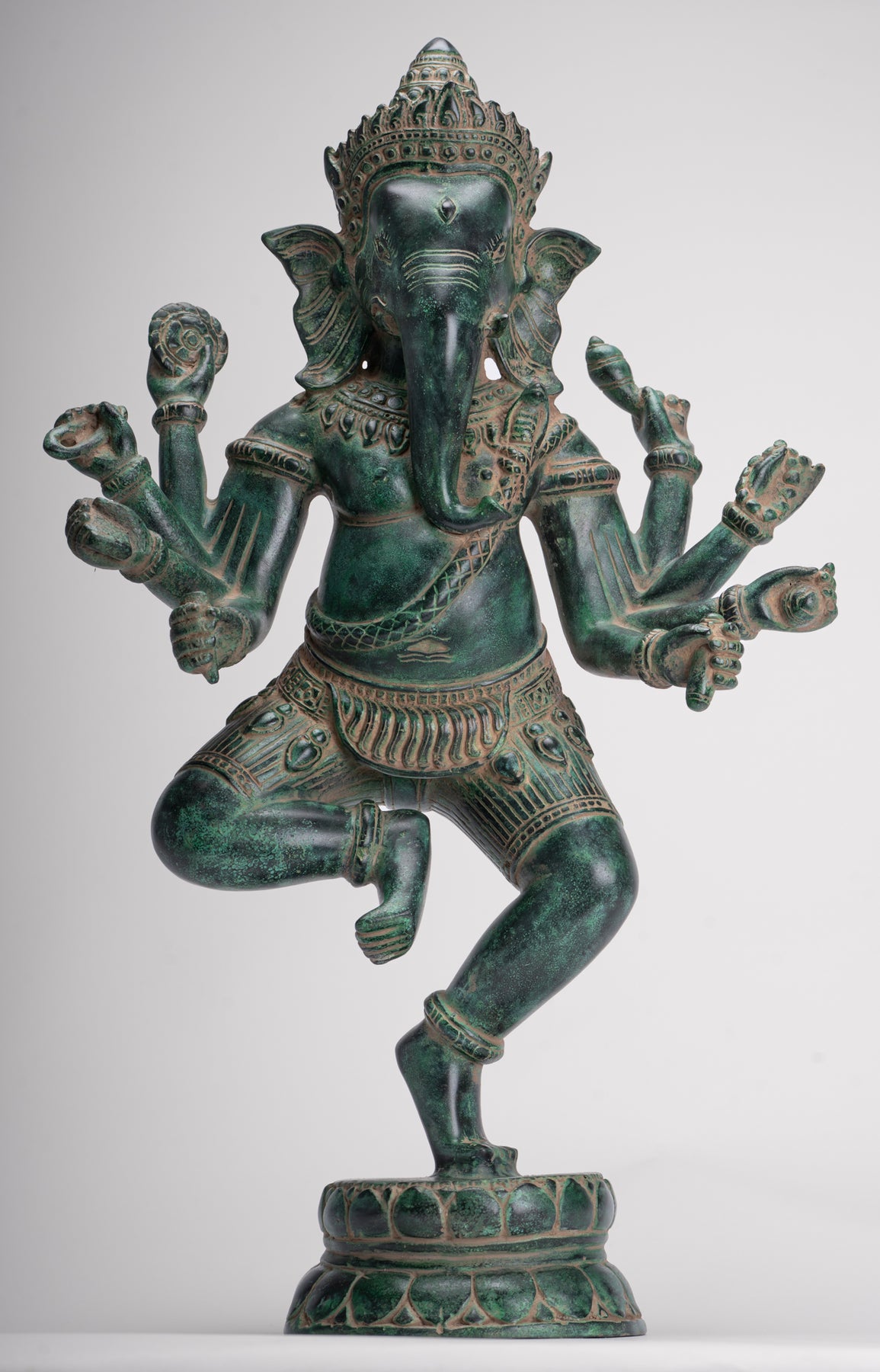 Statua antica di Ganesha danzante in bronzo in stile Khmer - 50 cm/20"