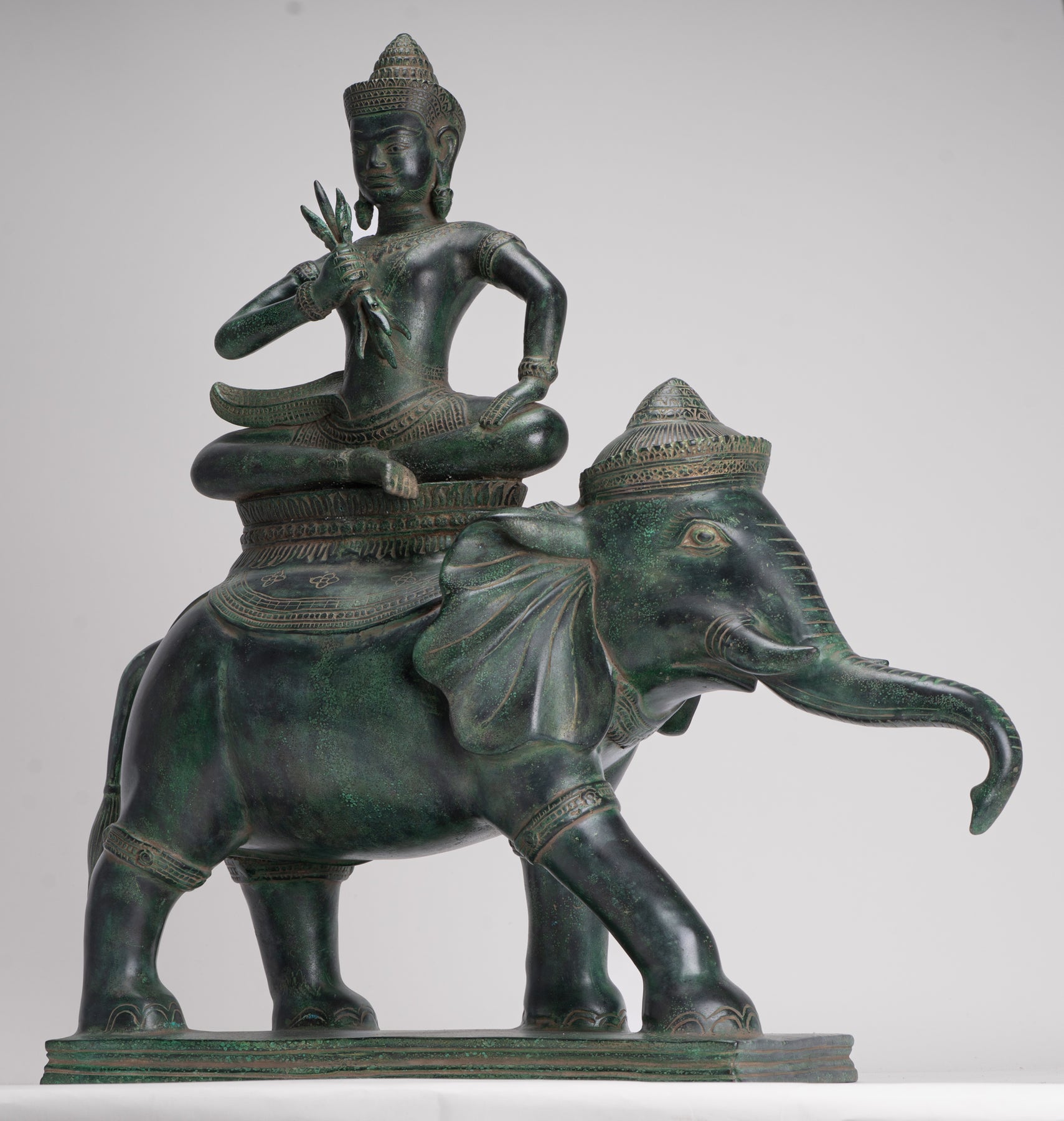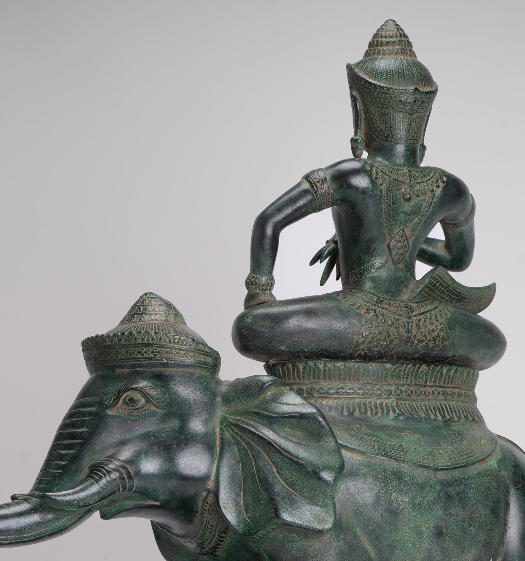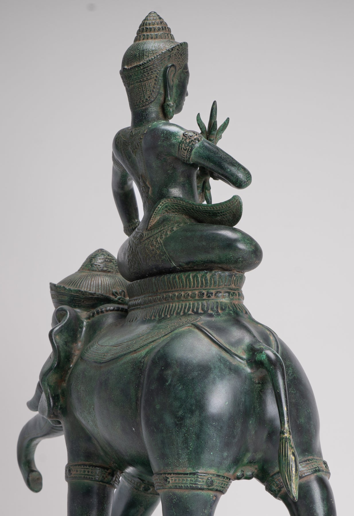 Statua di Indra - Statua Erawan Airavata in bronzo antico in stile Khmer con Indra - 59 cm/24"