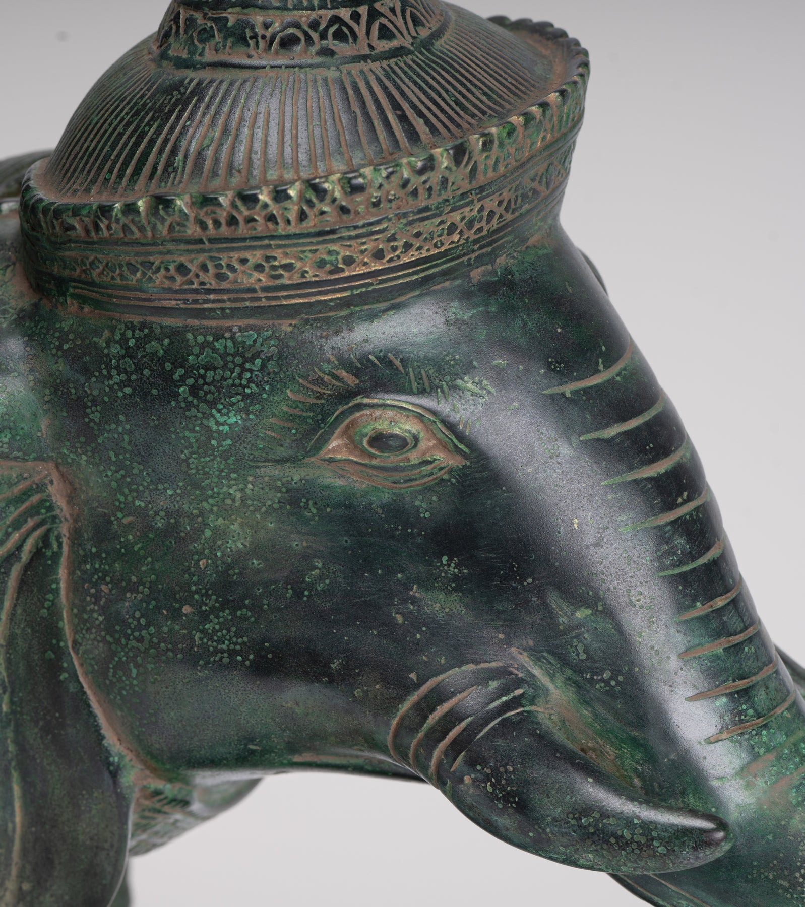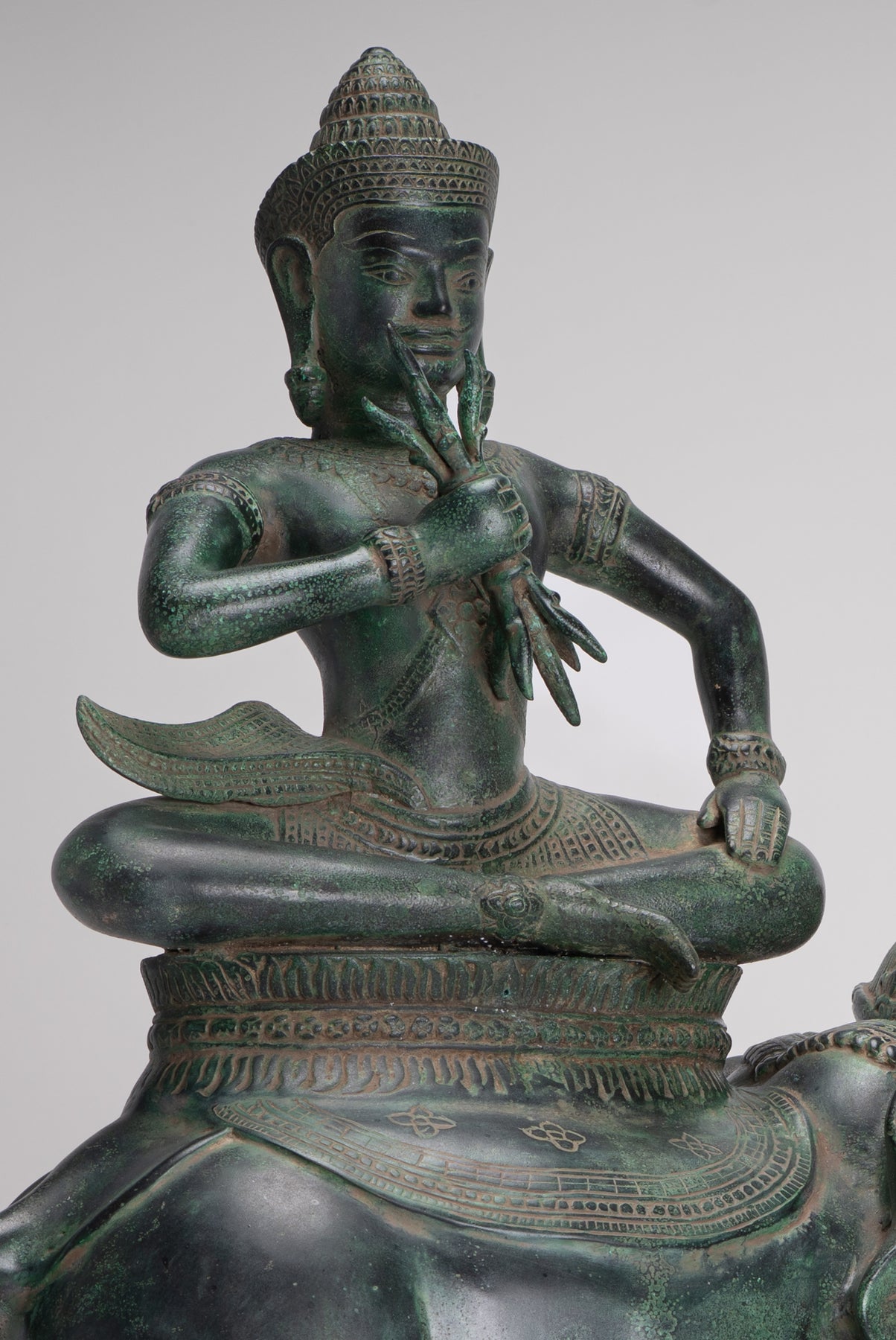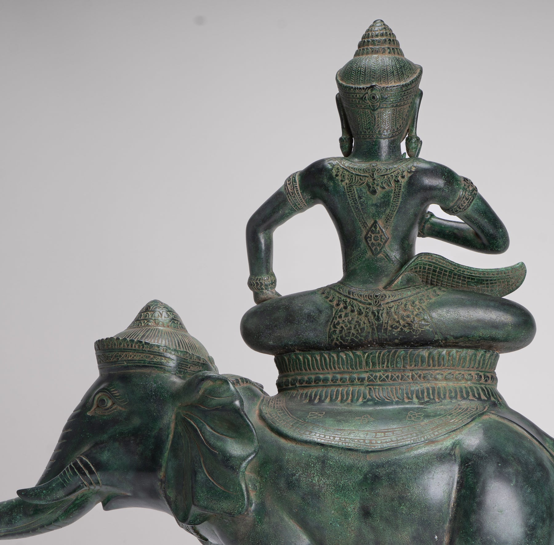 Statua di Indra - Statua Erawan Airavata in bronzo antico in stile Khmer con Indra - 59 cm/24"