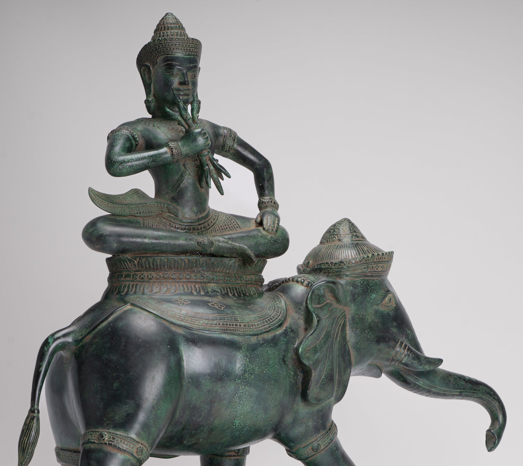Indra Statue - Antique Khmer Style Bronze Erawan Airavata Statue with Indra - 59cm/24"