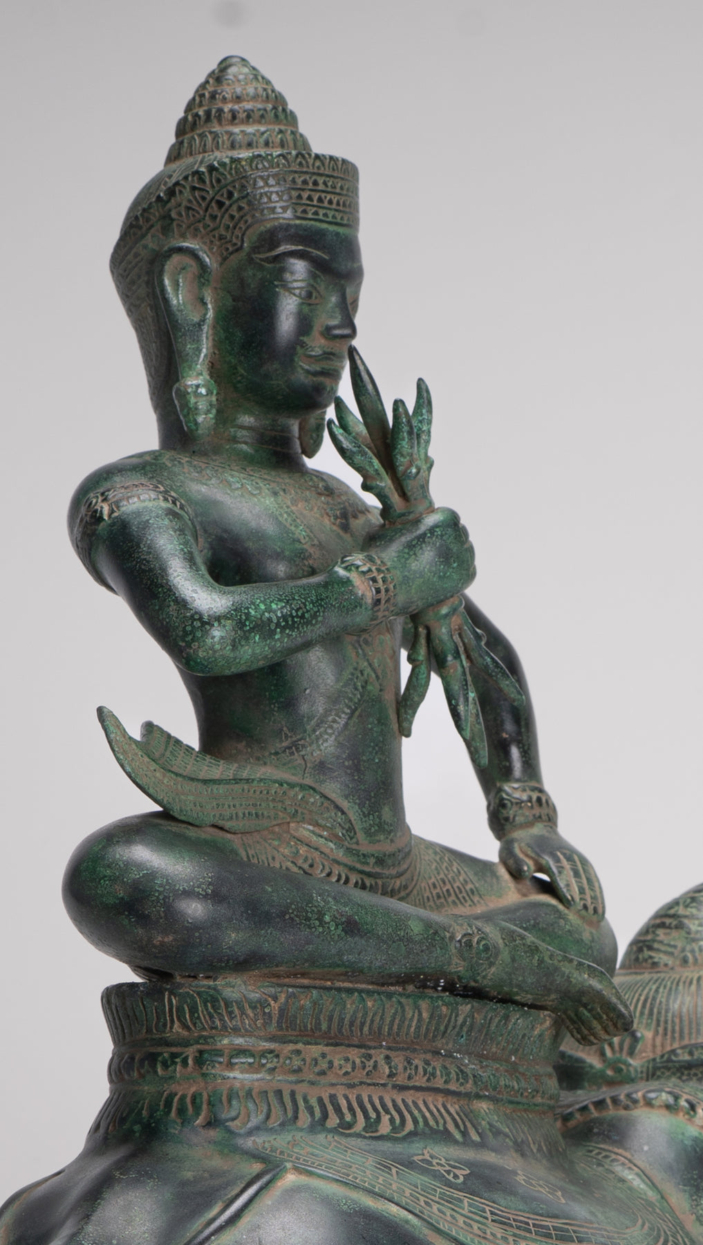 • Statua di Indra - Statua Erawan Airavata in bronzo antico in stile Khmer con Indra - 59 cm/24"