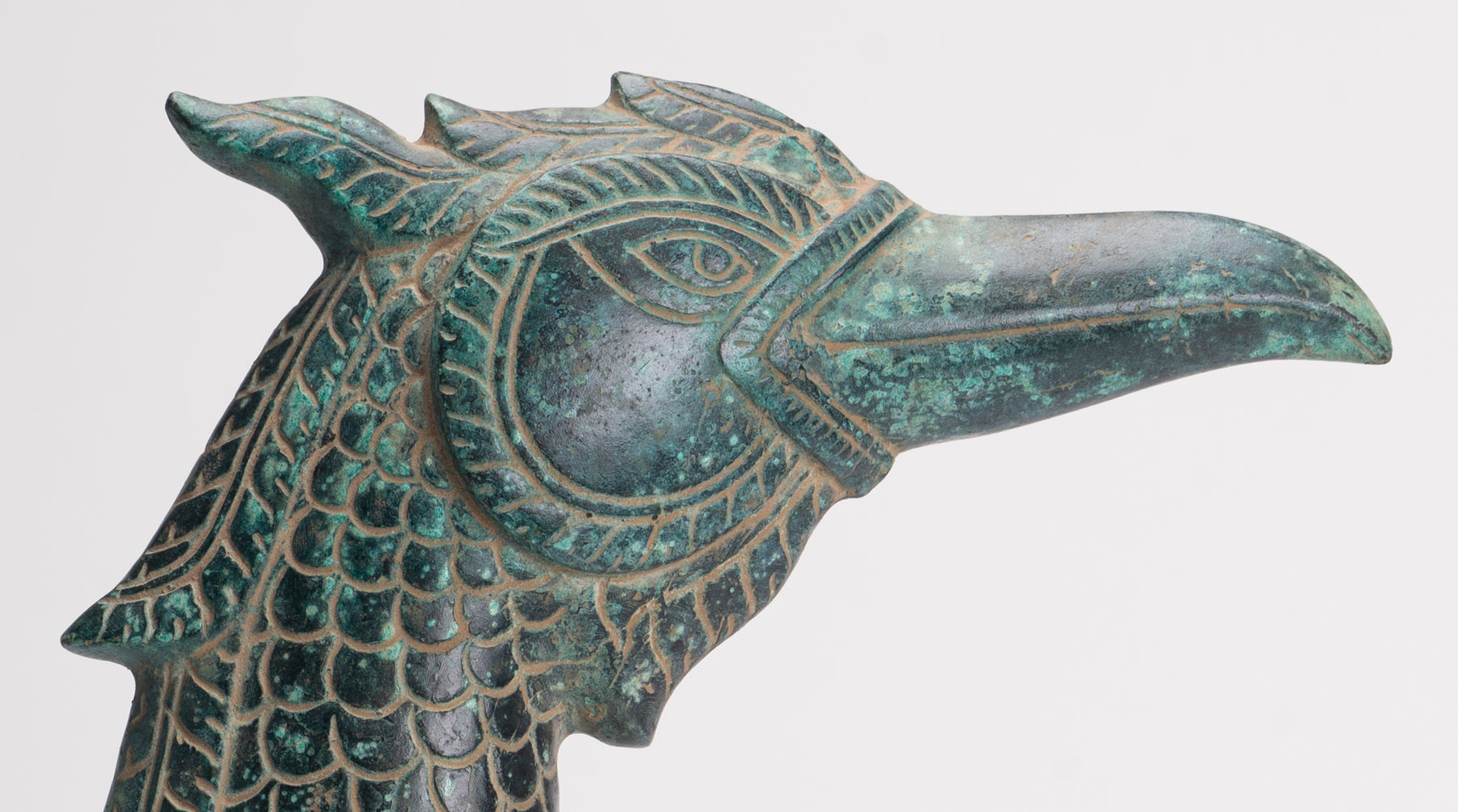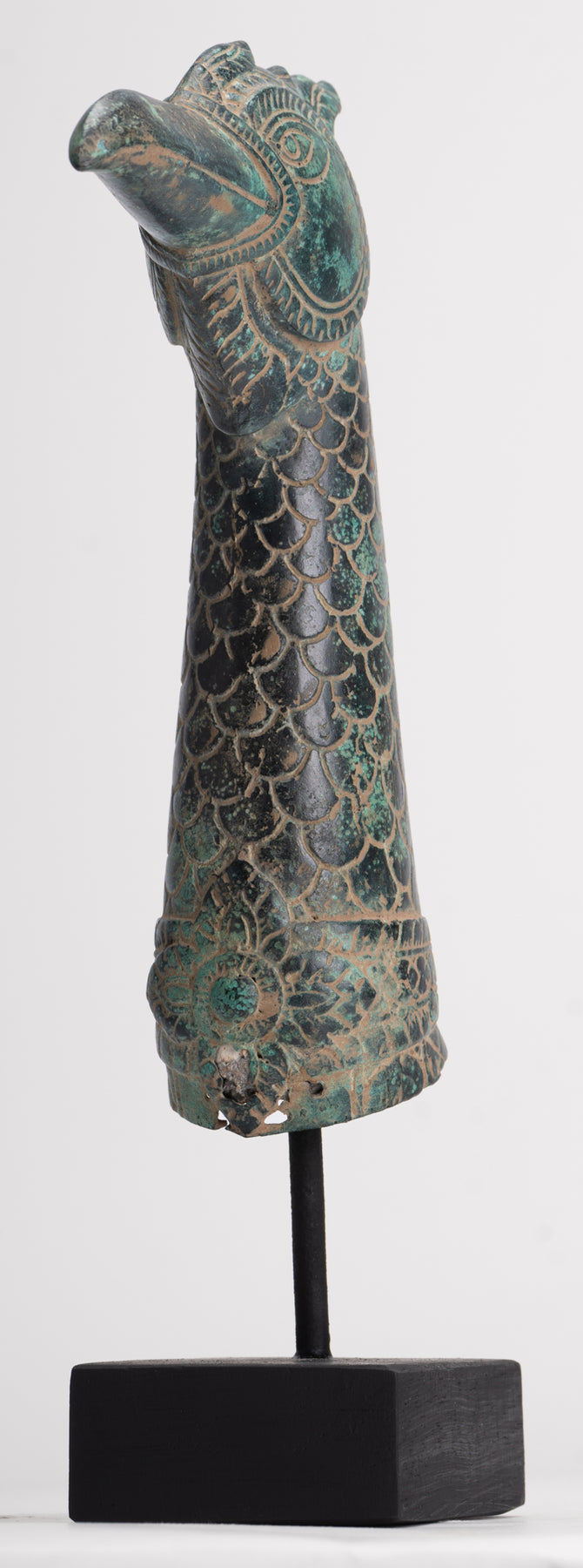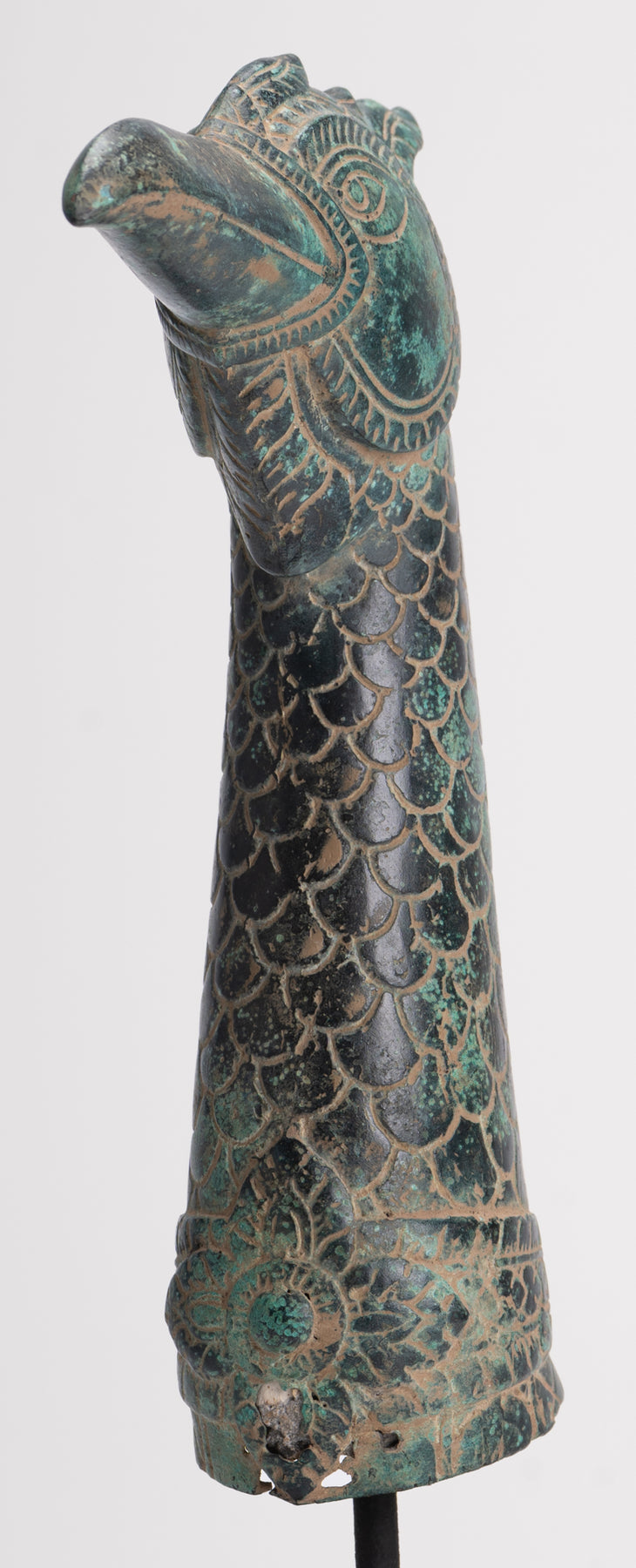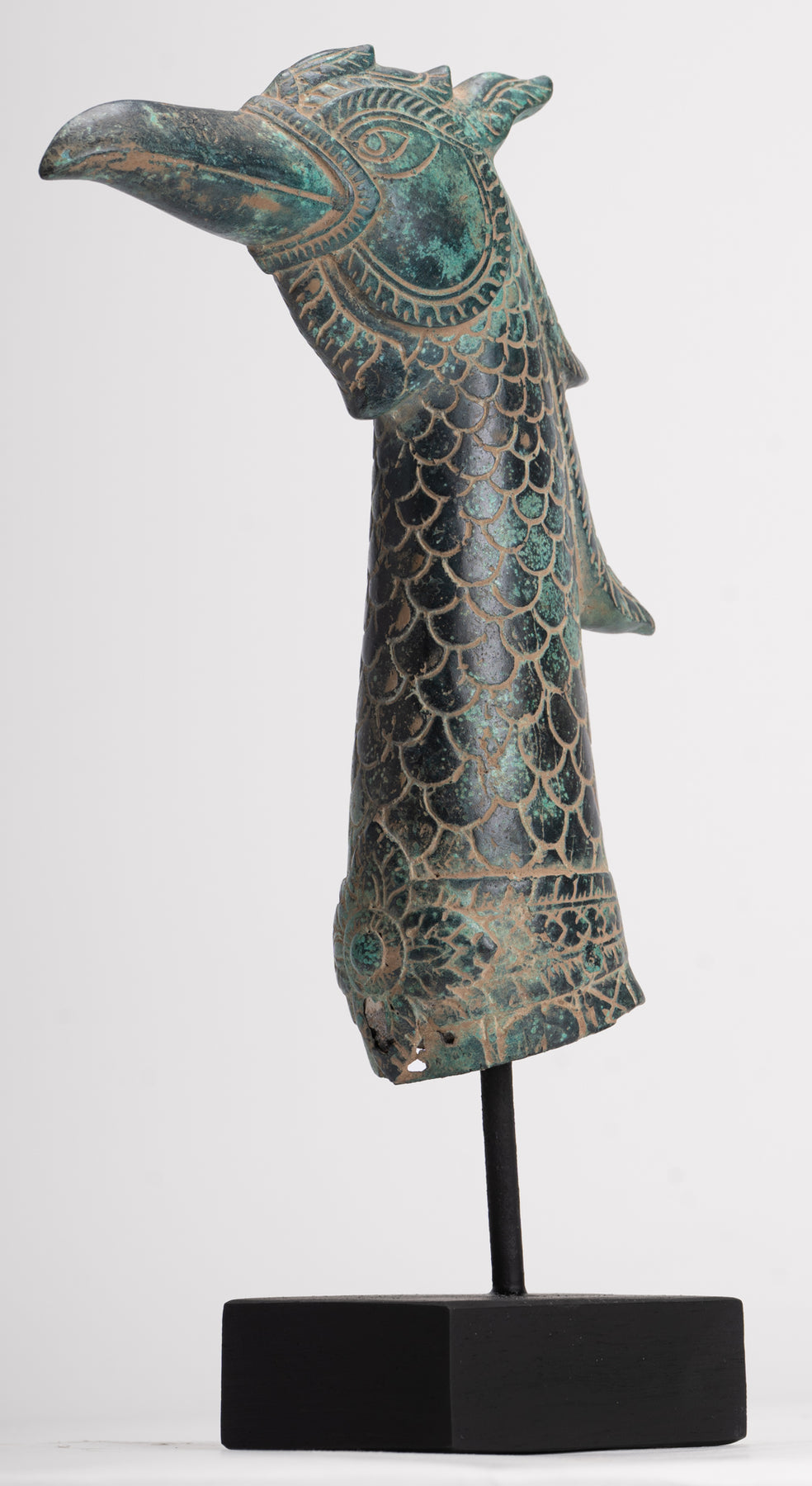 Une sculpture antique de style thaïlandais représentant un oiseau mythique (oie ou paon ?). Dans de nombreux contextes hindous et bouddhistes, l’oiseau sauvage (vu ici sous une forme très stylisée) est associé au vol au-dessus de la terre et donc au détachement et à l’accomplissement spirituel.