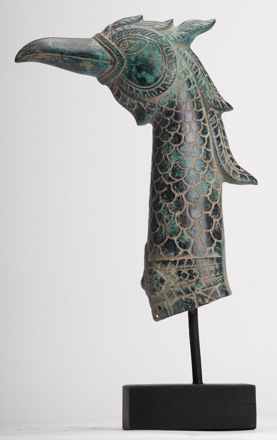• Oiseau/oie/paon mythique en bronze debout de style thaïlandais antique - 24 cm de haut