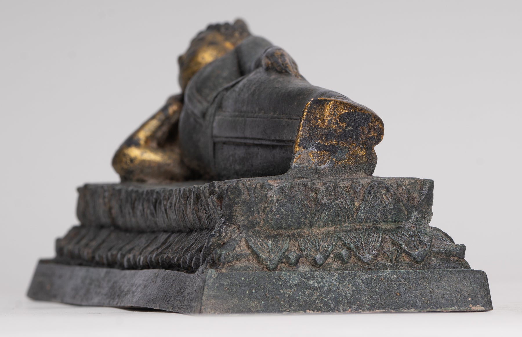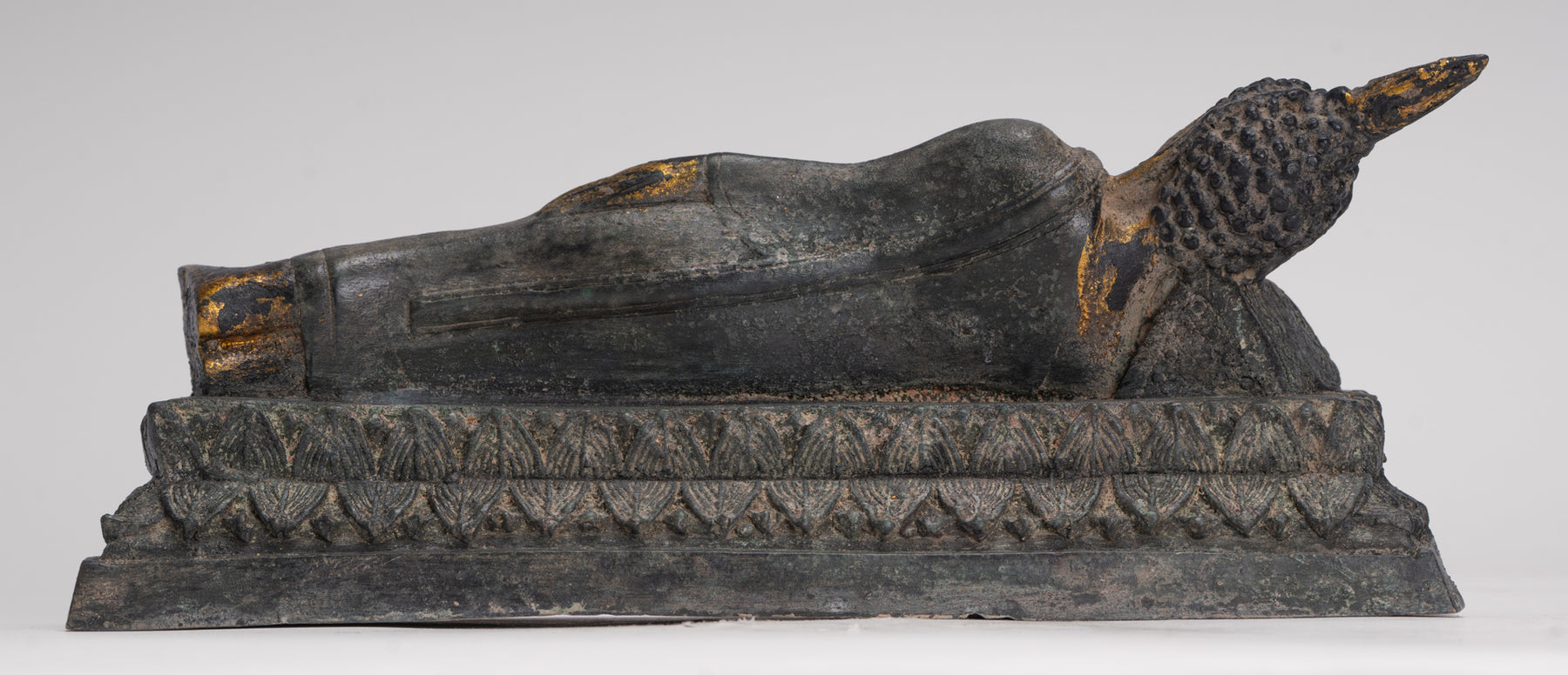 • Statue antique de Bouddha Nirvana inclinable en bronze de style thaïlandais Sukhothai - 28 cm/11"